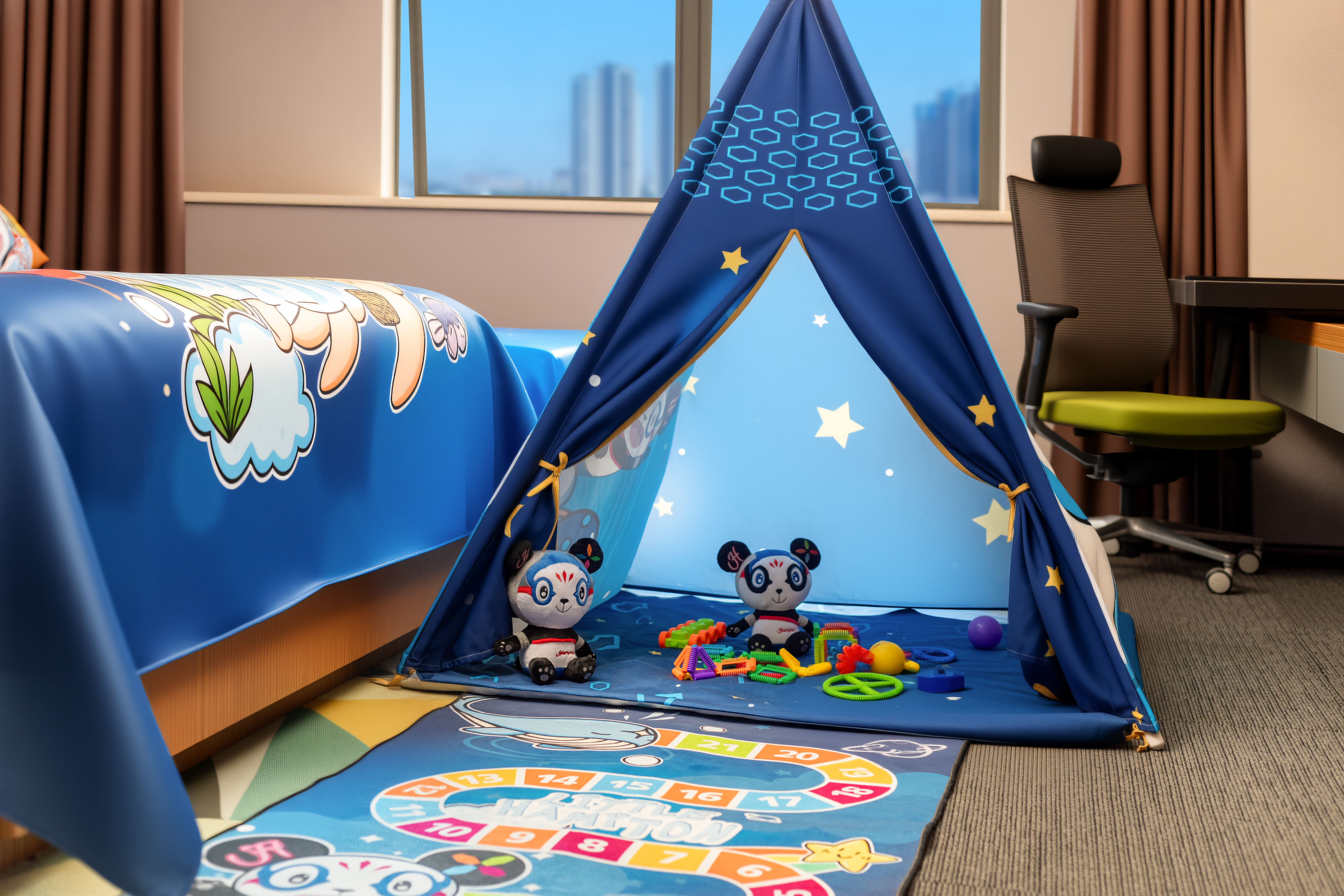 家庭亲子主题房(热门卡通IP主题+帐篷营地+梳化床)