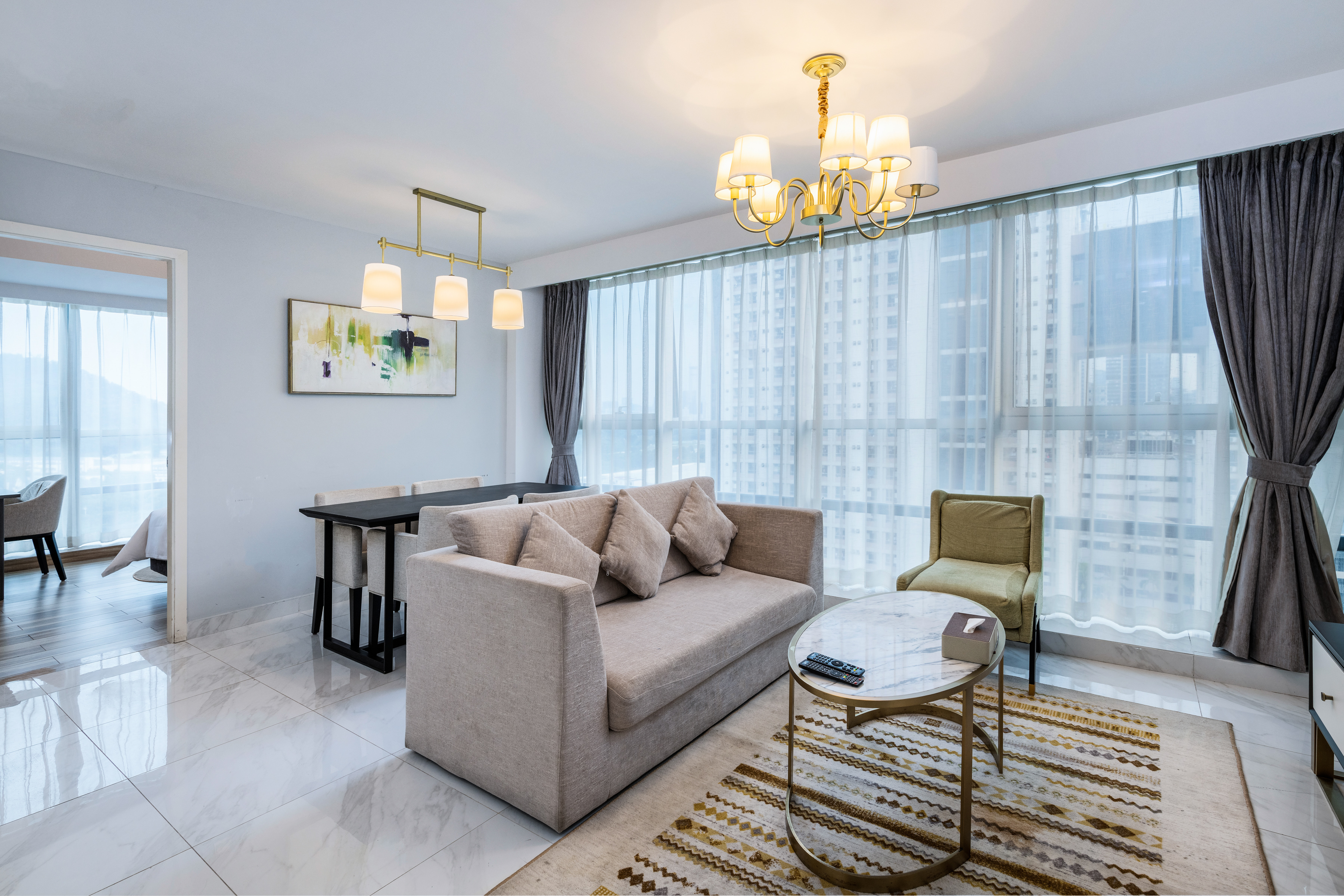 两房行政家庭套房·冰箱+开放式厨房+飘窗城景+洗衣机