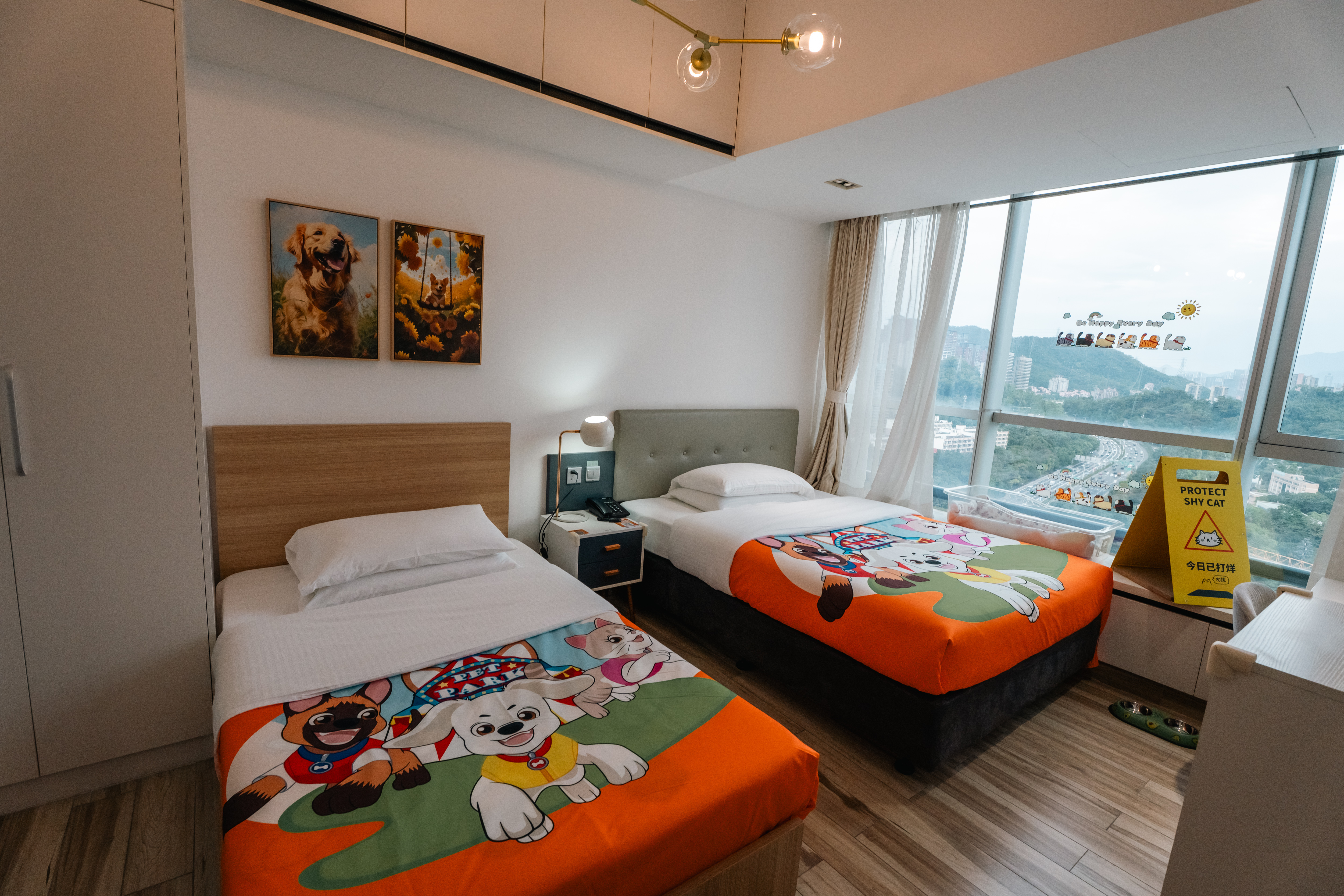 宠物房双床·冰箱+开放式厨房+飘窗城景