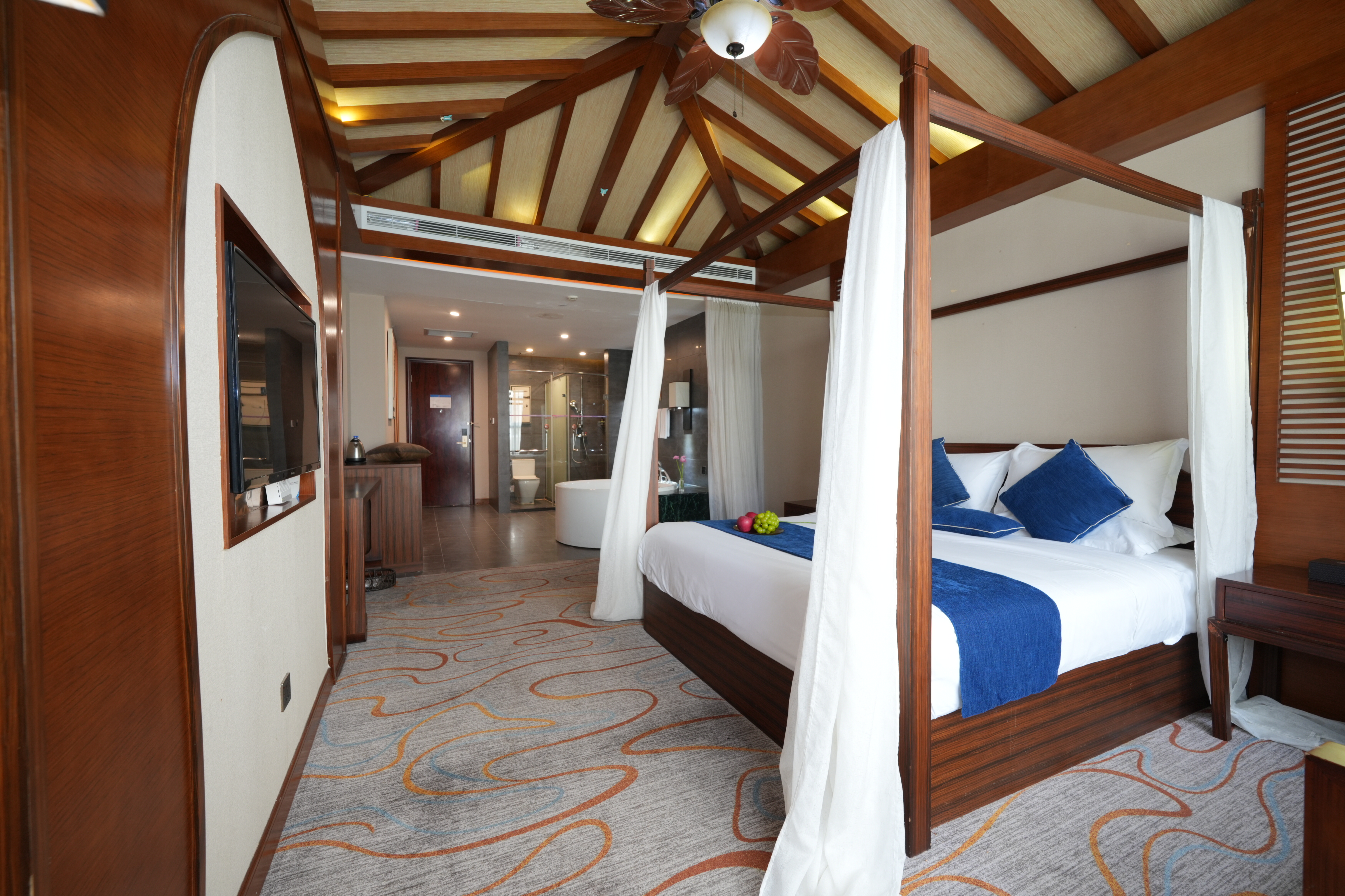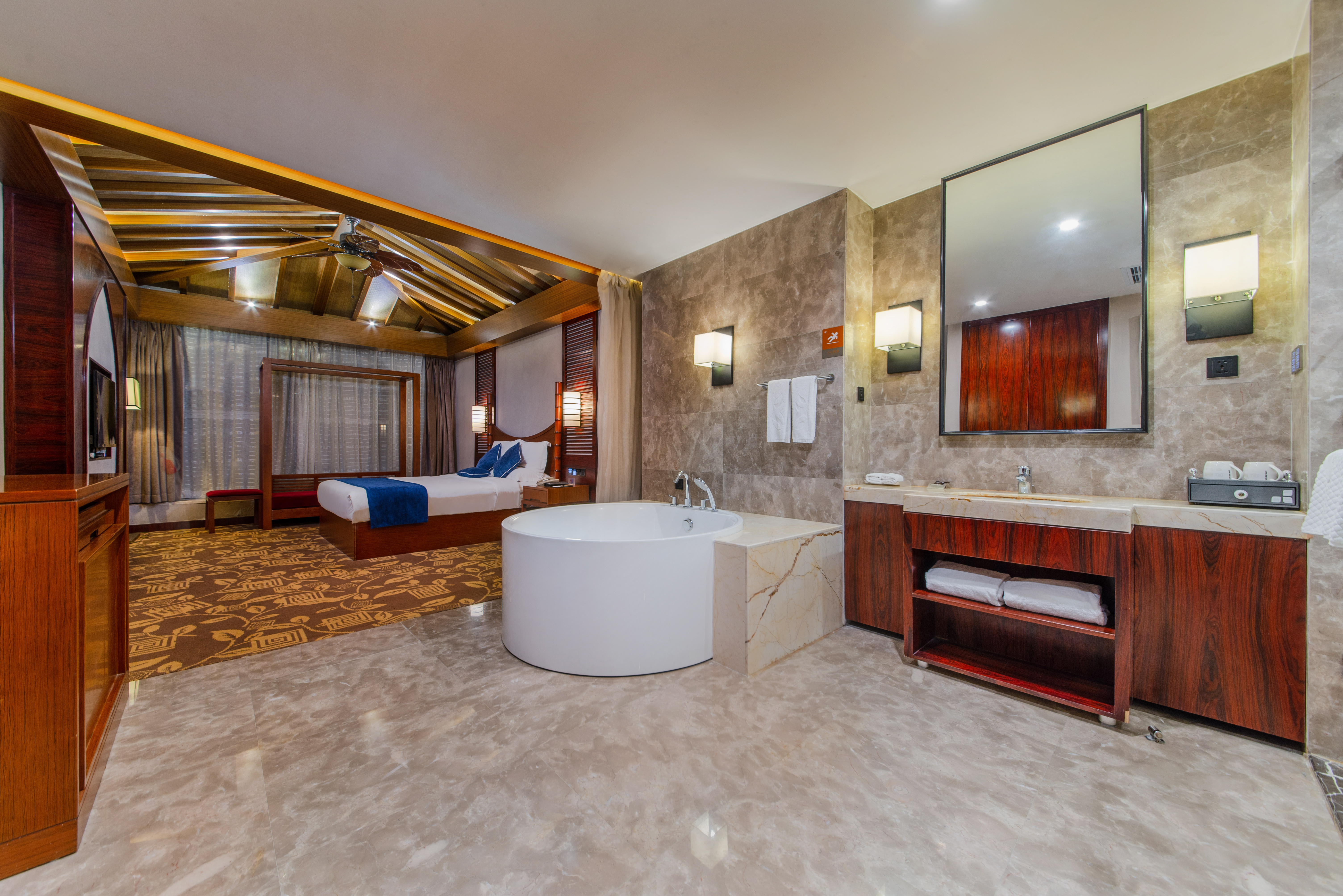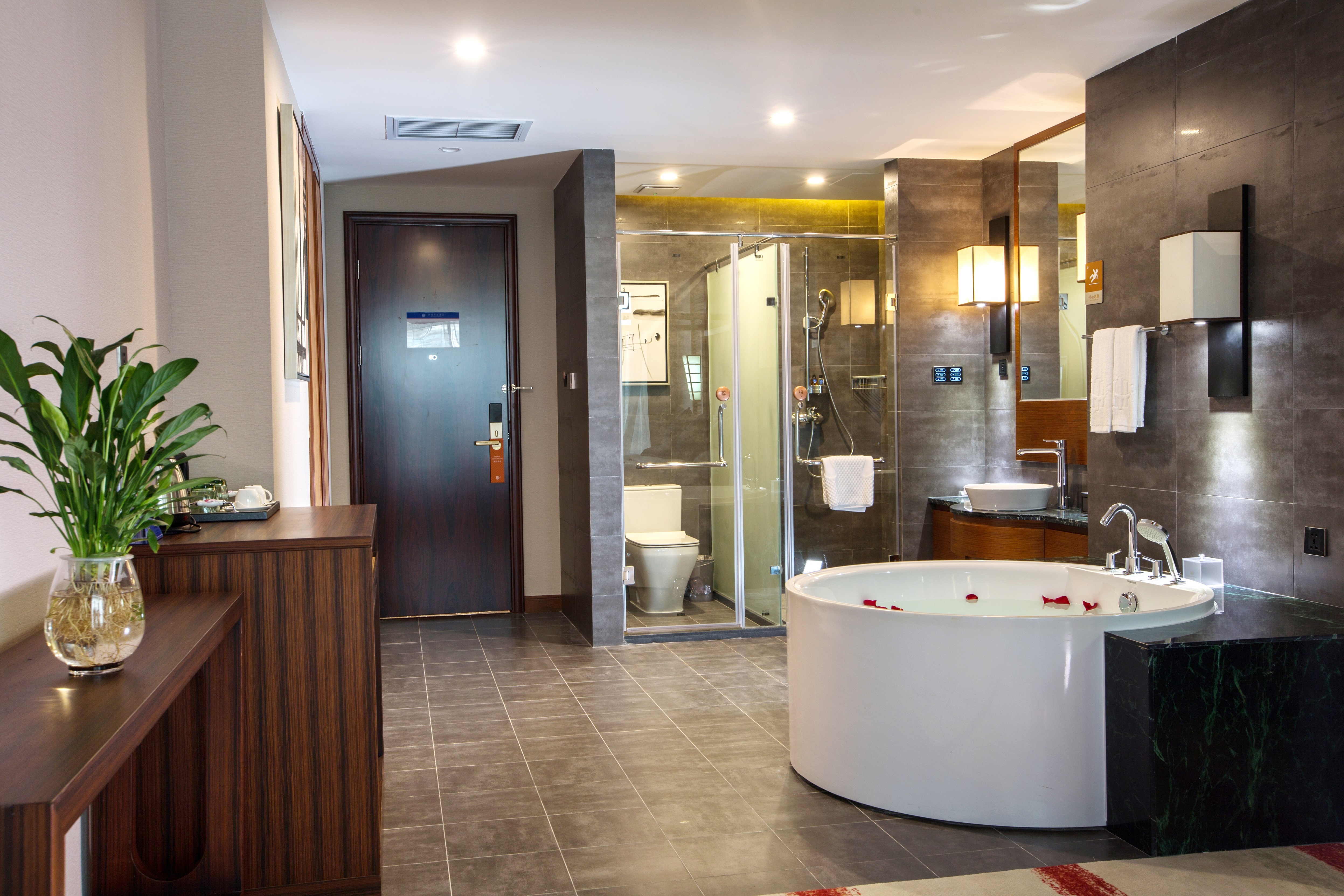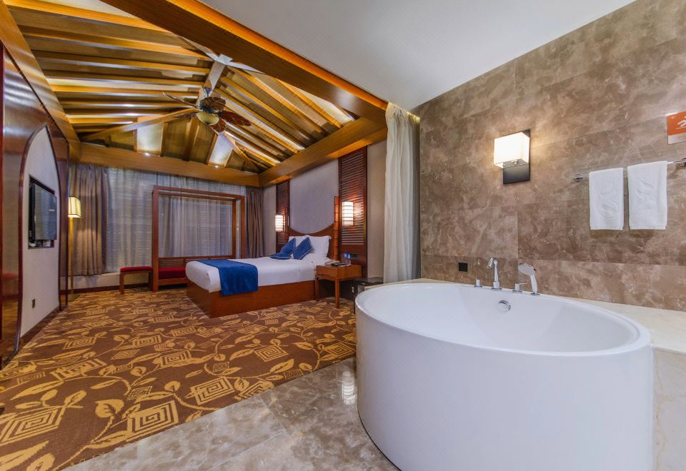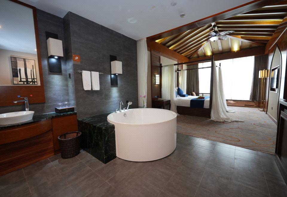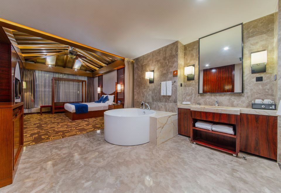 东南亚风情房-浪漫圆形浴缸玫瑰泡浴