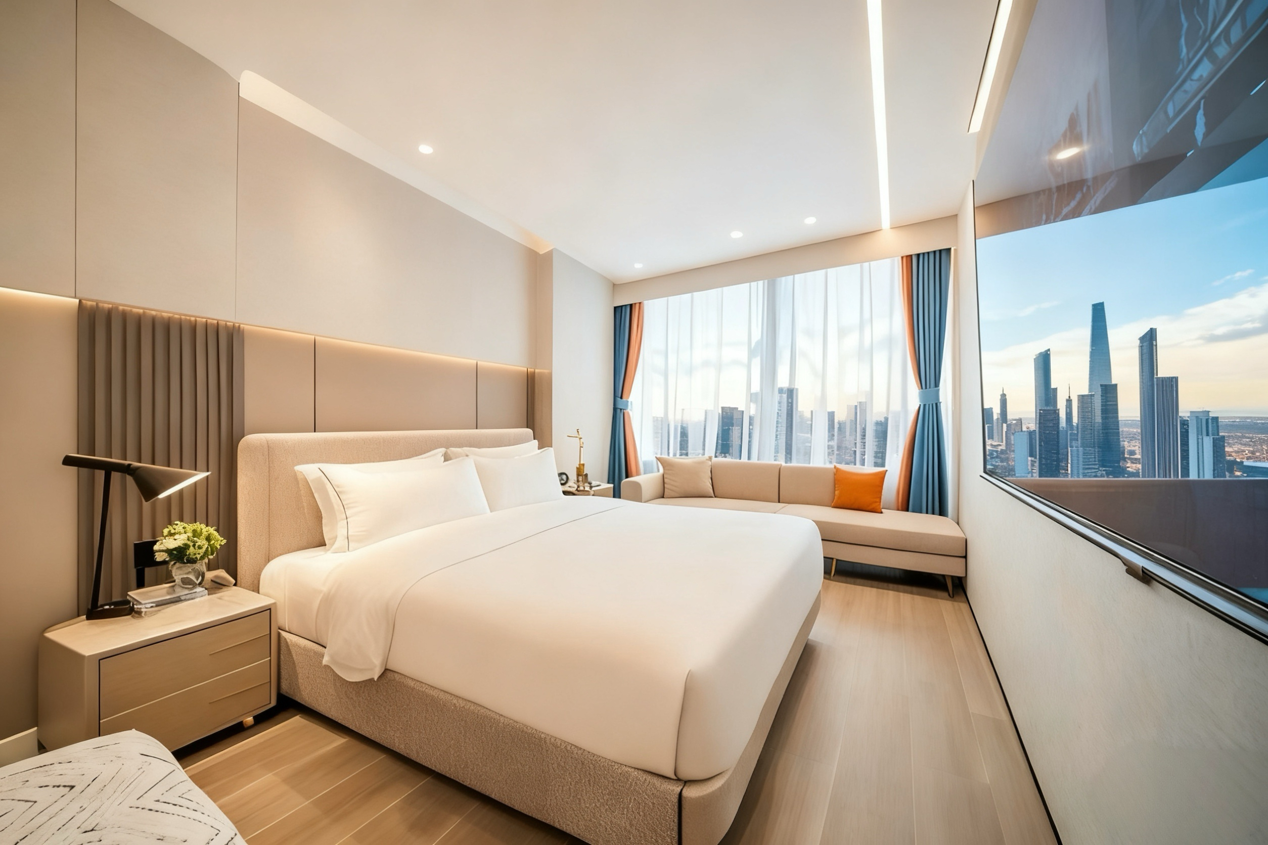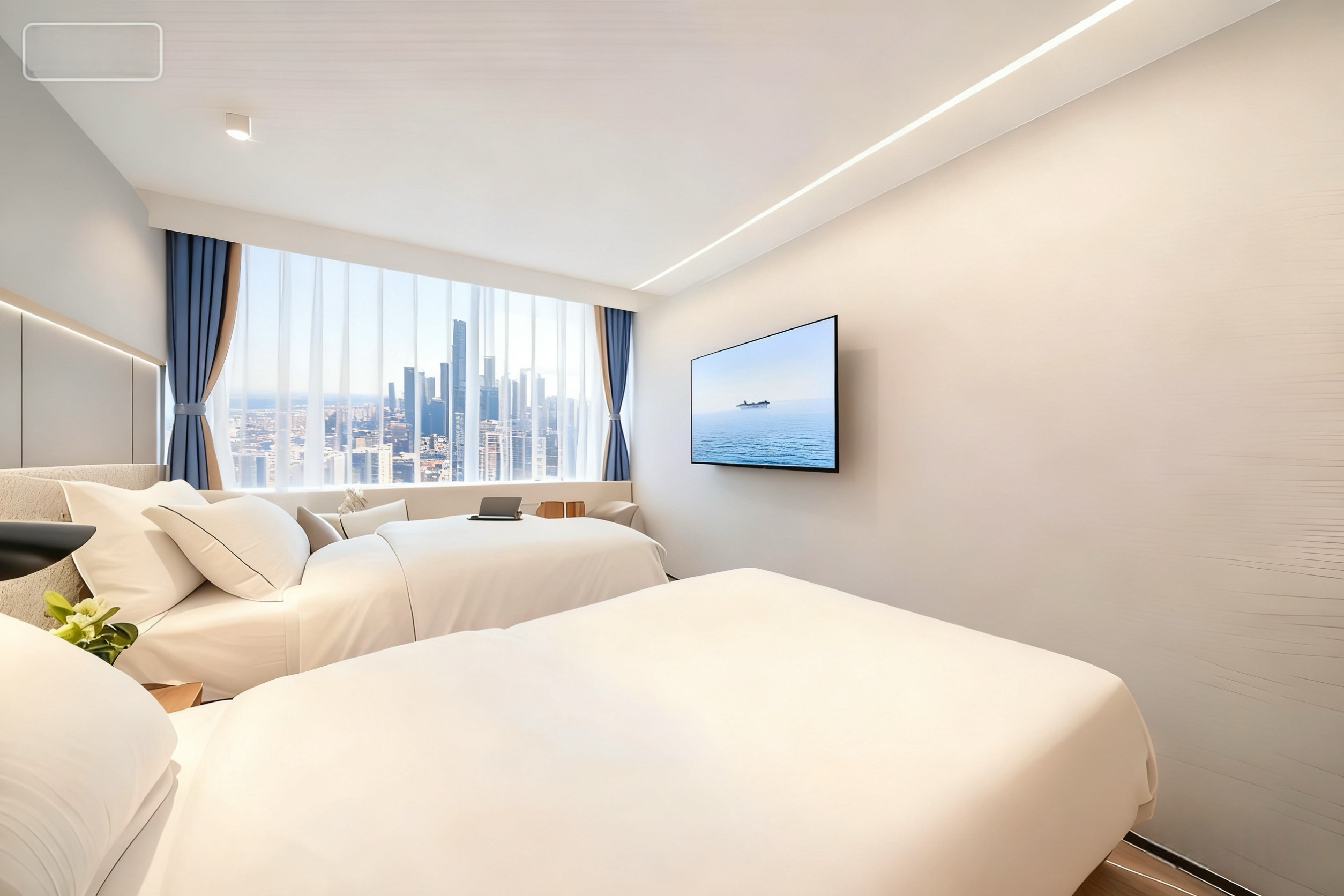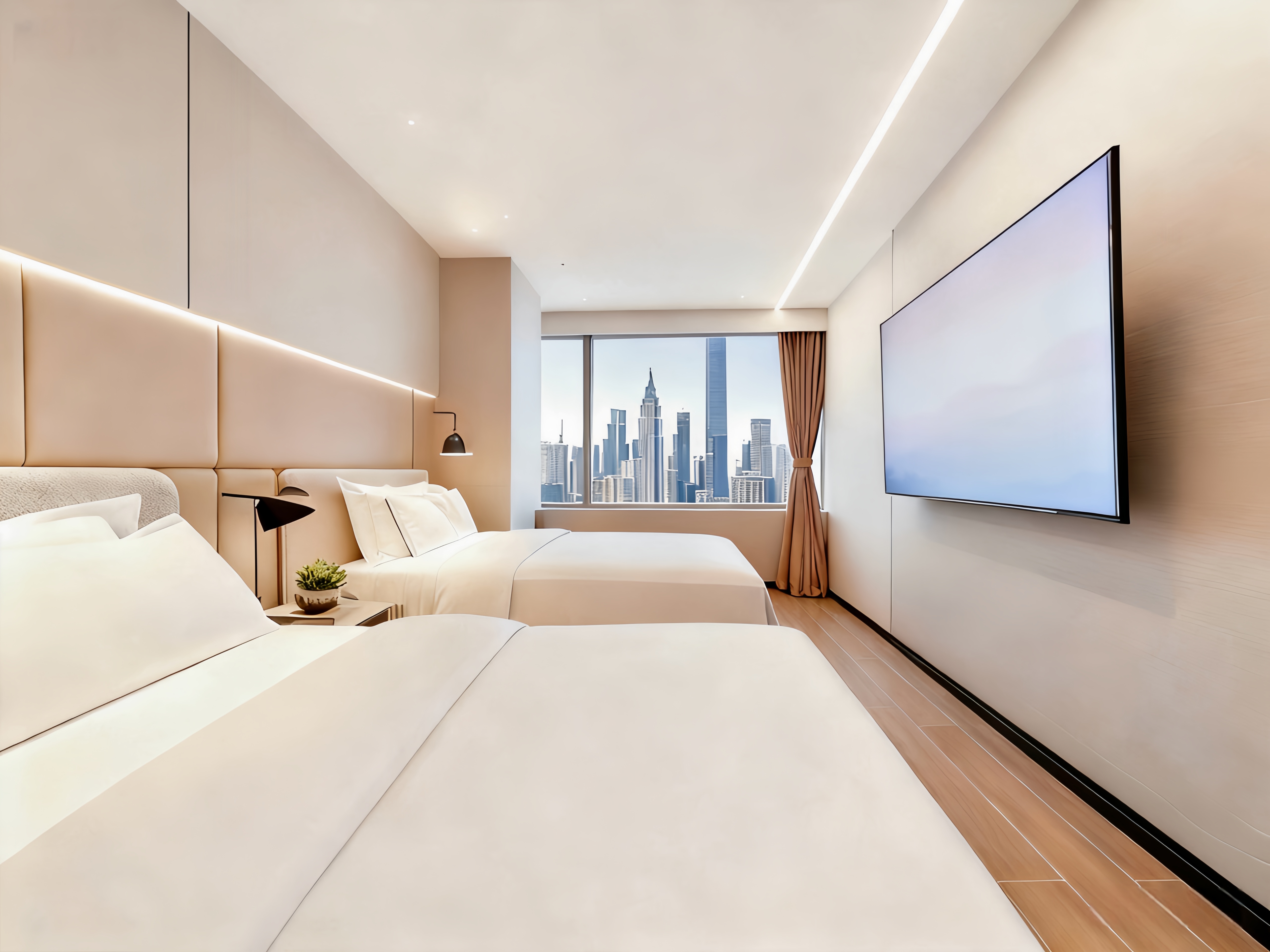 Deep Sleep | 城景双床房(洗衣机+冰箱+180°天际城景)
