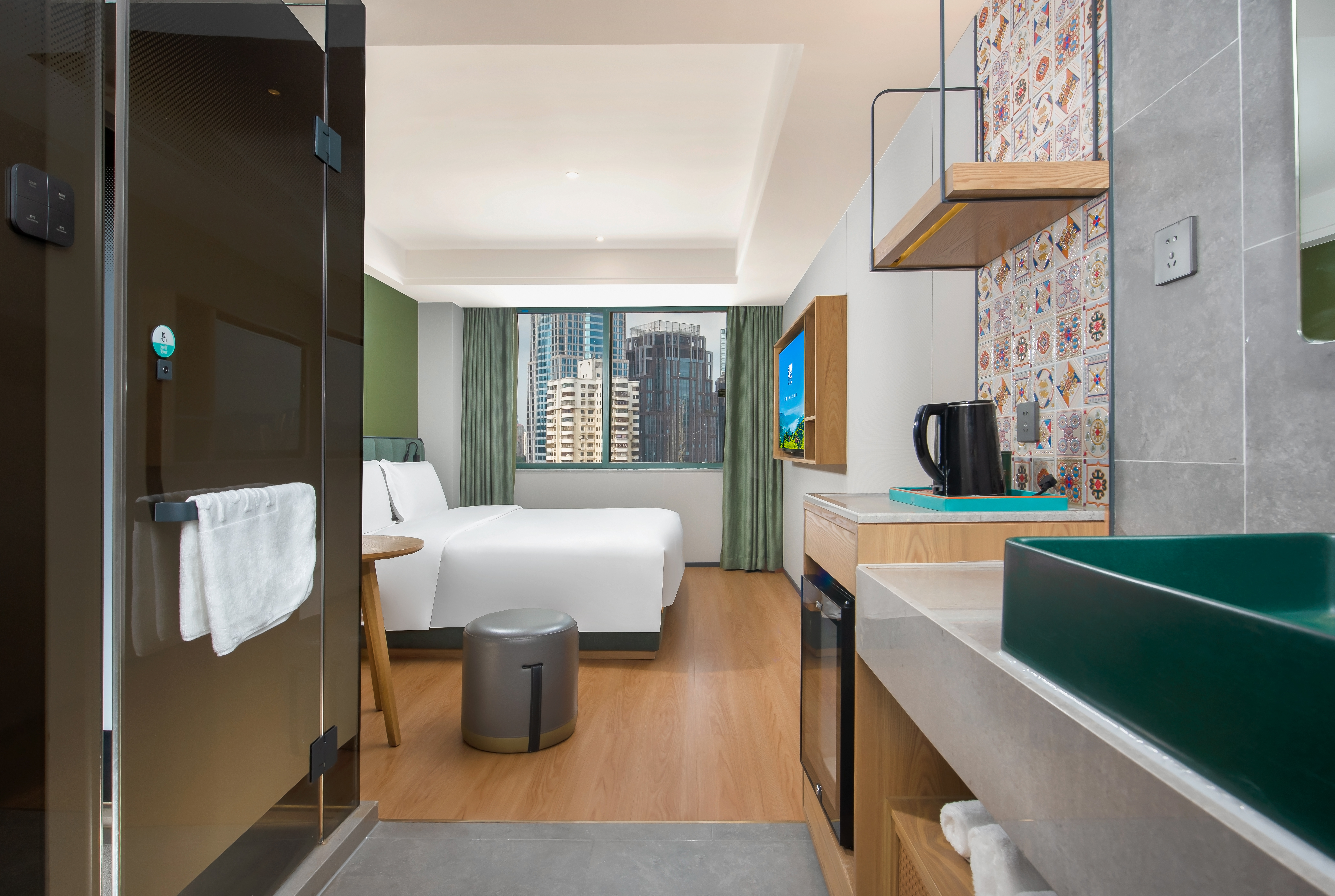 商务大床房(手机投屏+乾湿分离·办公区·落地窗)