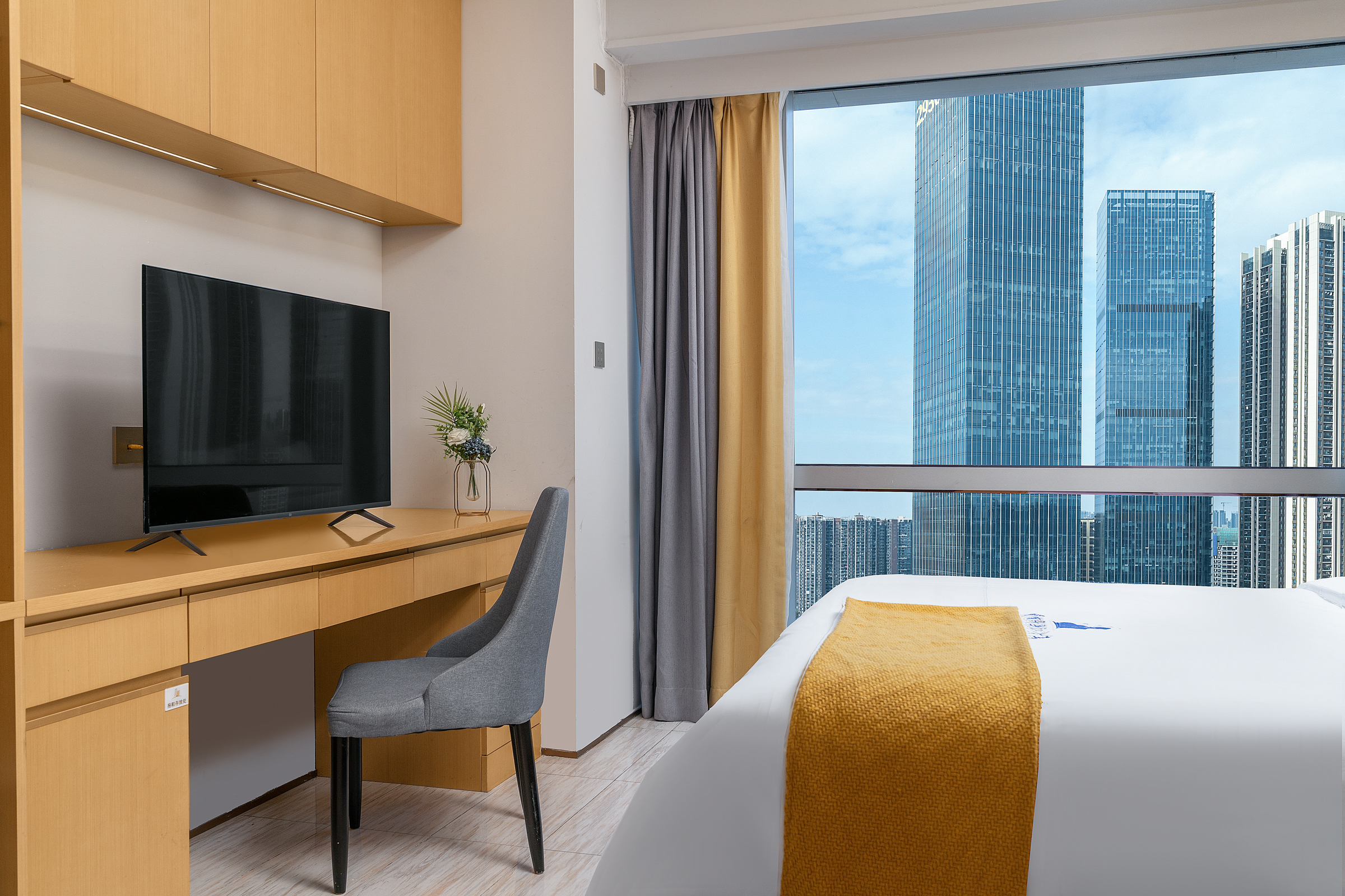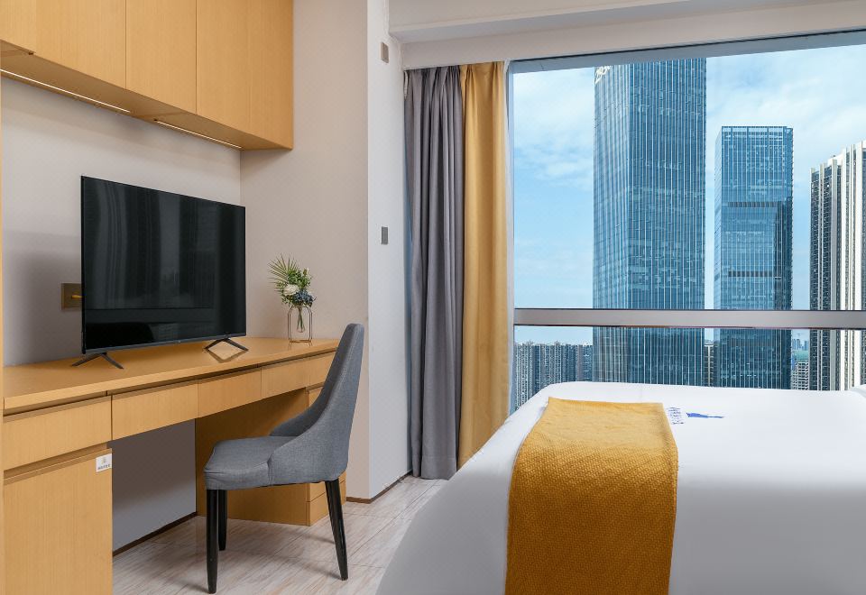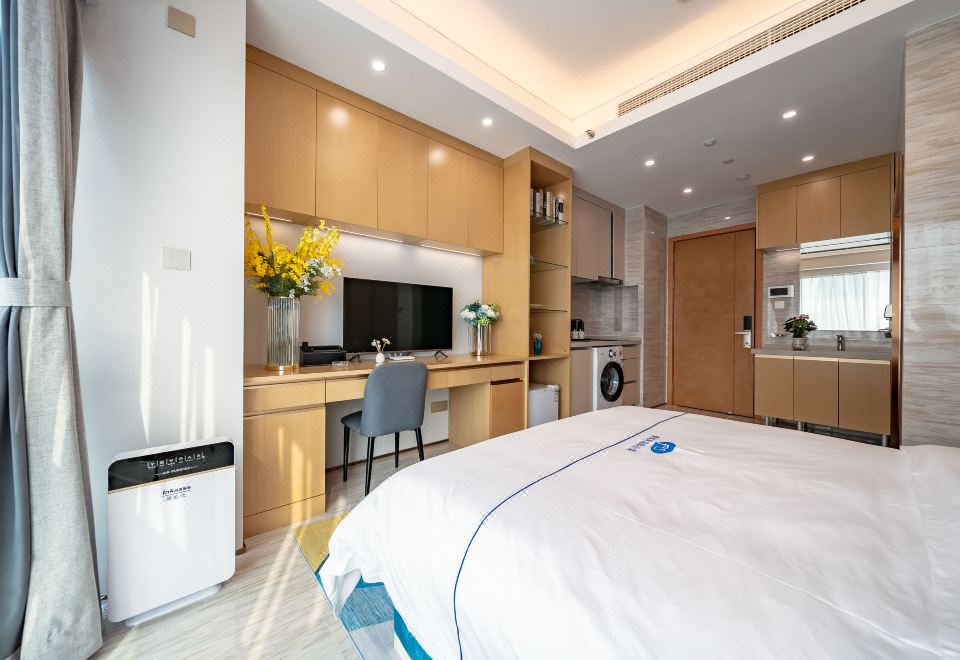 雅致豪华大床房(洗衣机+冰箱+落地窗)