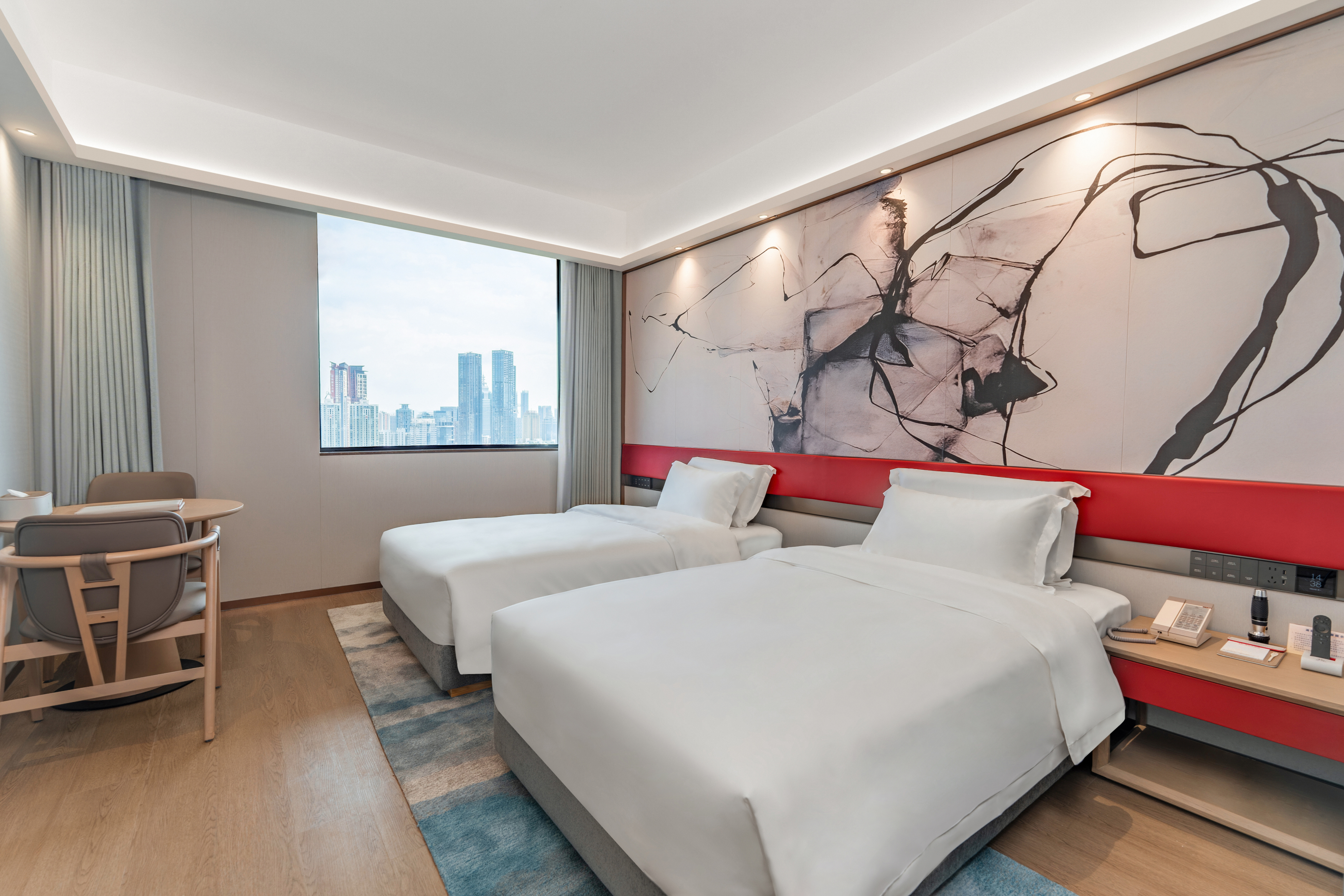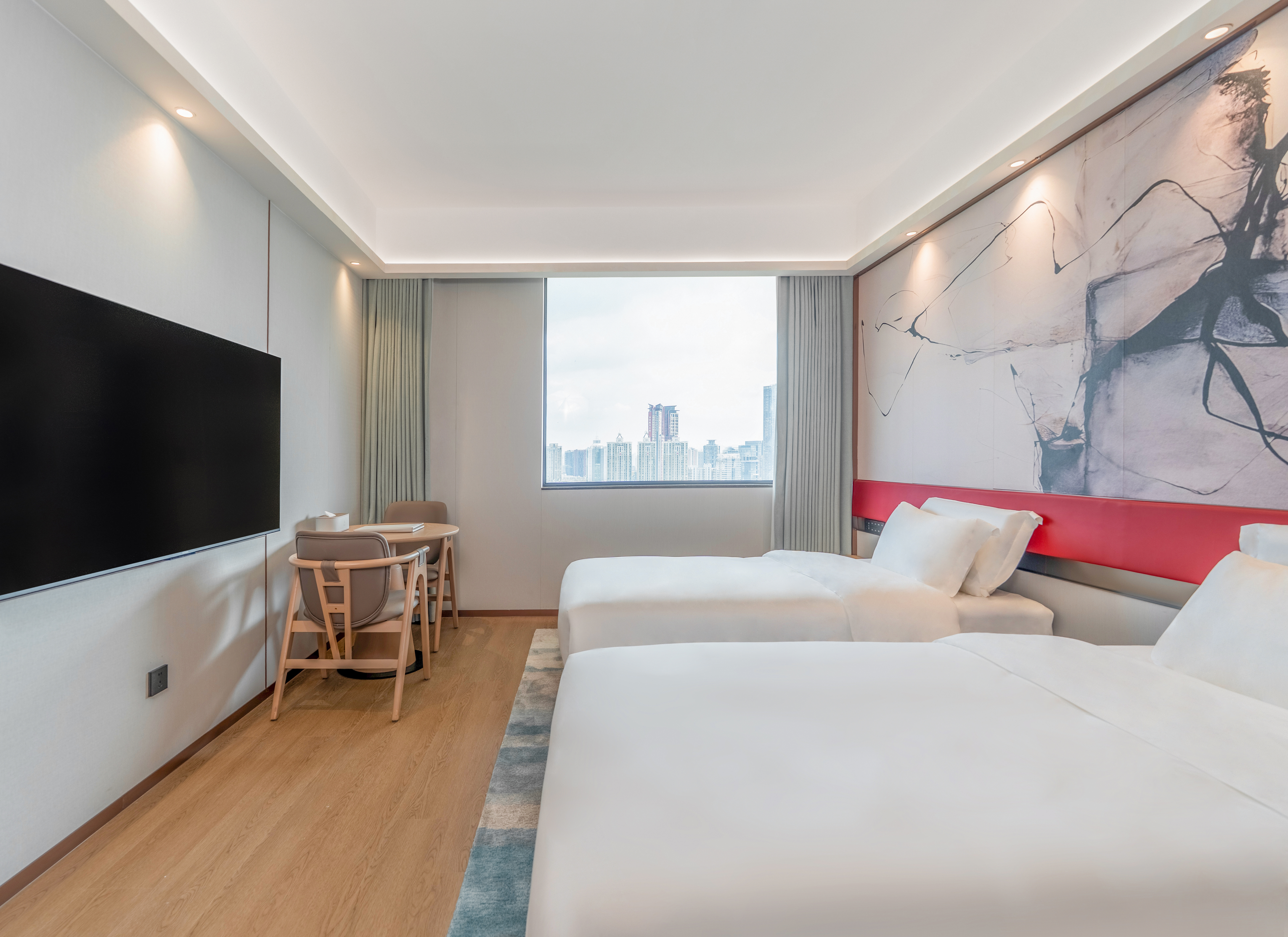 城景双床房(远眺平安中心&高尔夫景,坐看繁华夜景)