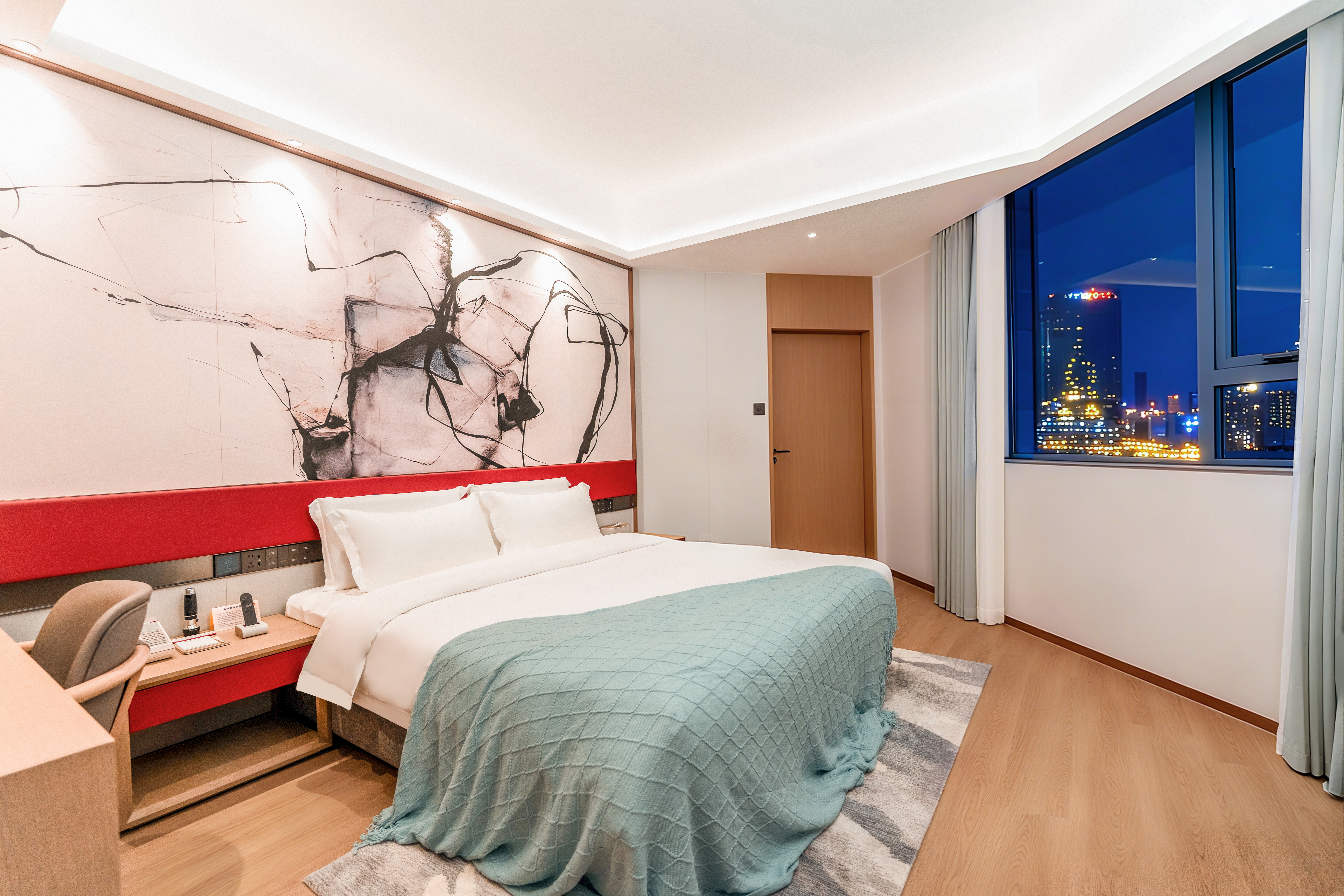 城景大床房(远眺平安中心&高尔夫景,坐看繁华夜景)