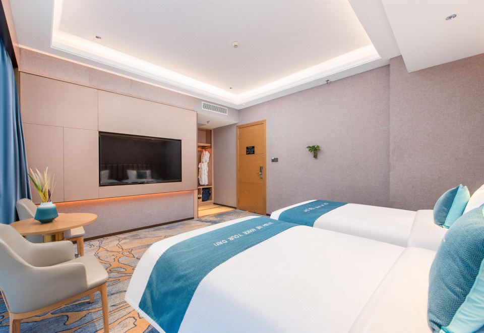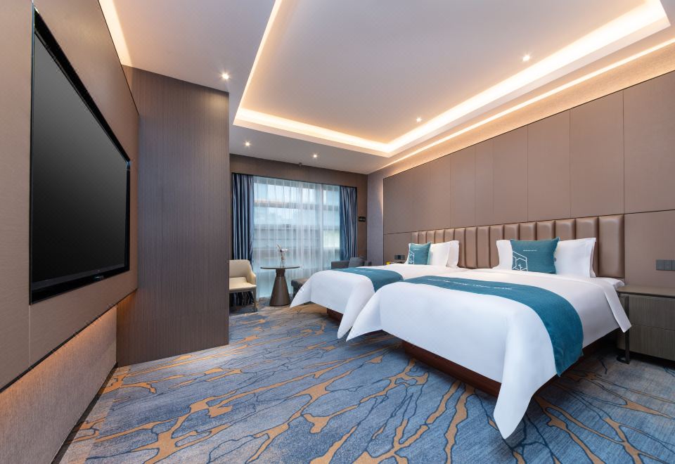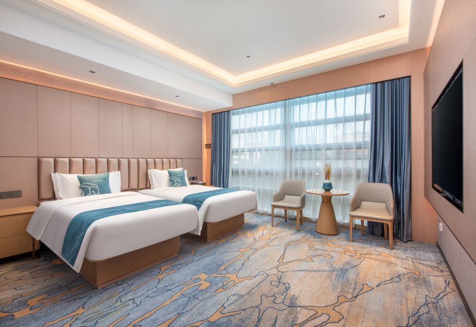 豪华舒适双床房(全景落地窗+零压床垫+小冰箱)