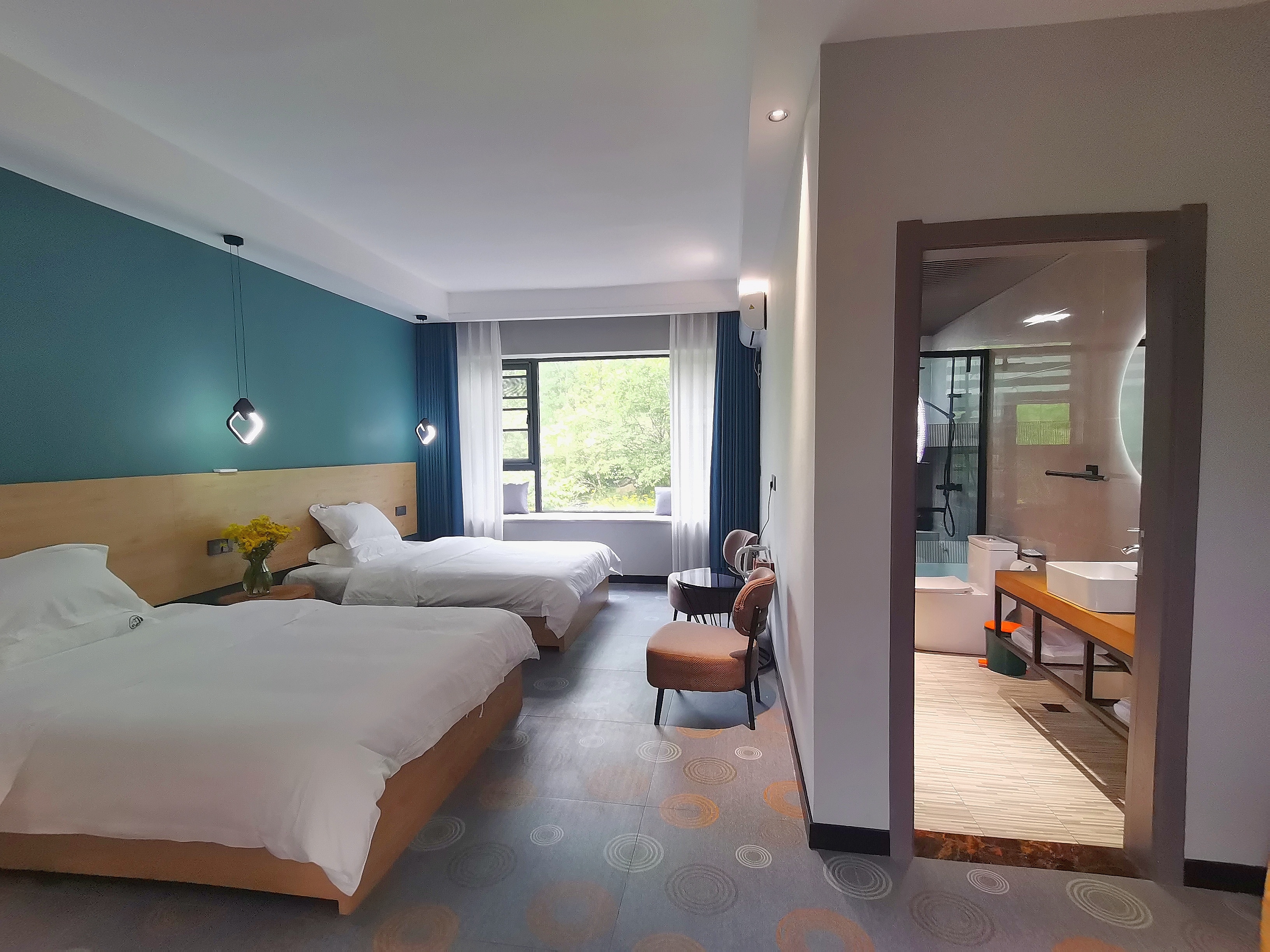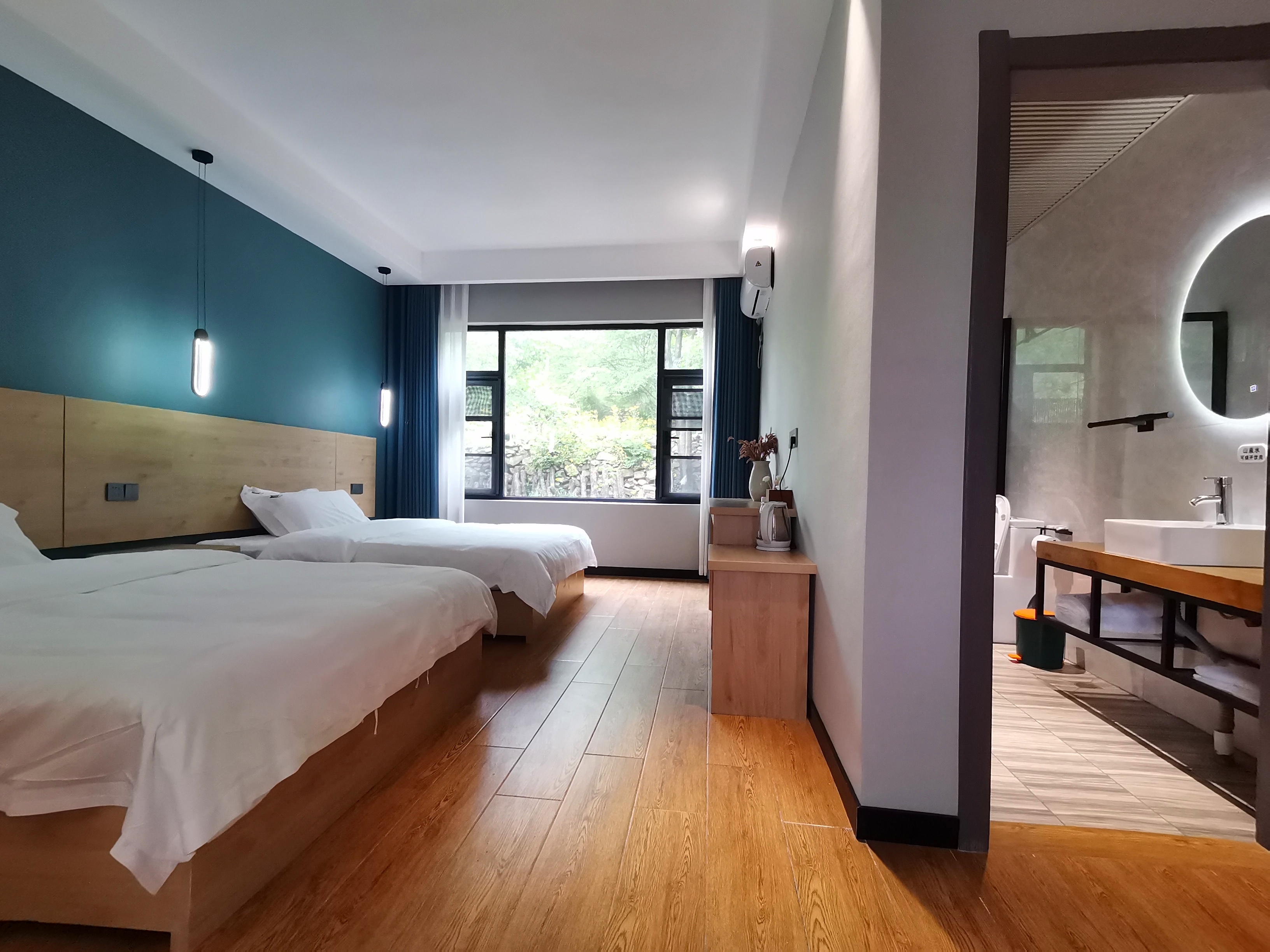 简约双床房+梦百合0压床垫记忆枕+潘婷洗护+山景