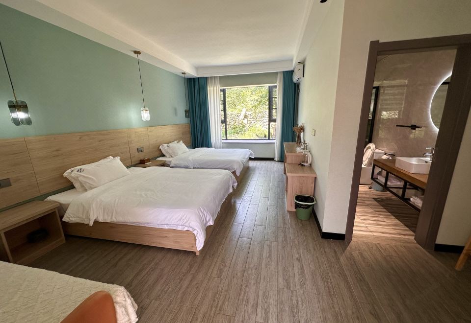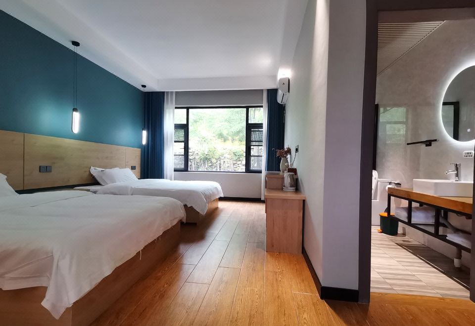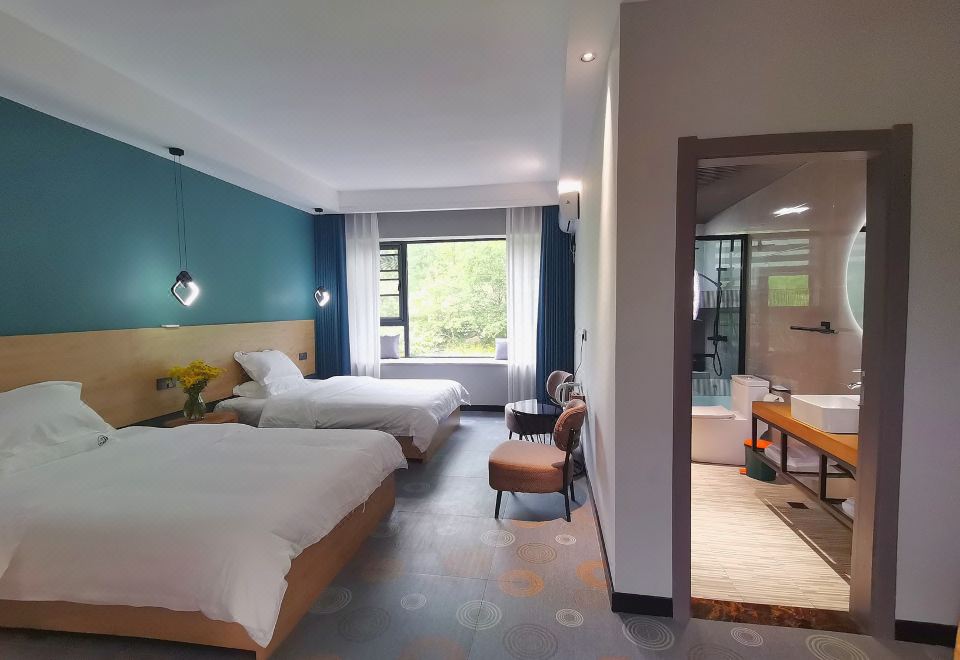 简约双床房+梦百合0压床垫记忆枕+潘婷洗护+山景
