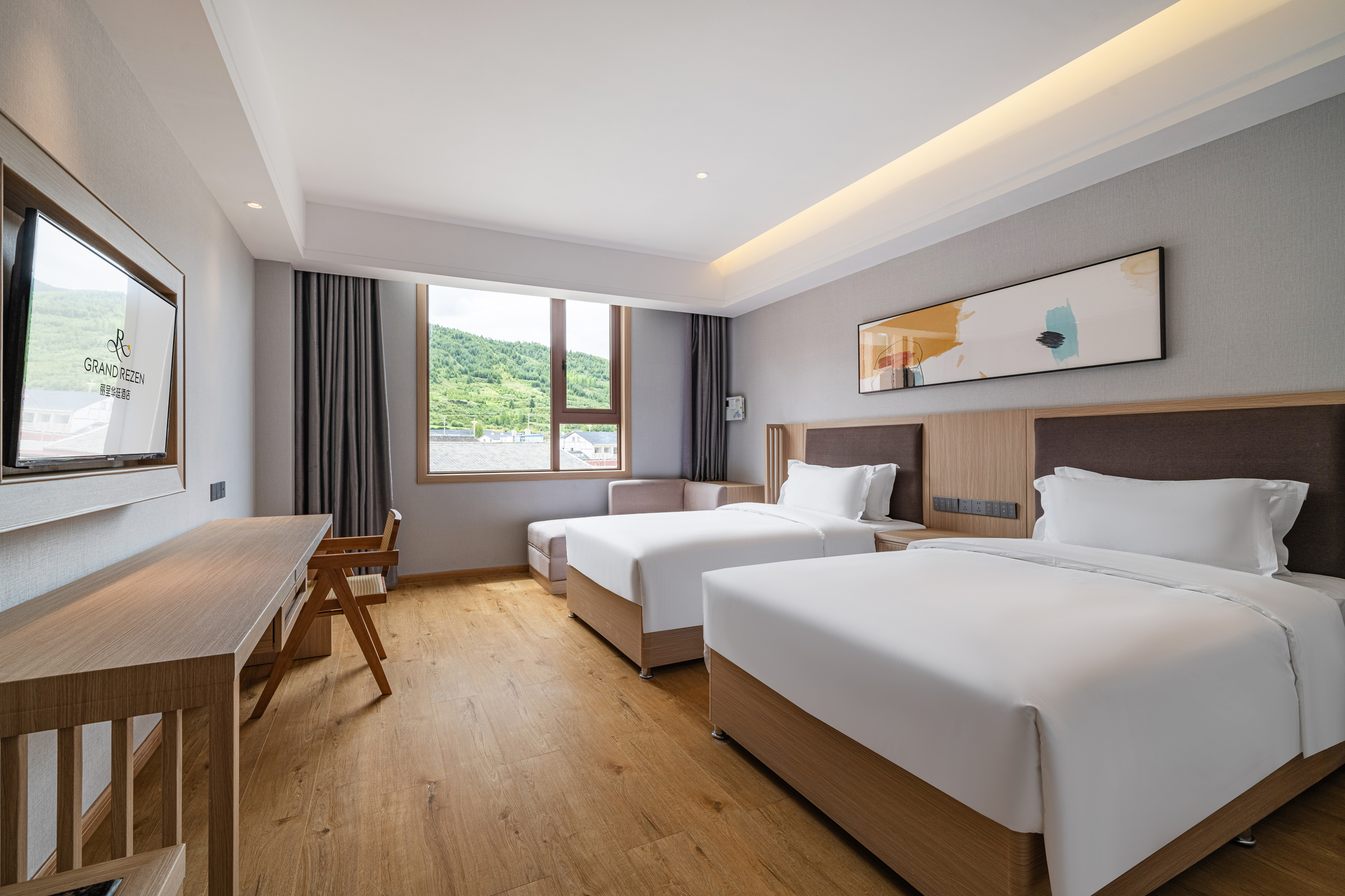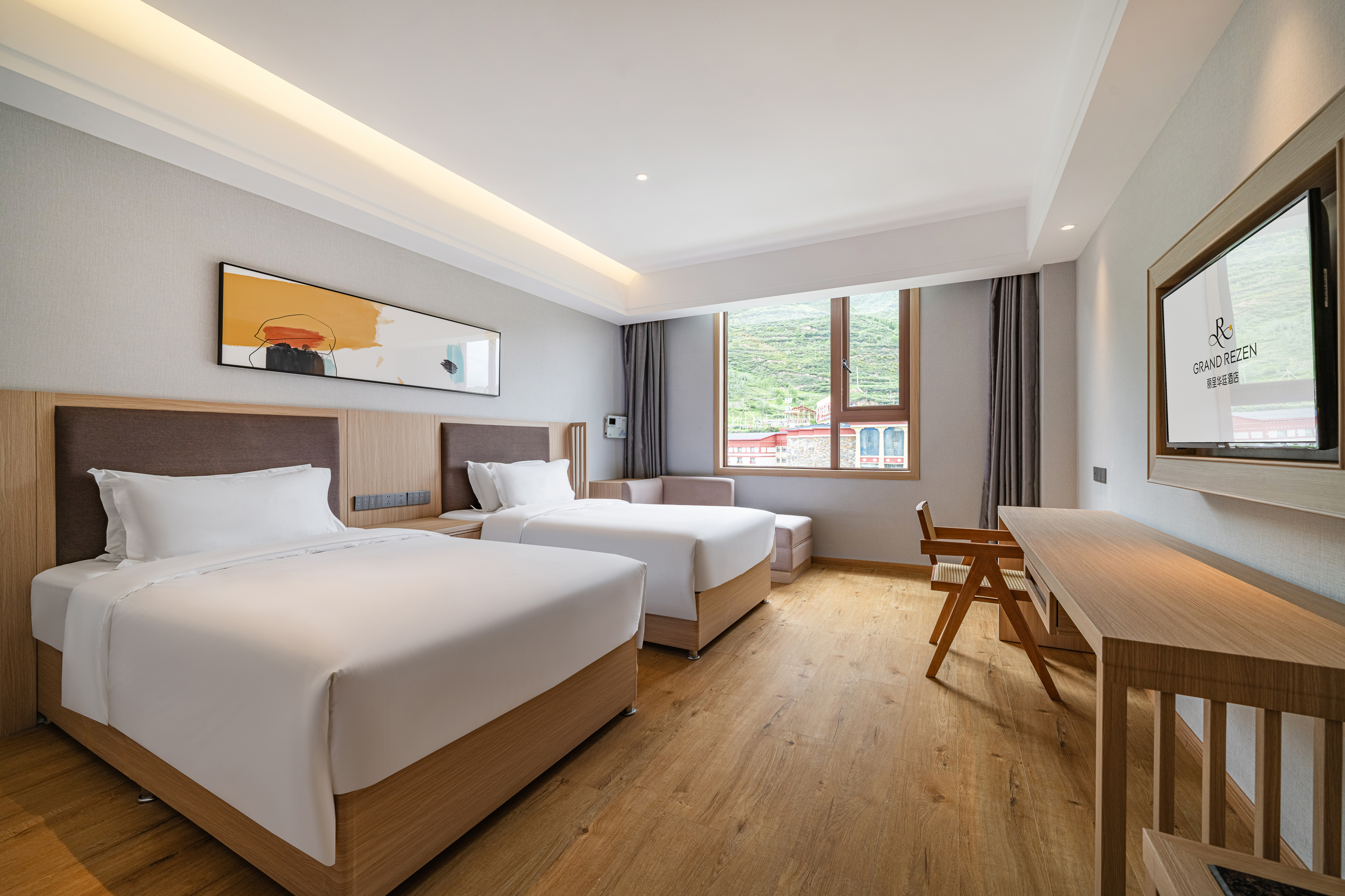 Fresh Simple Style 180 ° Mountain-View Twin Room (Underfloor Heating + Central Oxygen + Natural Mist View + Smart Toilet)