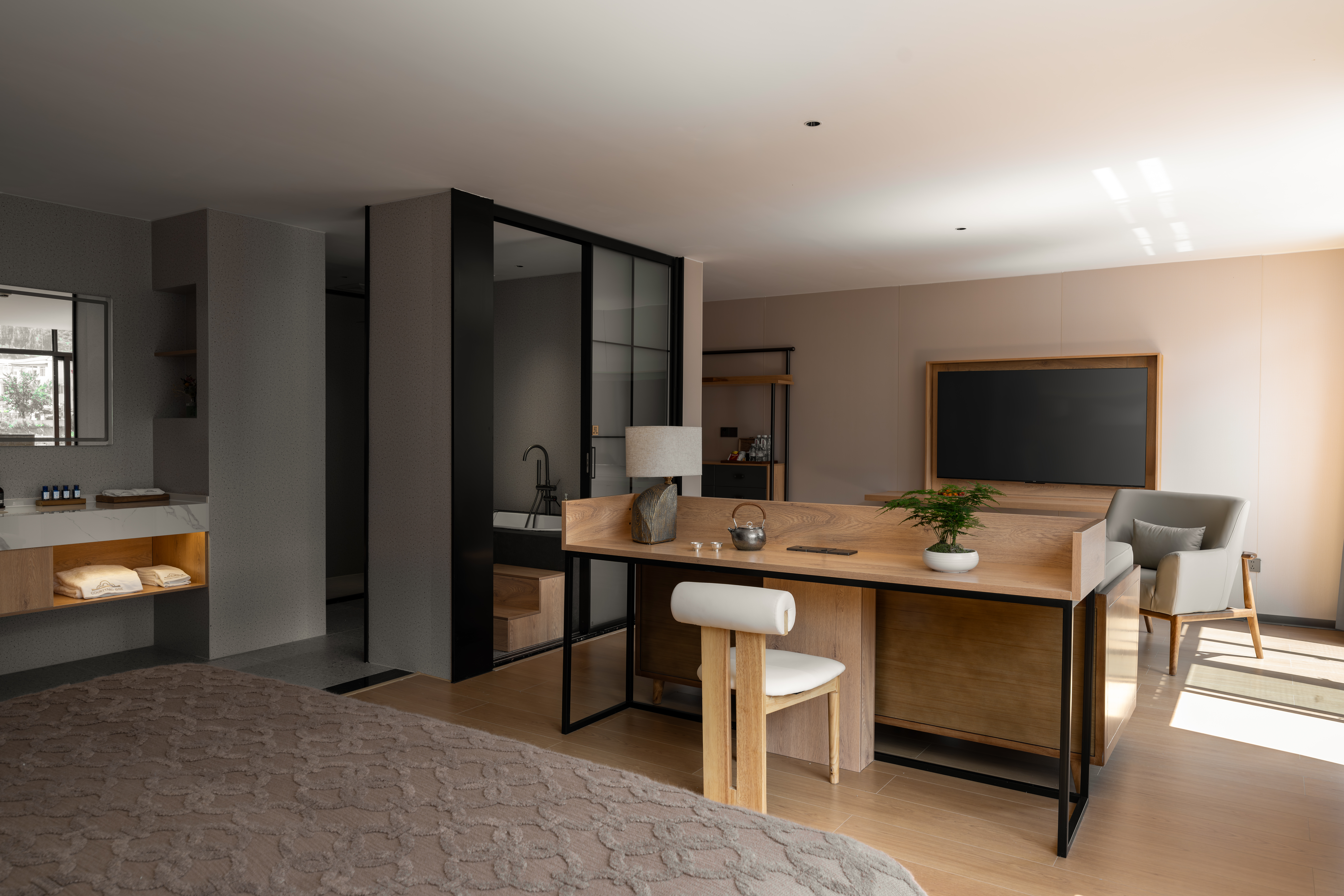 锦裘|山景?浴缸?木风大床套房(全屋地暖+智能客控+智能马桶)