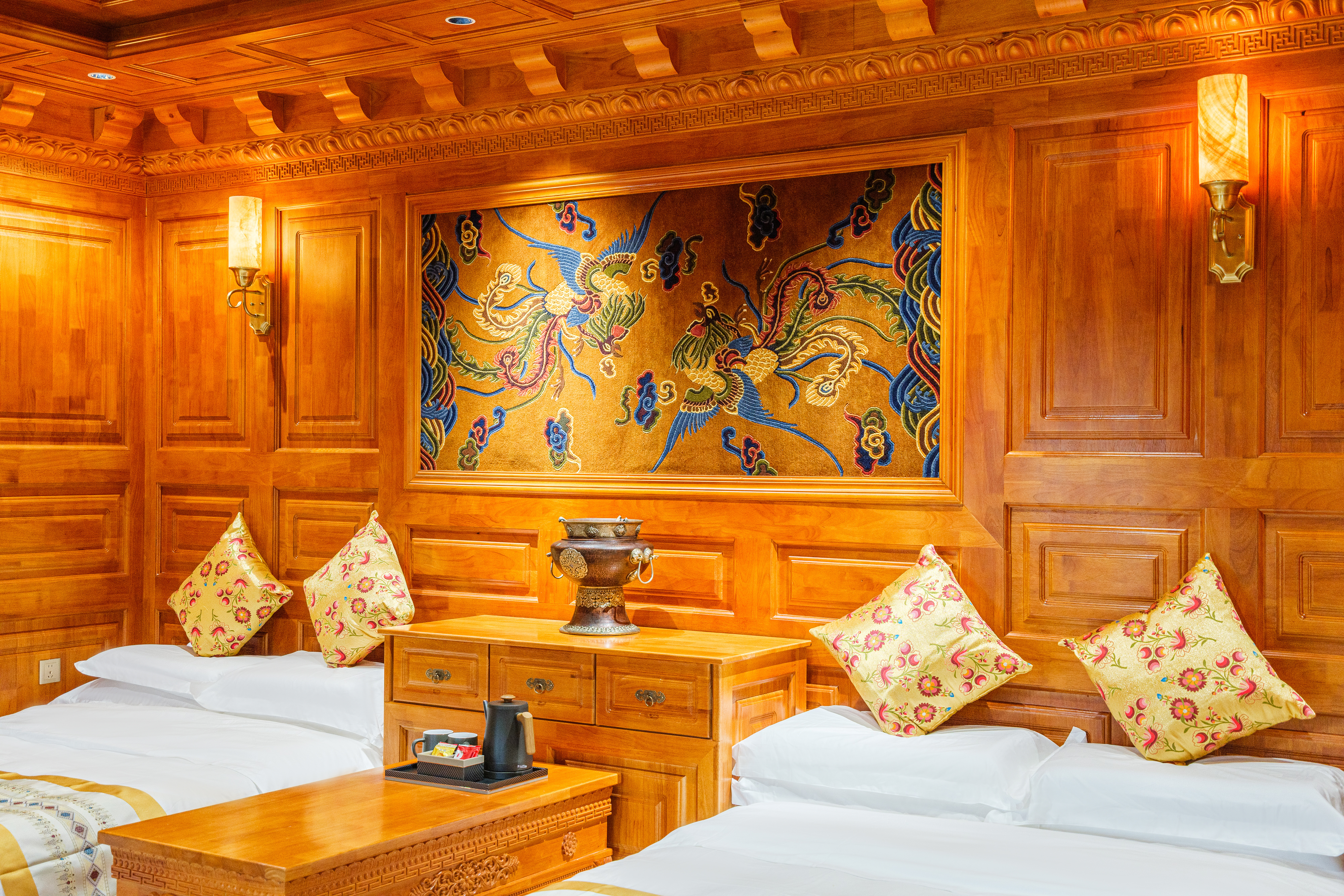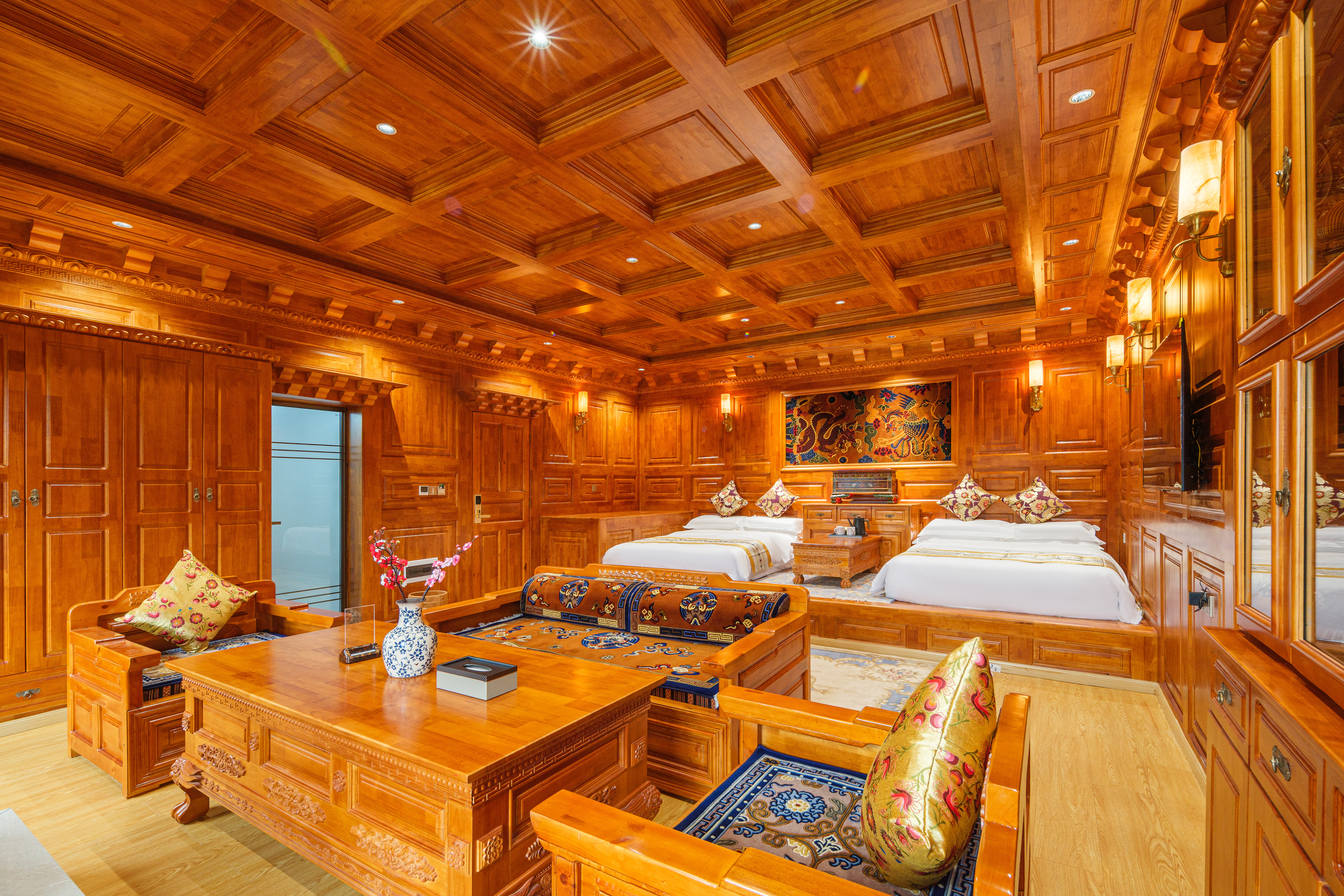 羊卓雍措·藏式豪華山景雙床房(地暖+壁爐+浴缸)