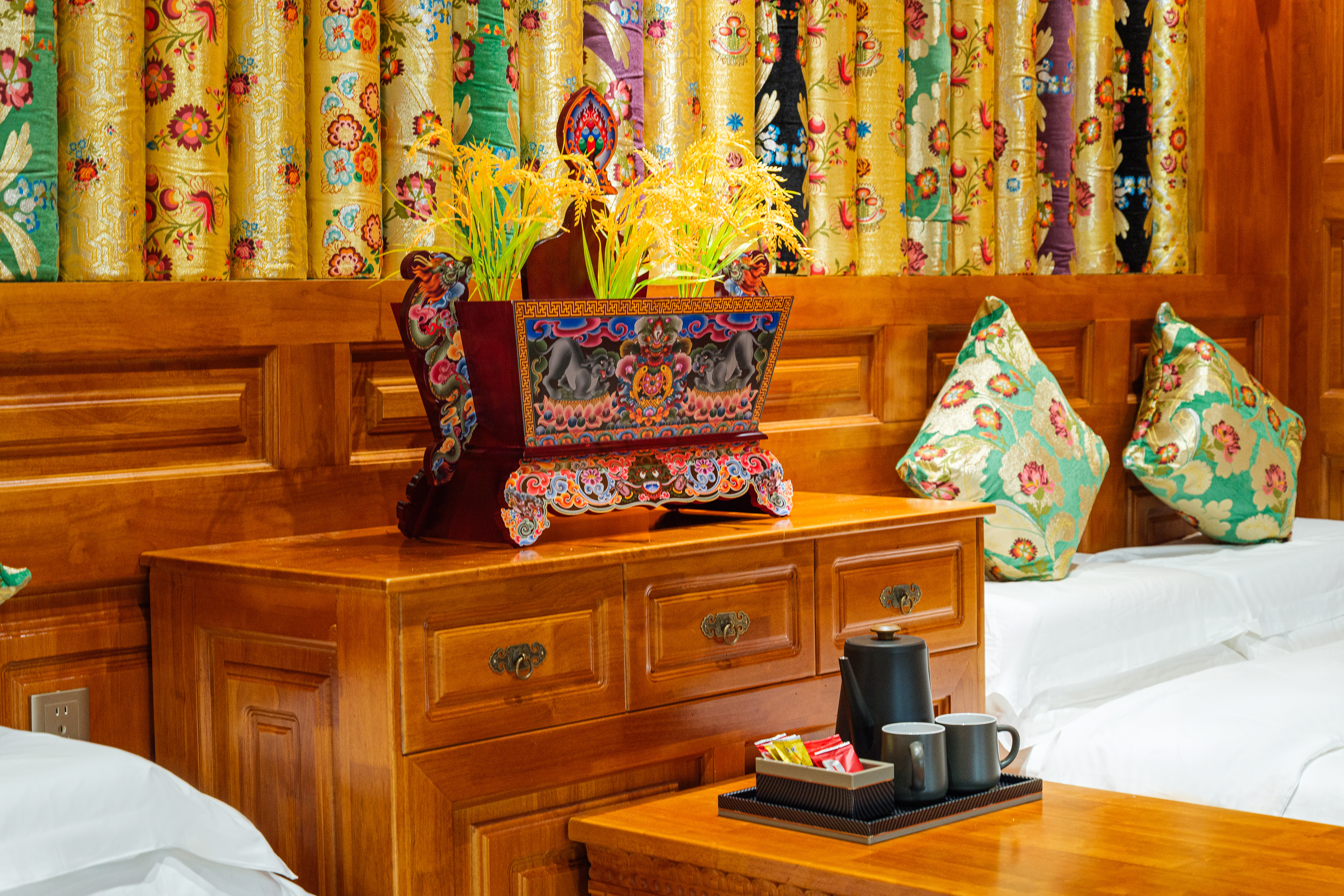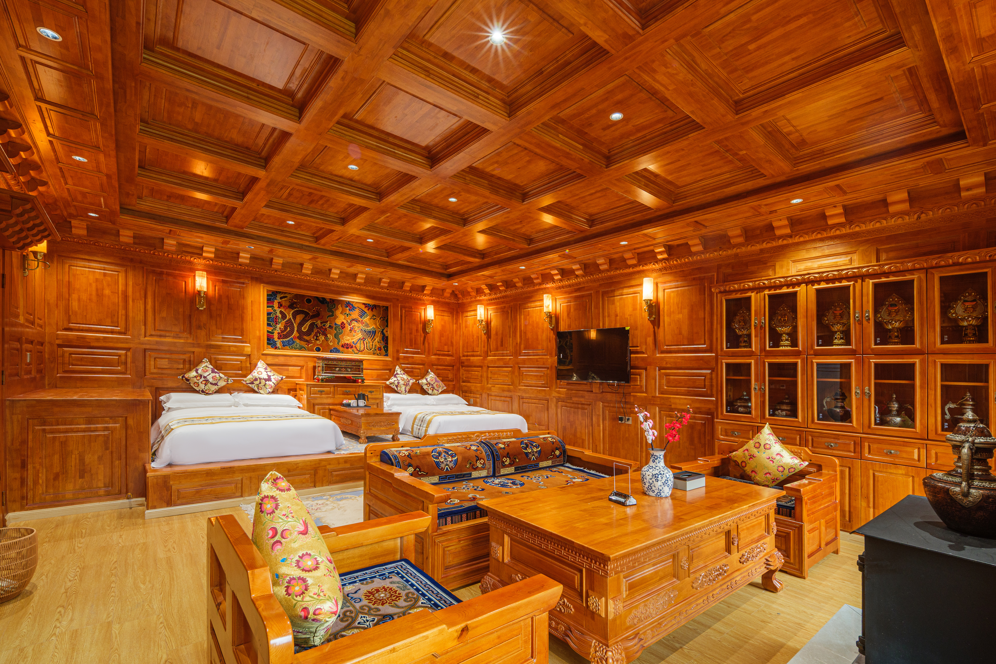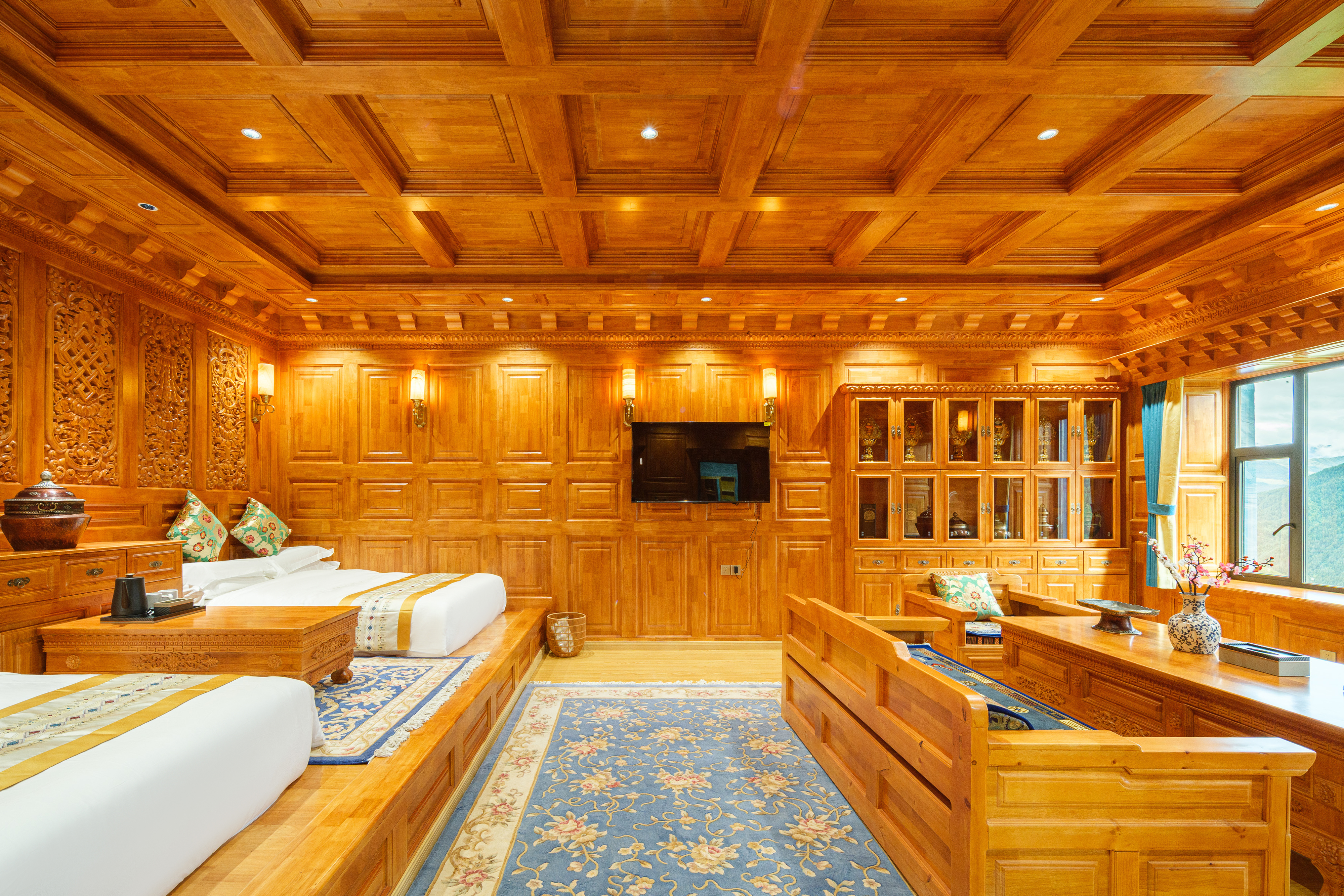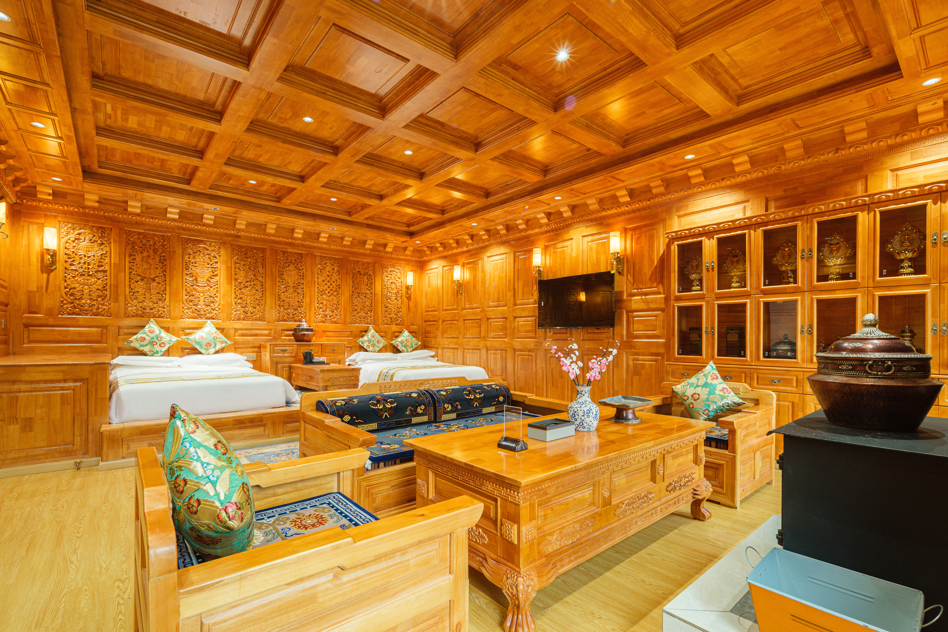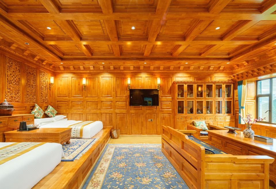 斯琴拉措·藏式山景雙床房(地暖+智能馬桶+壁爐+浴缸)