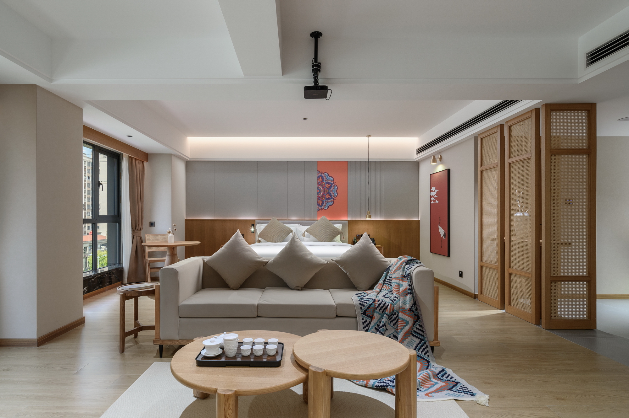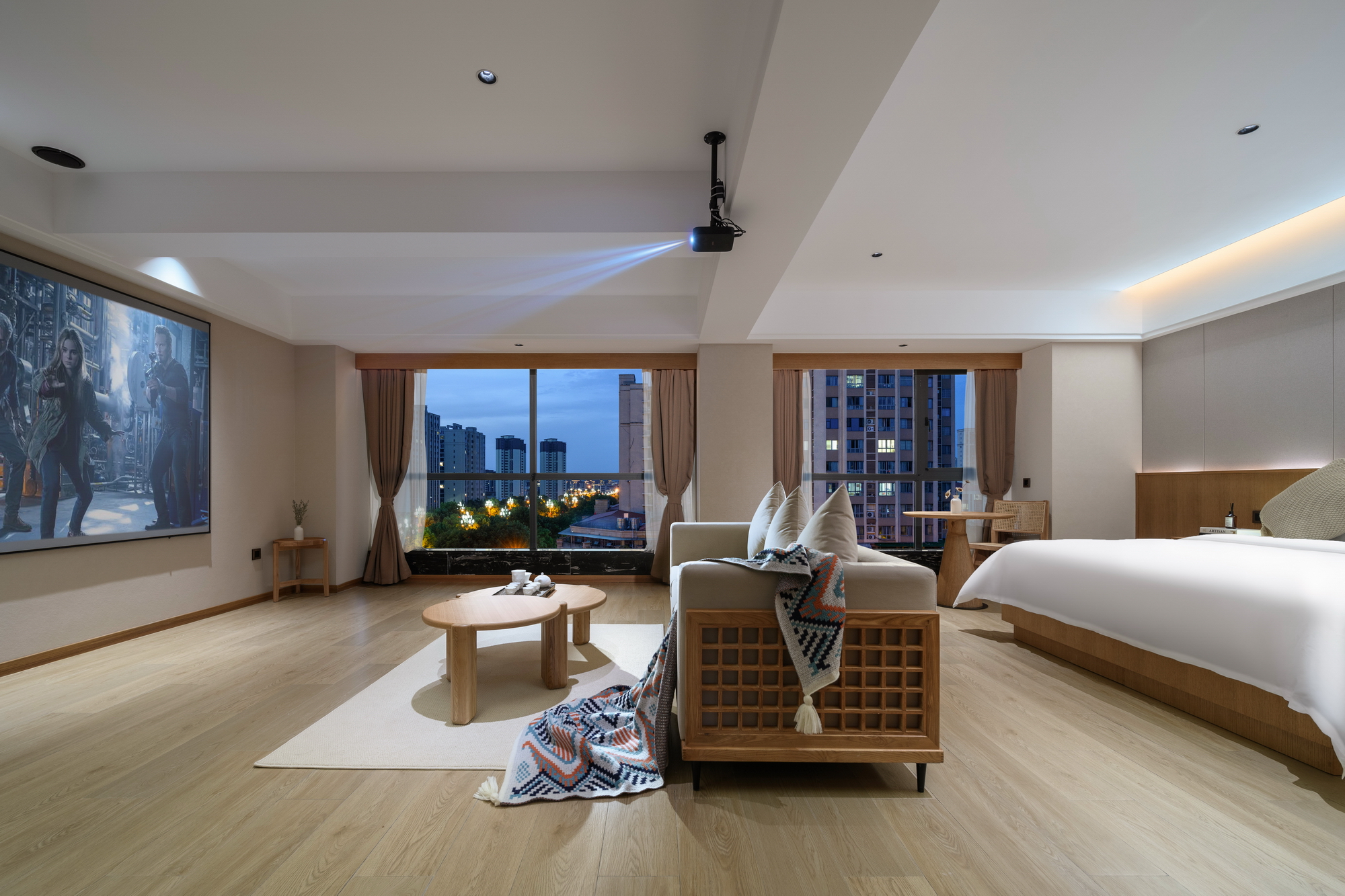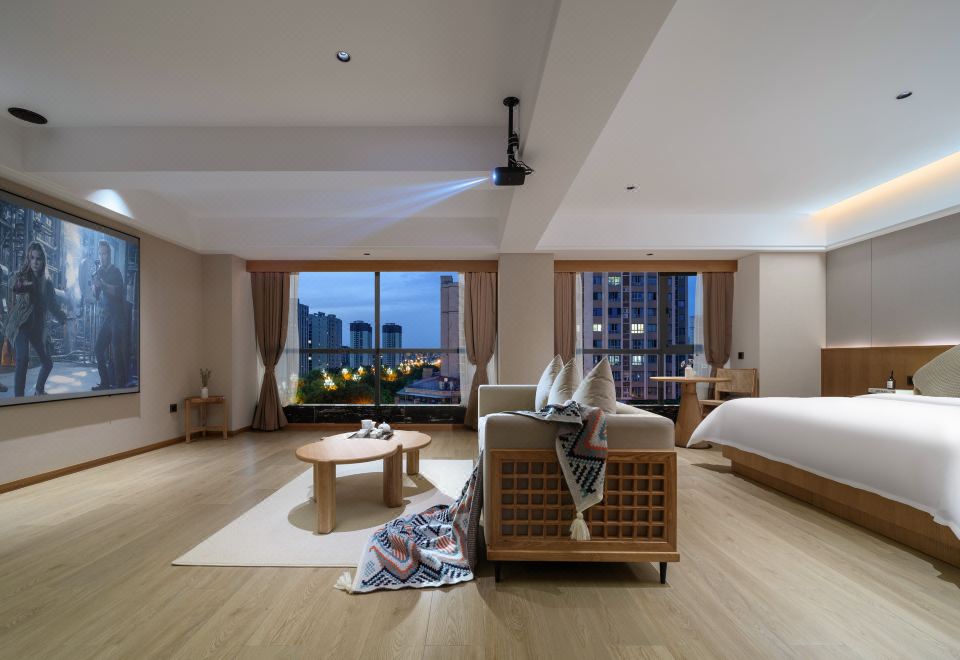 Exclusive 120-Inch Giant Screen Cinema Deluxe Double Bed Room + Smart Voice Control + 120-Inch Hd Projection + Zero Pressure Mattress + Latex Pillow