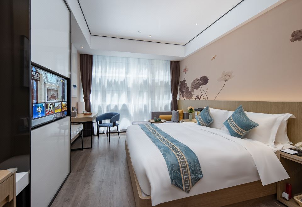 格雷斯精选大床房(空气净化器+迷你冰箱+180°落地窗)