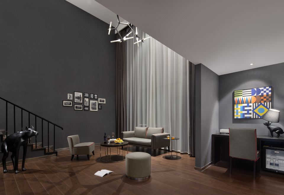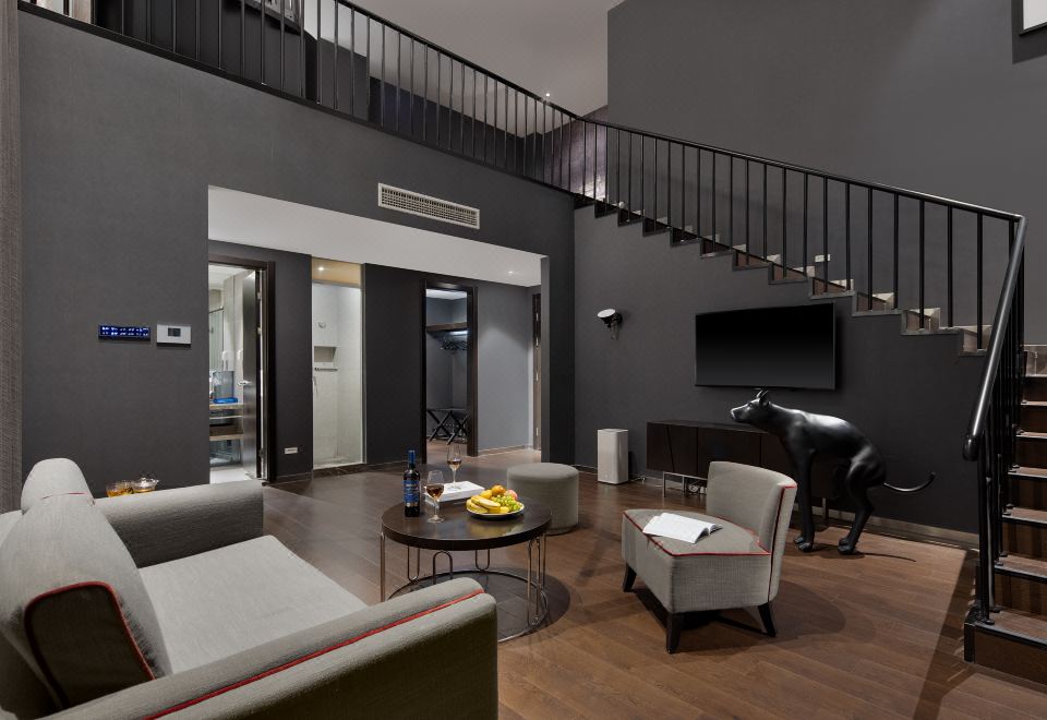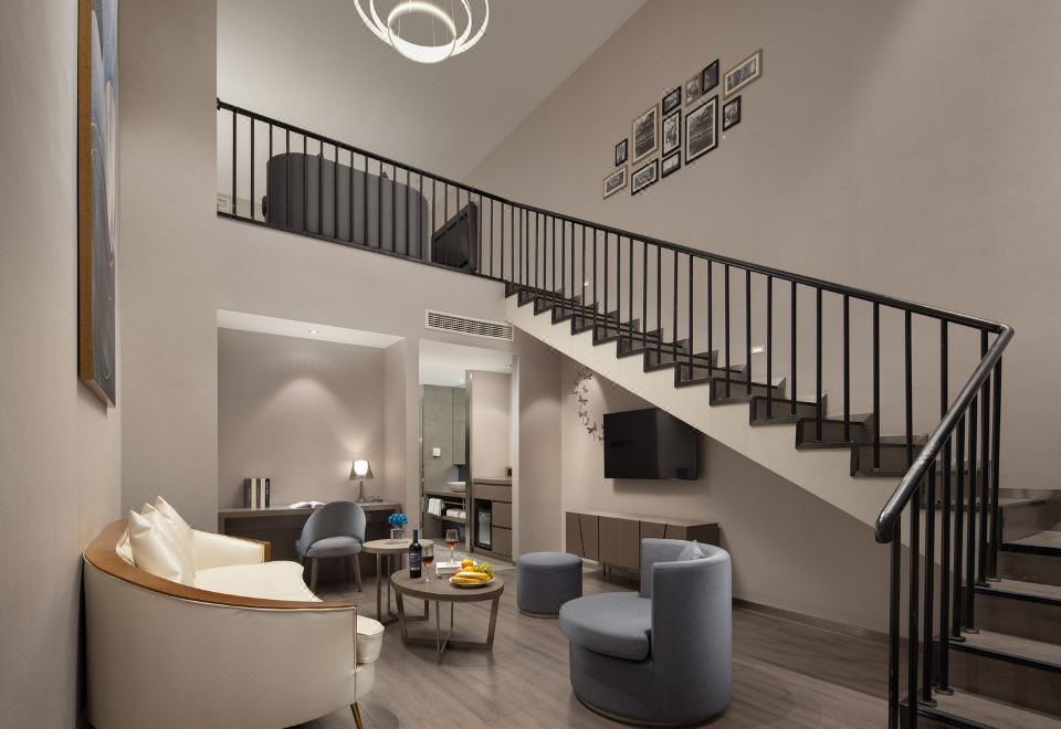 设计师两层复式浴缸套房(一室一厅+小冰箱+全屋声控)