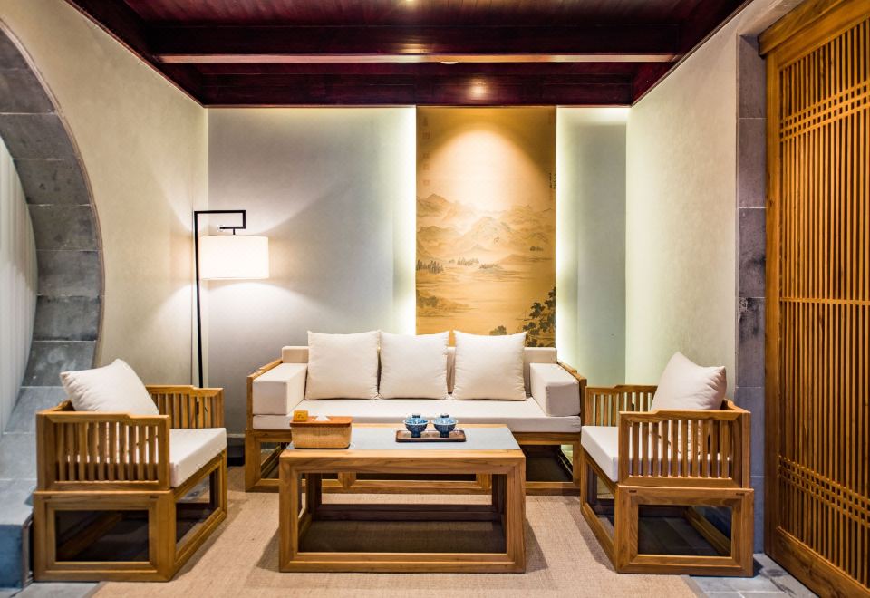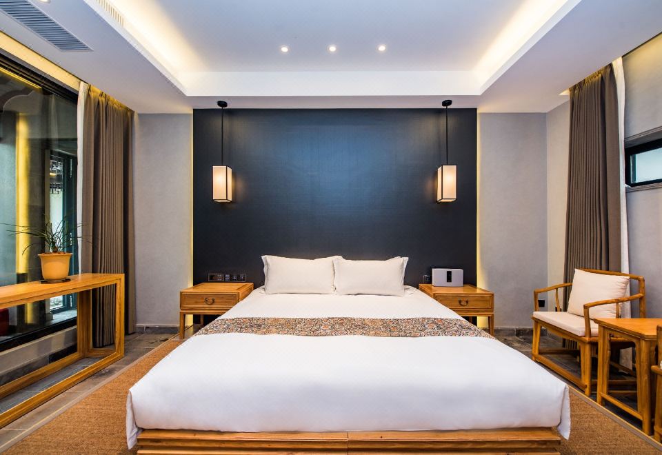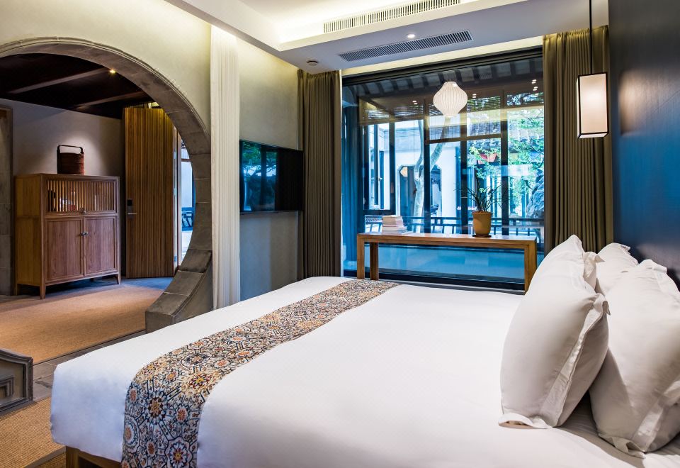 幽兰梦蝶·大床房丨超大浴缸观景+智能按摩椅+私享苏式园景+全屋地暖