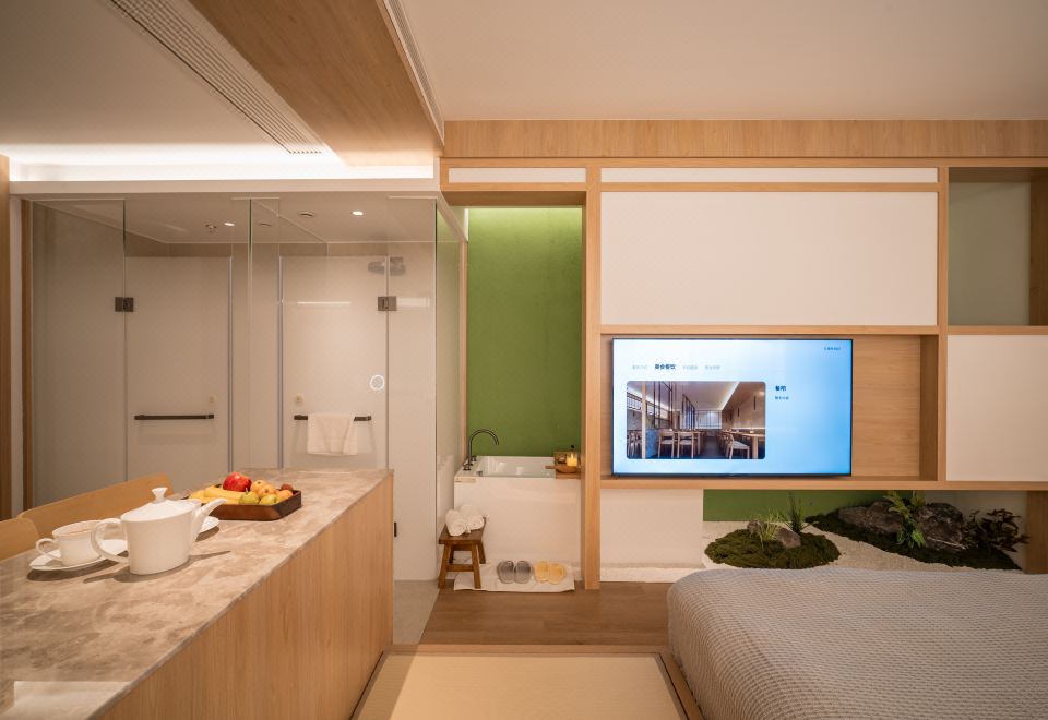 日式情侣房『私密浴缸·智能马桶·65寸投屏电视』