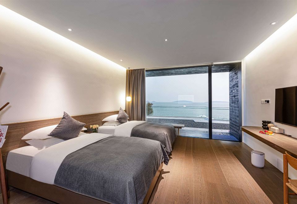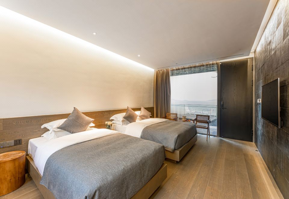 聆水·阳光度假湖景双床房{无边泳池日落·戴森吹风机}