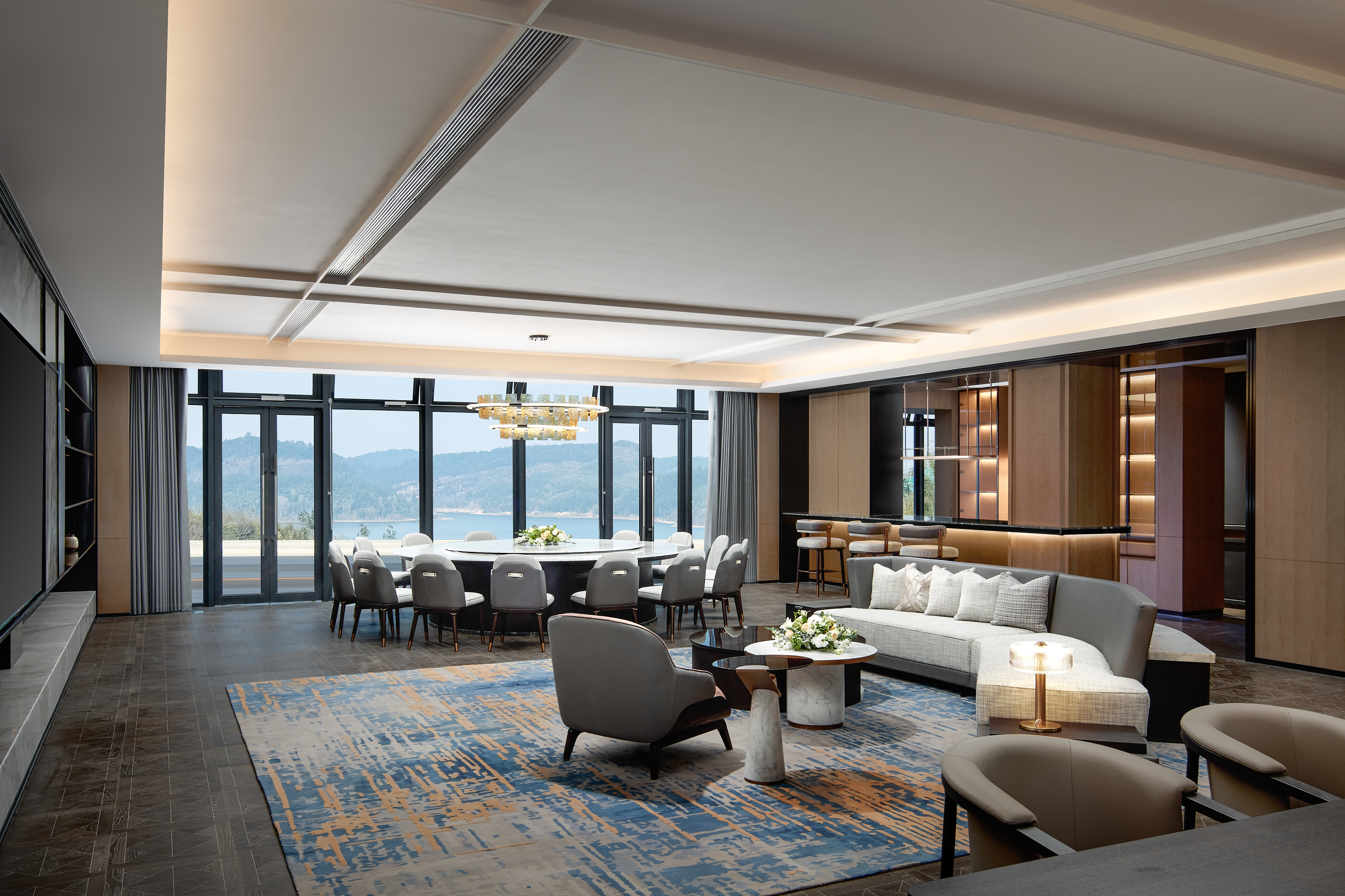 豪华套房+湖景双阳台+浴缸+衣帽间+冰箱+保险柜