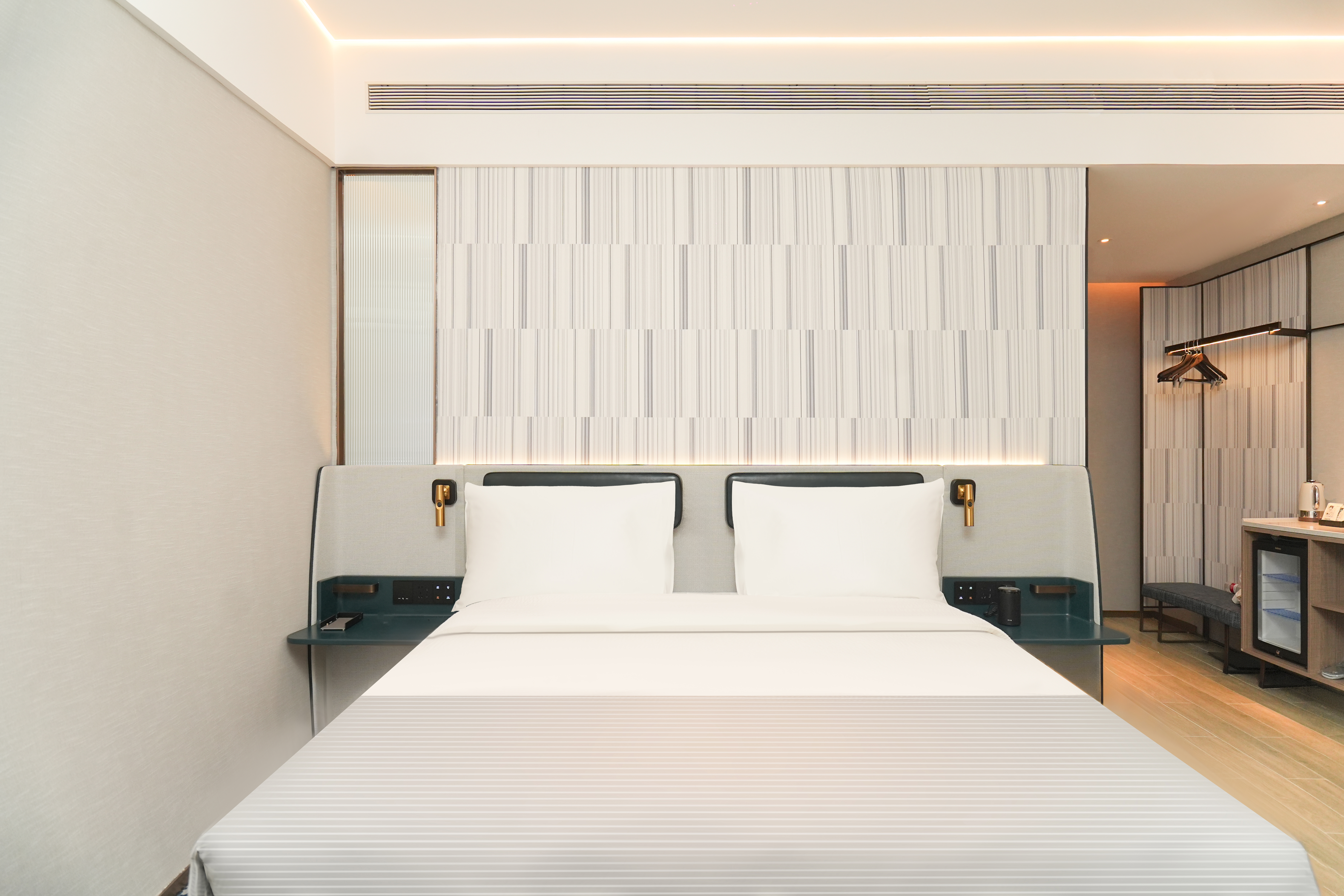 靜謐大床內景房-金可兒床墊-智能客控-電視投屏
