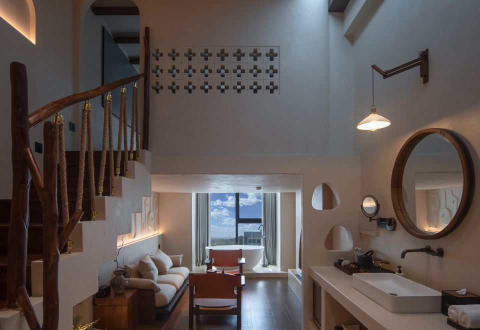 柚坊「LOFT雙層|90°湖景浴缸|霧化壁爐」