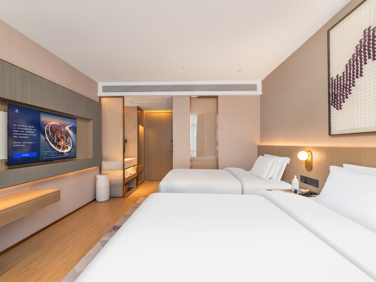 純凈自然雙床房+空氣凈化器+即熱開水壺