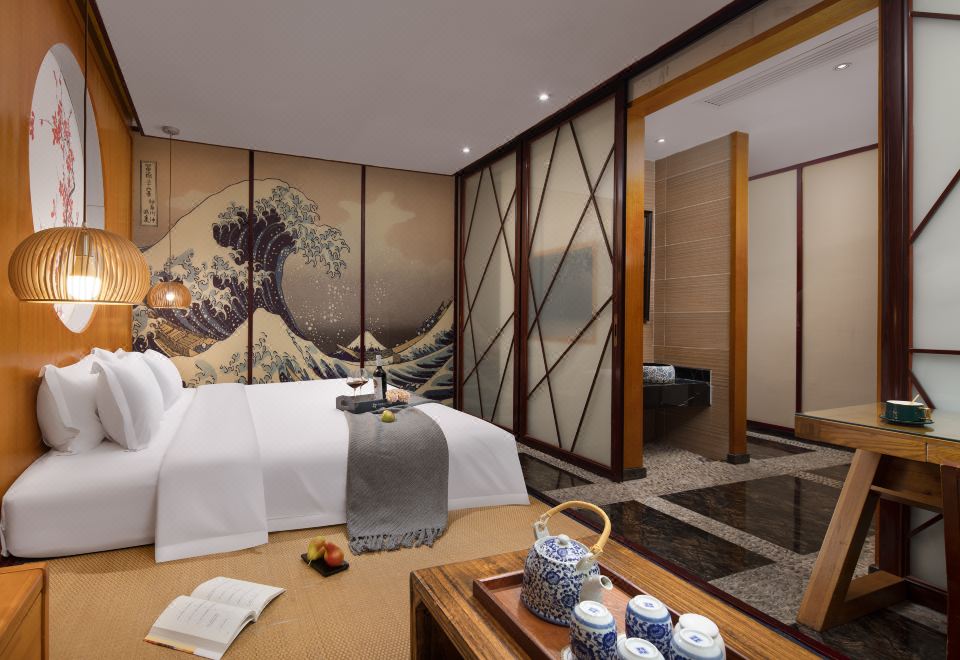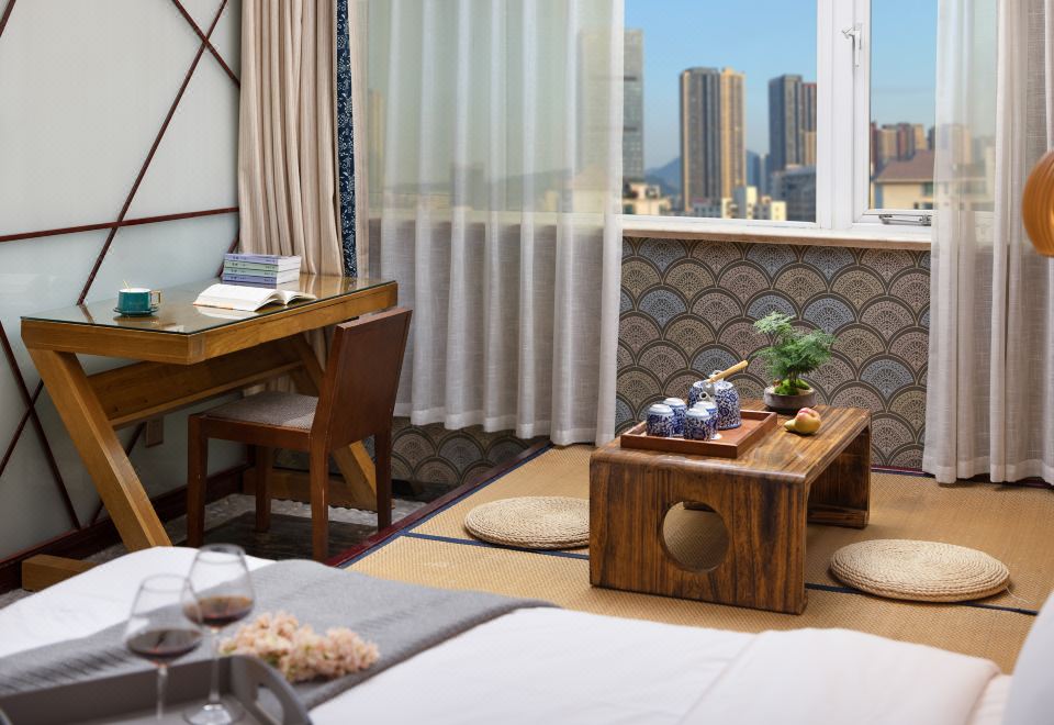 日式榻榻米大床房『坐榻茶歇區-高壓淋浴』