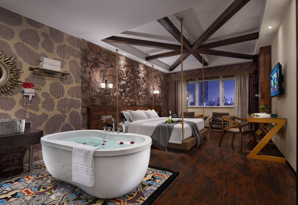 酋長村主題大床房『深泡浴缸-乳膠舒眠軟枕』