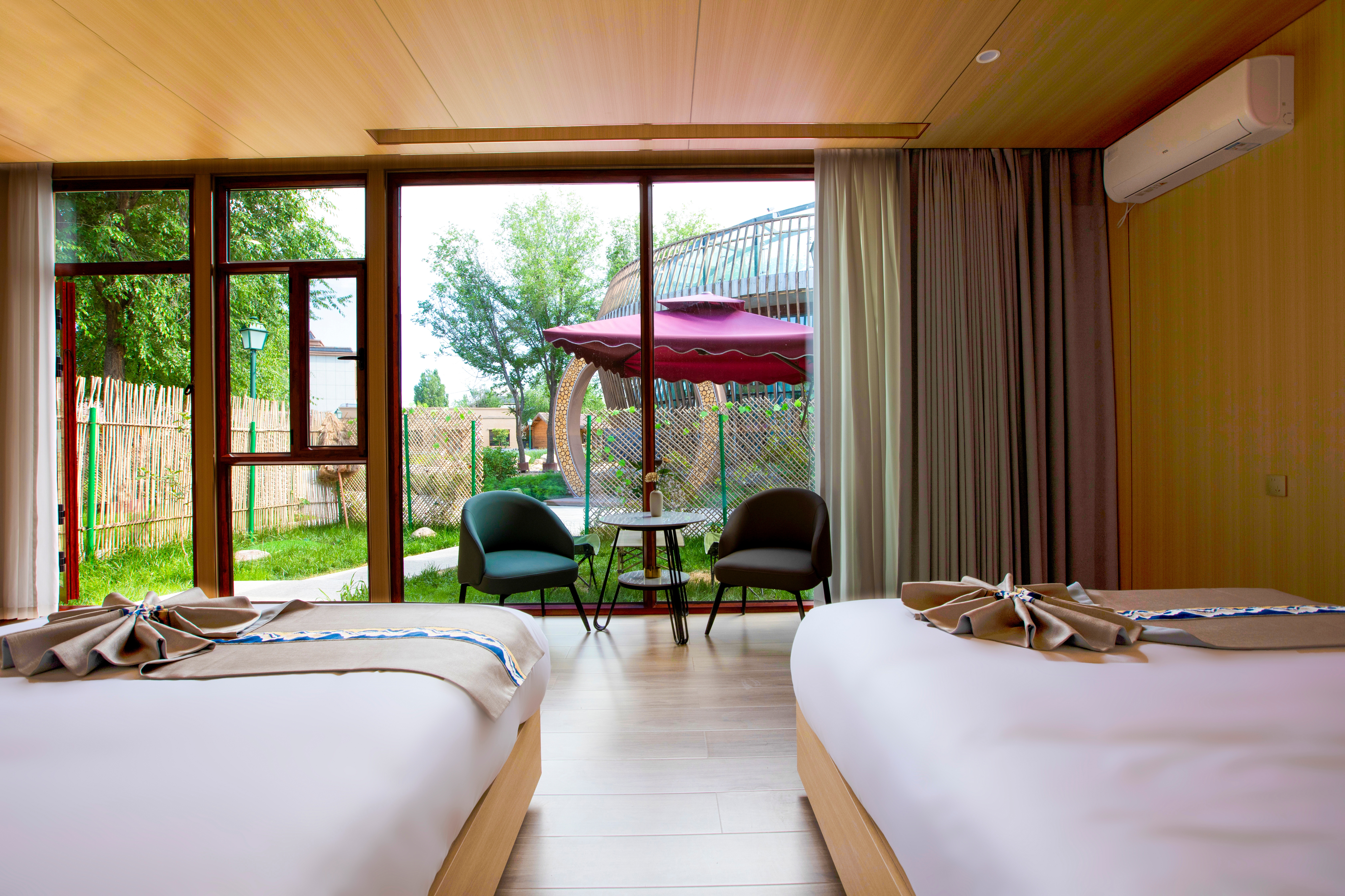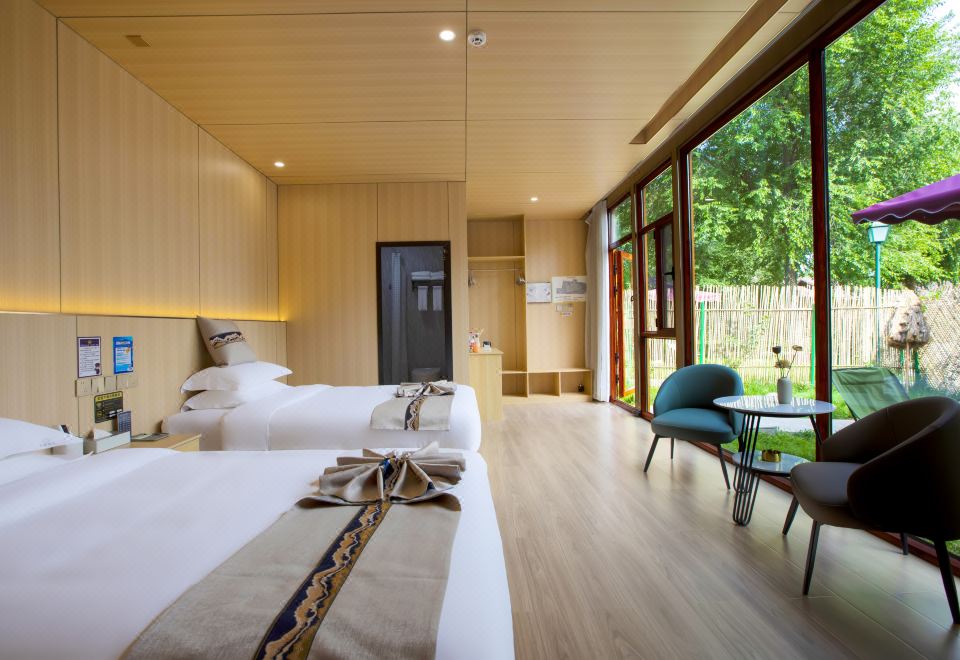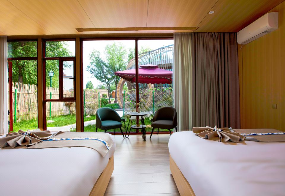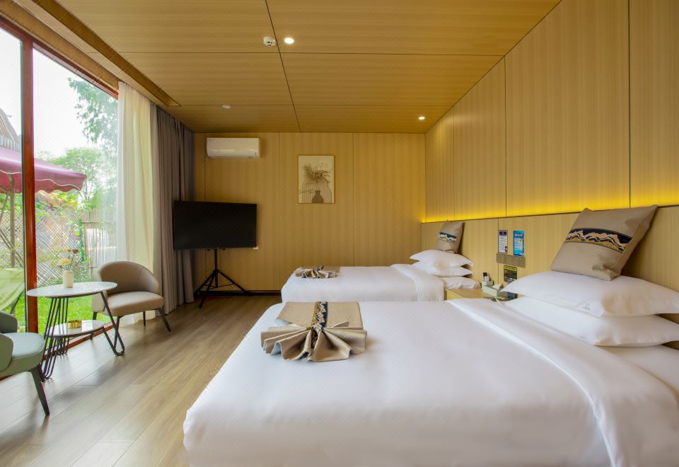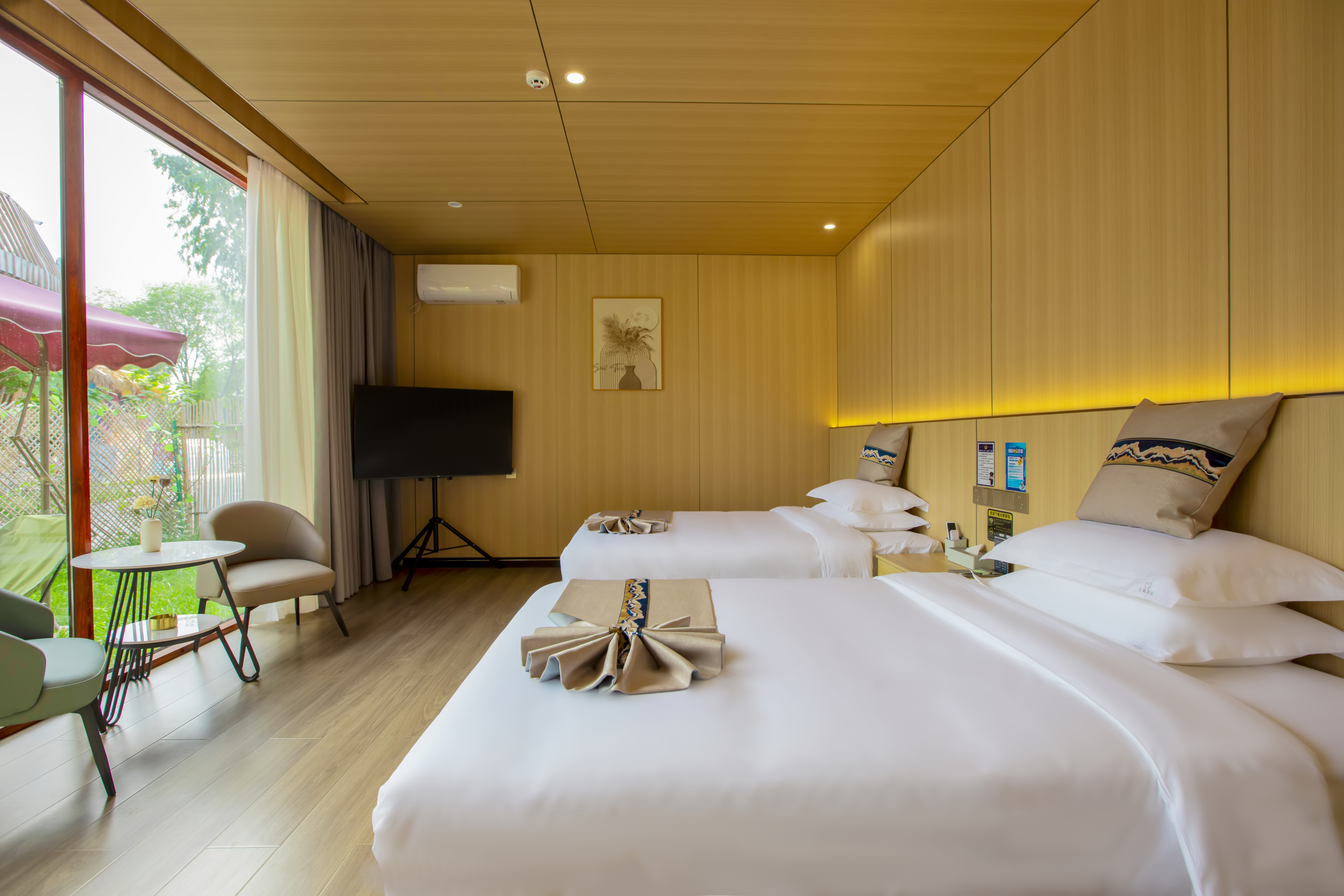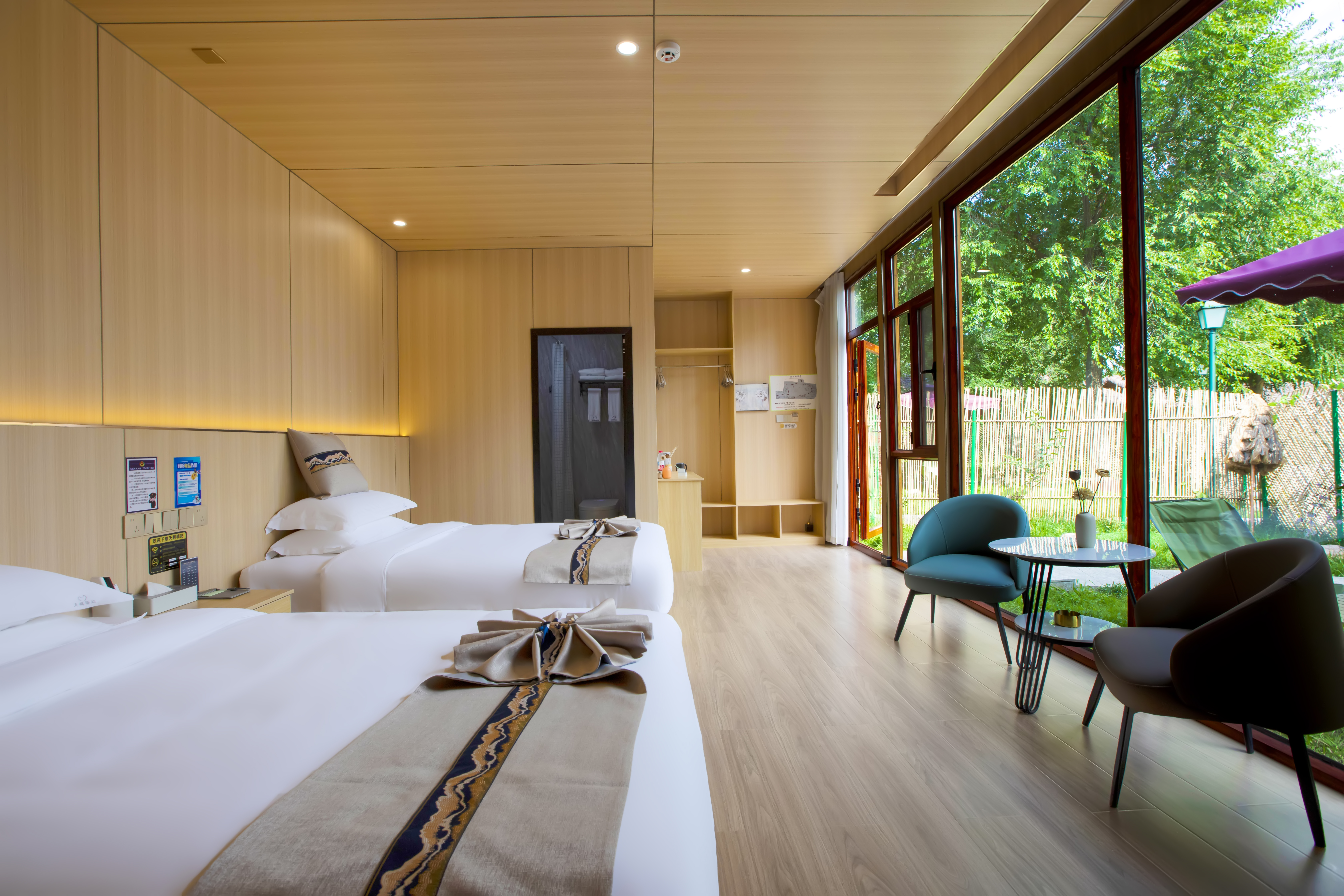 窗畔竹篱·双床房(落地窗+智能马桶+声控窗帘+空调)