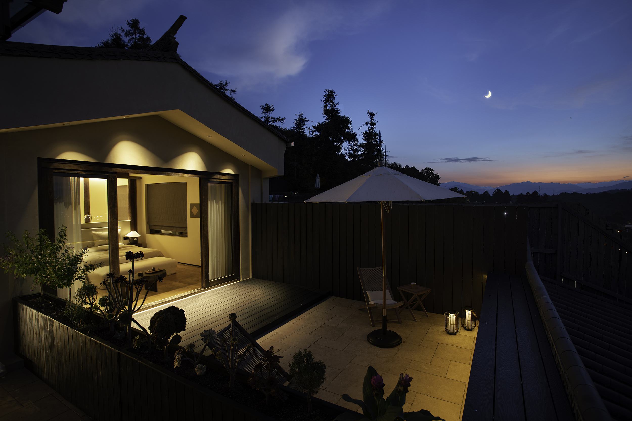 天穆之野·清新大床房「全景露台+休闲茶座+温泉私汤」