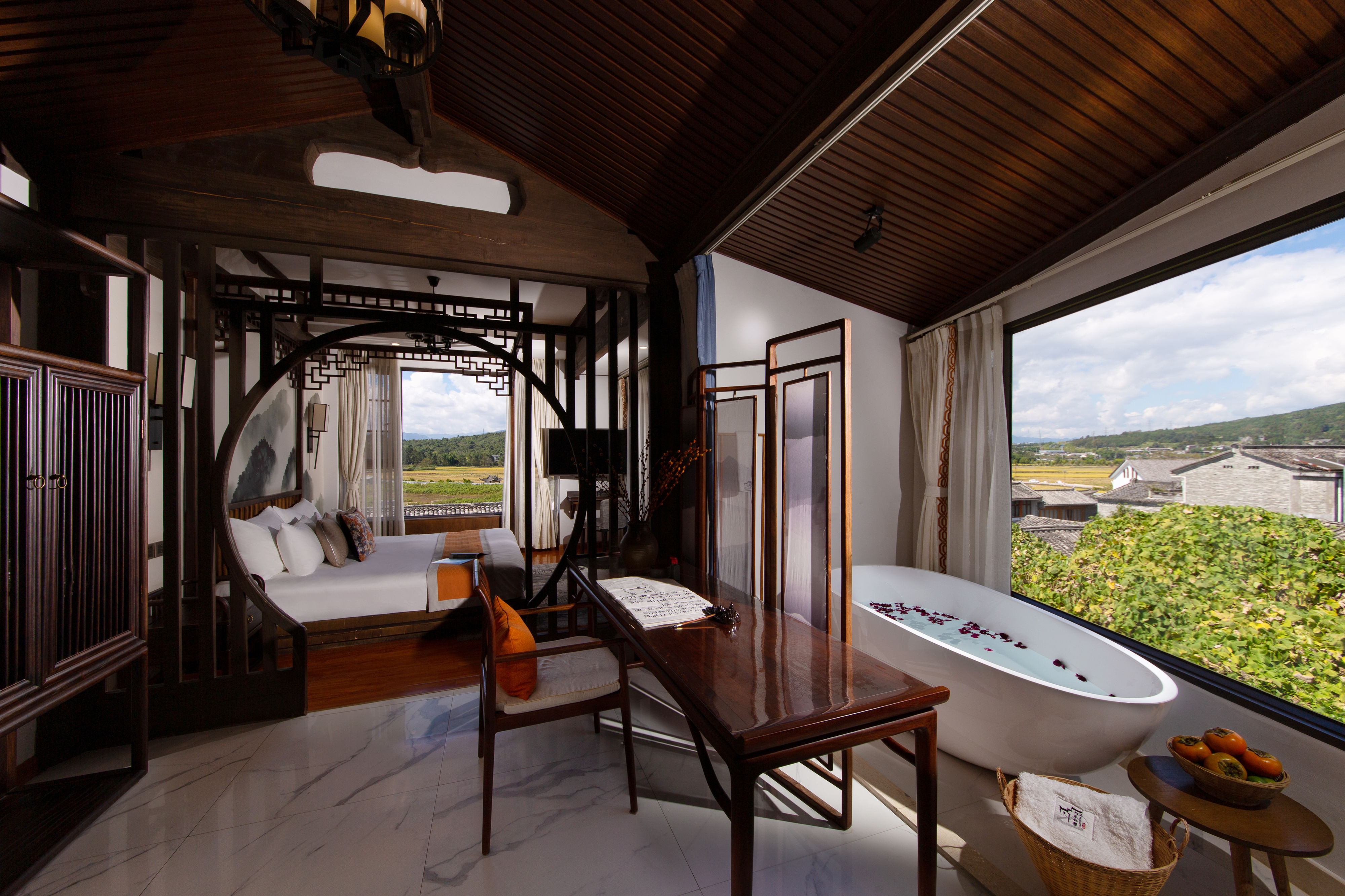 Scenic Vista Premium 270 ° Hot Spring Suite With Leisure Tea Platform, Scenic Terrace, And Tub