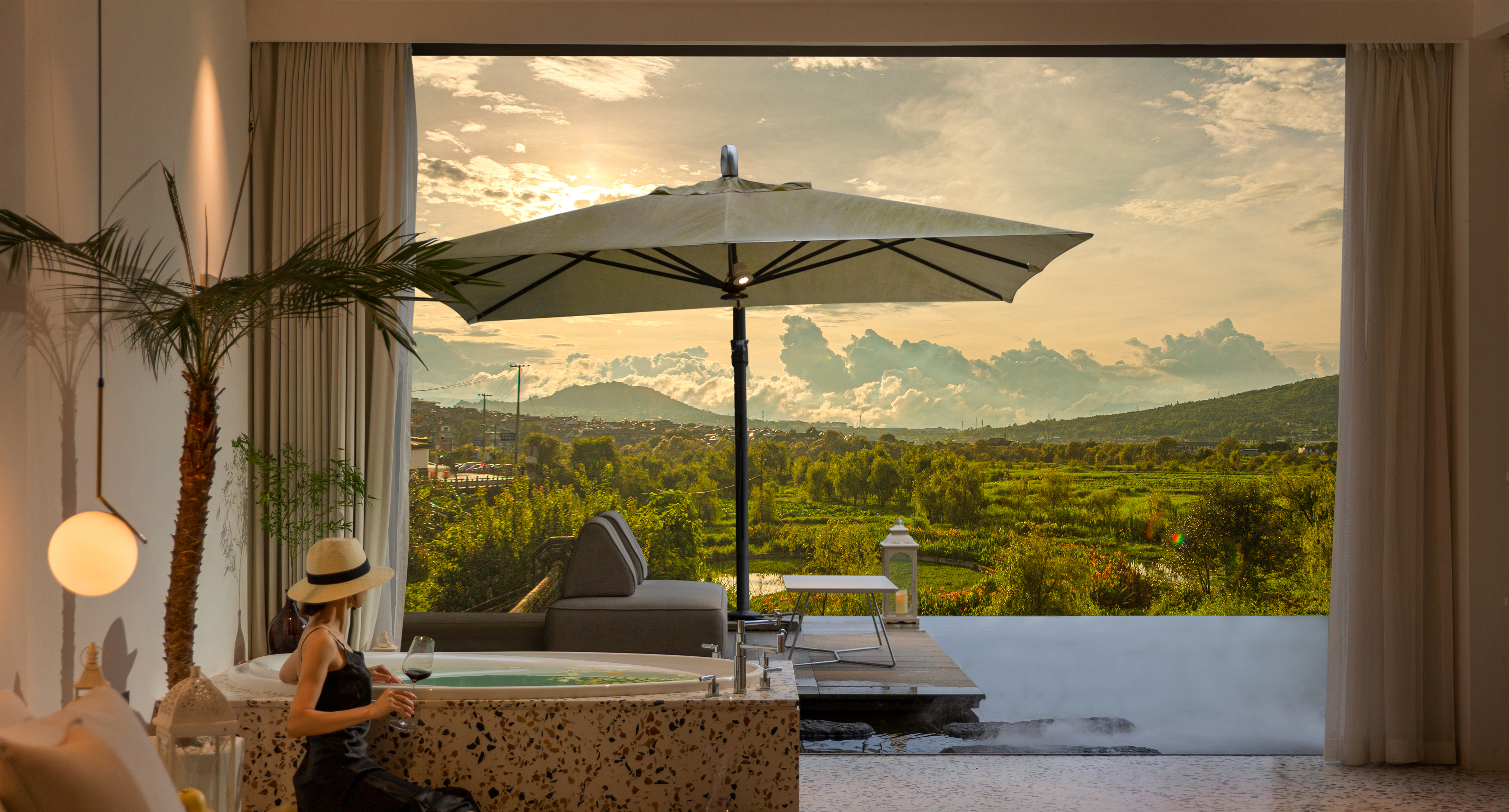Yue Ren Panoramic Deluxe Cinema Hot Spring Private Hot Spring Family Room