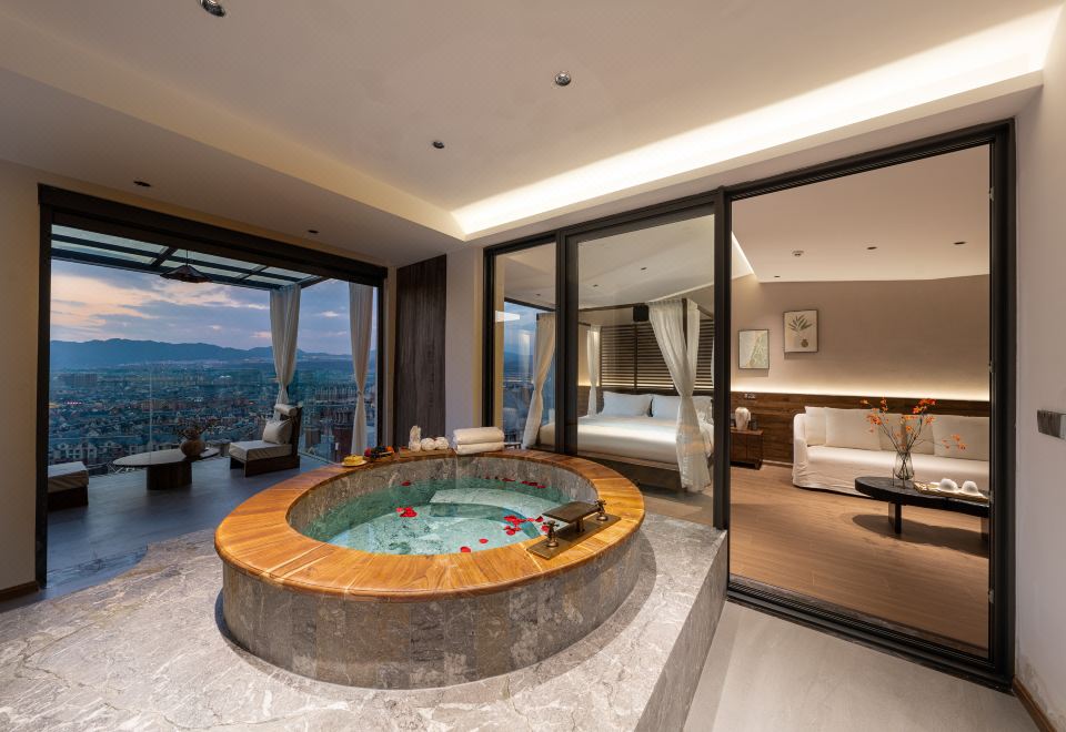 Muyuan Mountain Side 180 ° Mountain-View Private Hot Spring Double Bed Room (with Full Smart Home, Derucci Mattress, Hansgrohe Bathroom, And Dyson Hair Dryer)