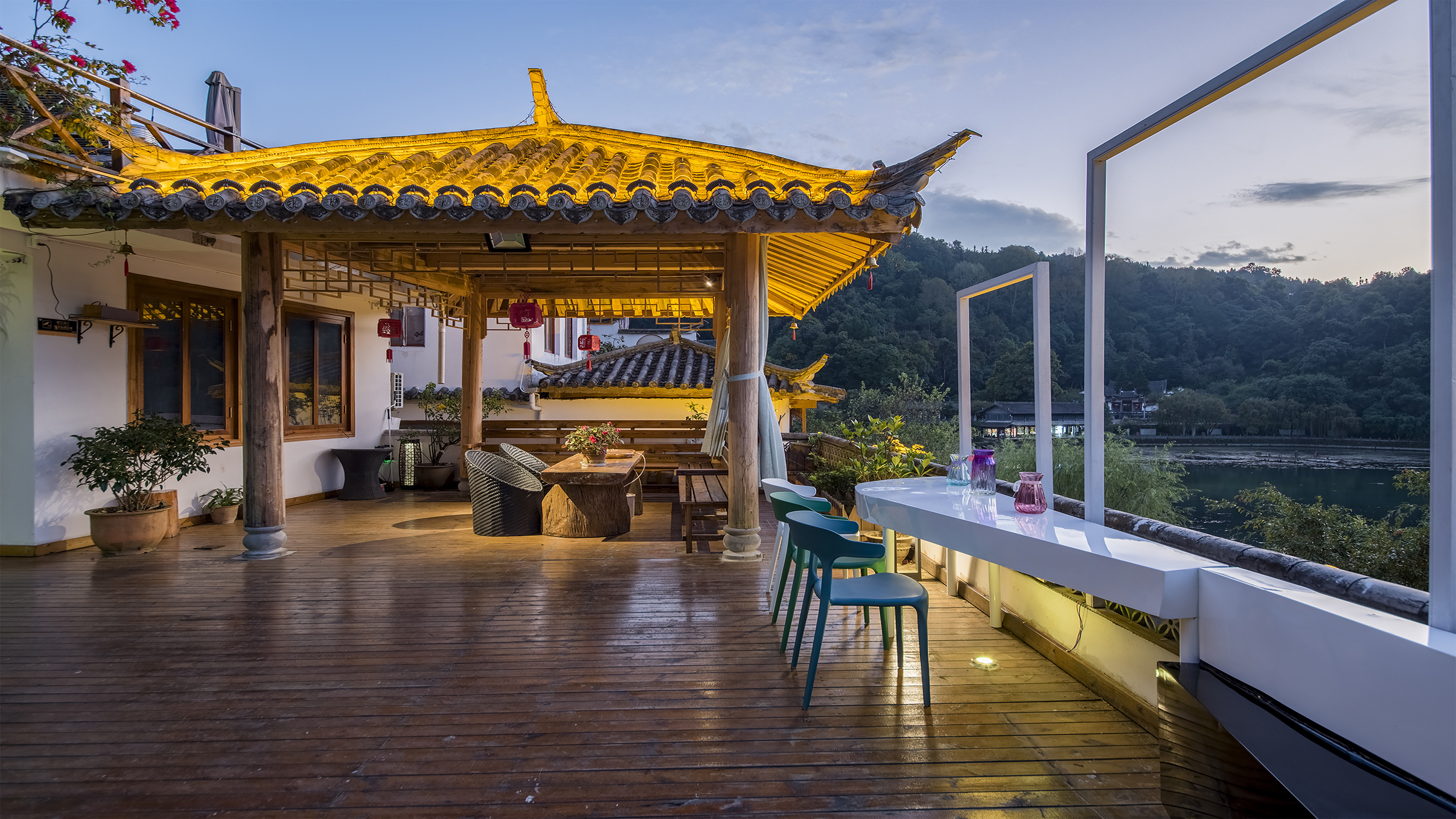 【花園露台享270°古鎮湖景】琢玉優享大床房·智能馬桶·【温泉沐浴】