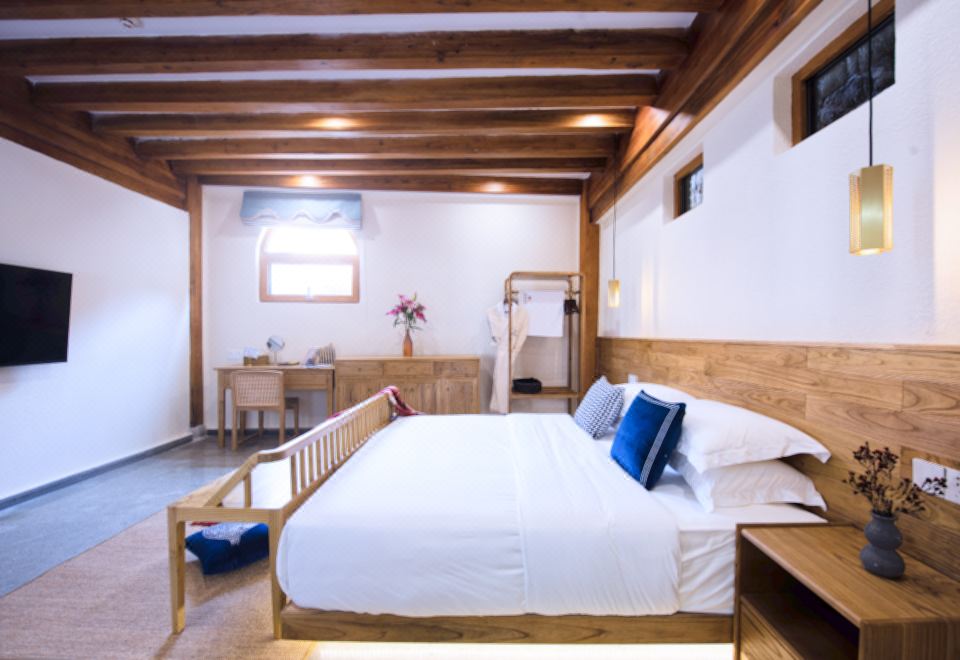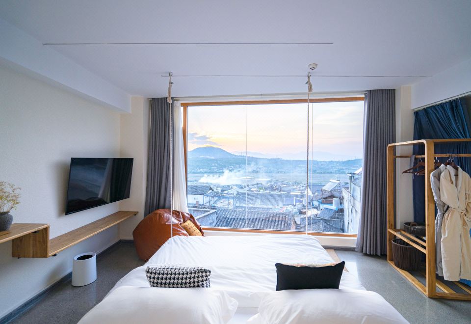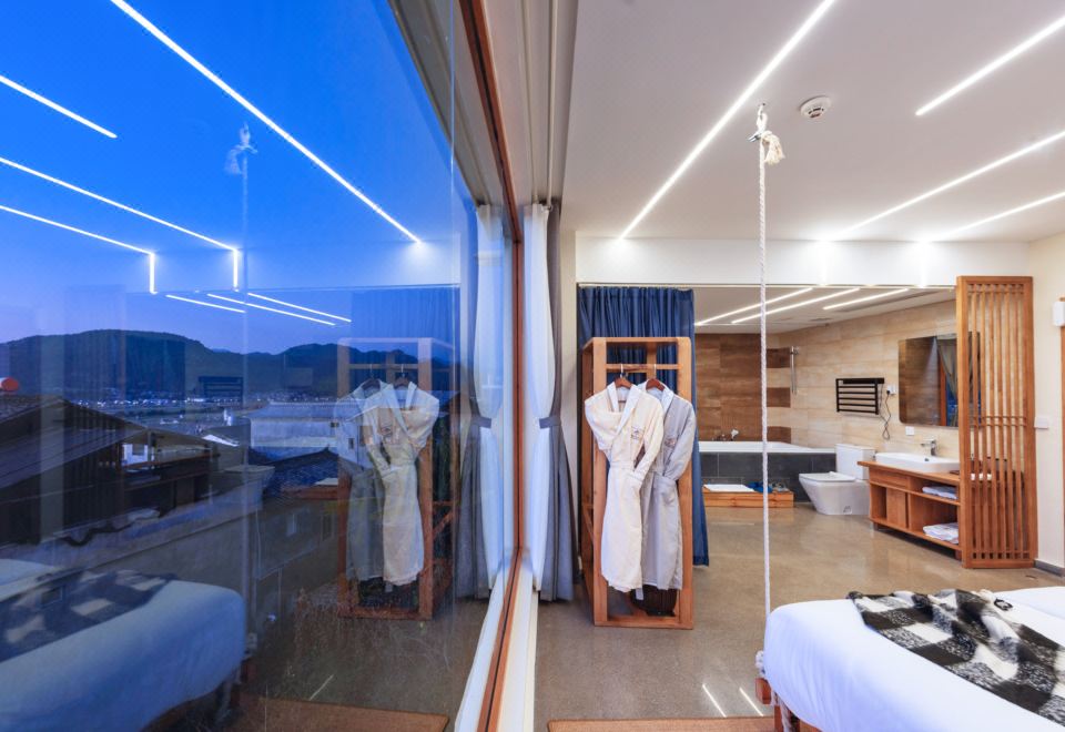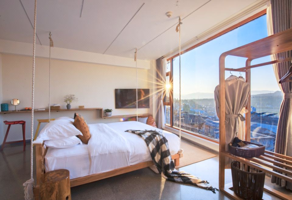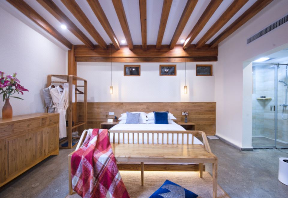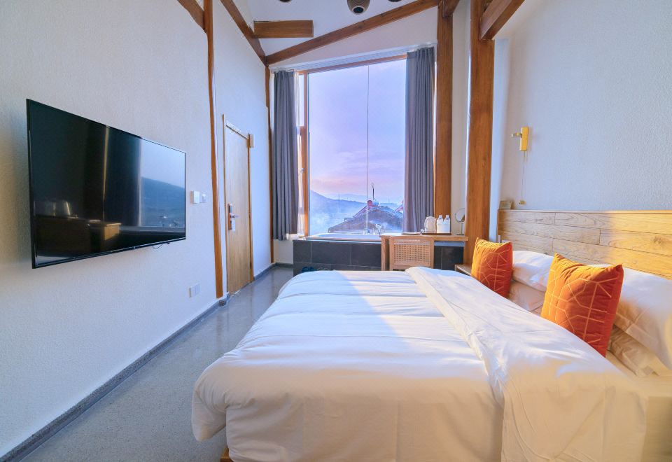 無際·俯瞰古鎮蜜月私湯大床房「180°觀景·田野風光·金可兒床墊·恆温花灑·電熱毛巾架·原木傢俱」