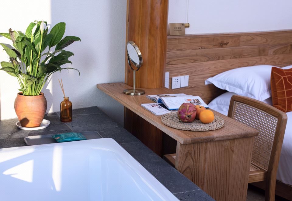眺山·蒼峯遠景私湯大床房「金可兒舒睡床墊·自動窗簾·電熱毛巾架·恆温花灑·原木傢俱」