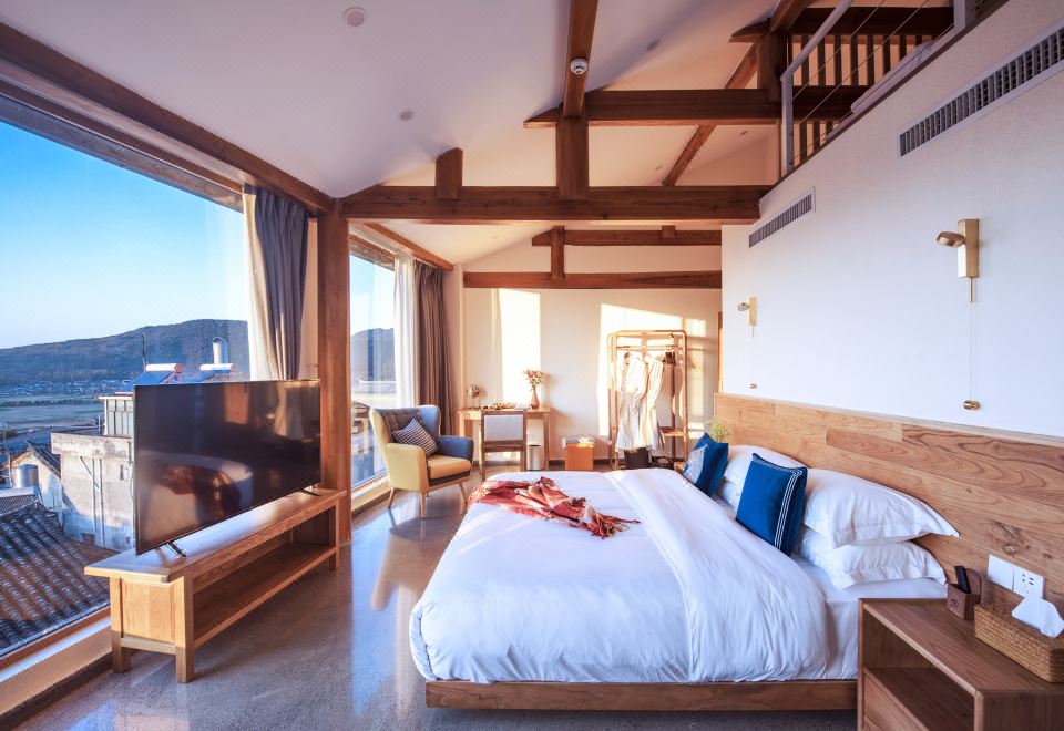 開雲·俯瞰古鎮全景複式套房「180°觀景·田野風光·金可兒舒睡床墊·電熱毛巾架·恆温花灑·原木傢俱」