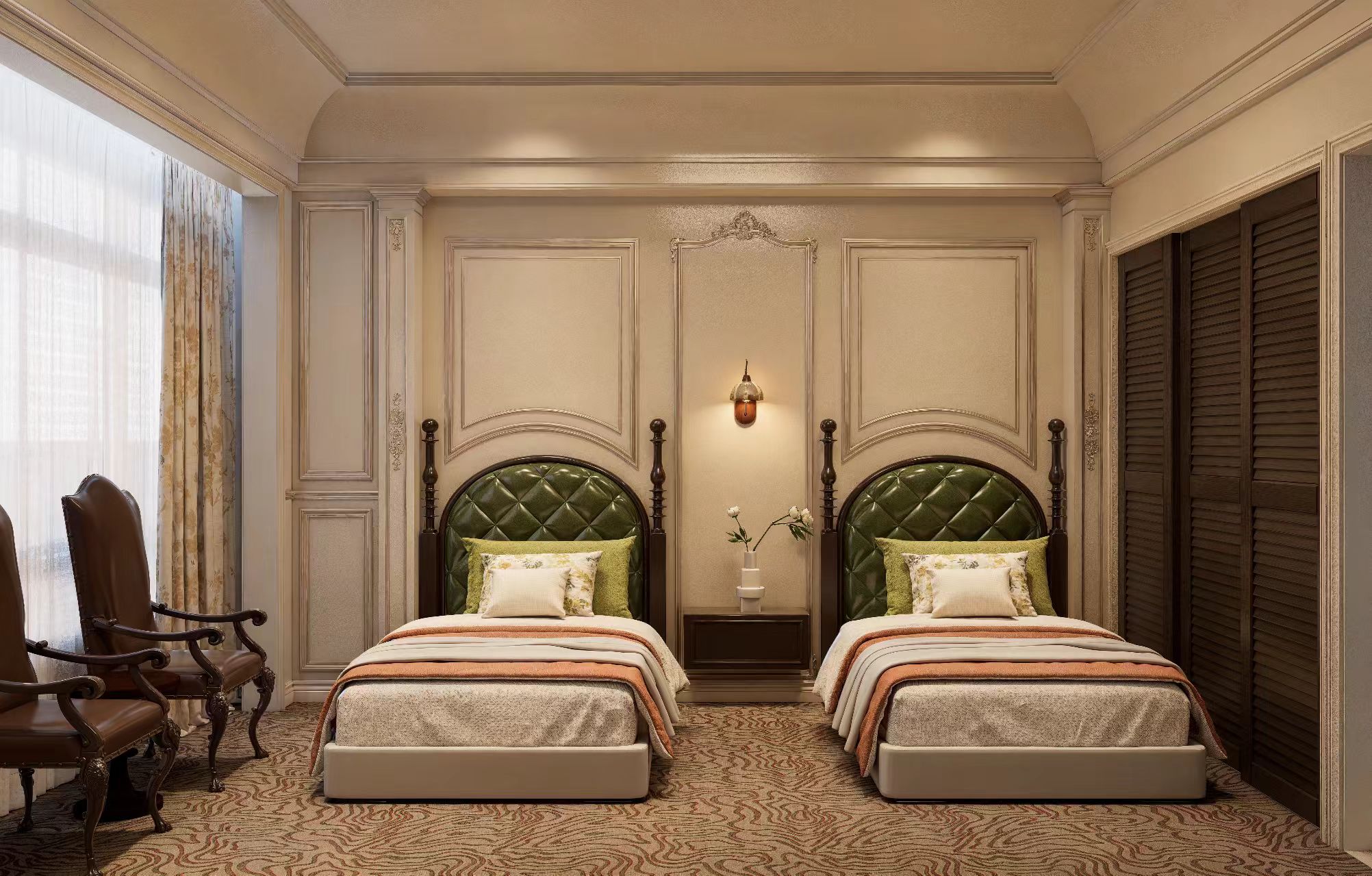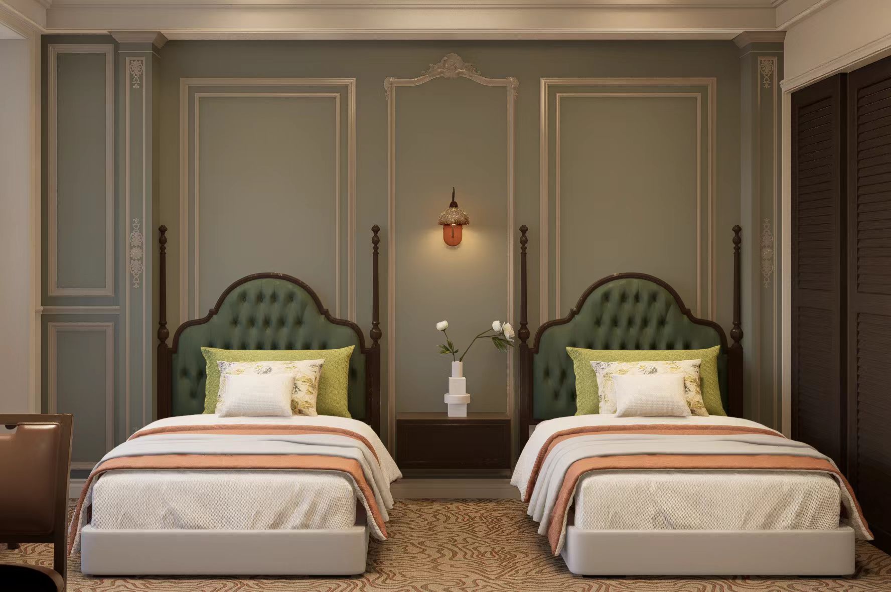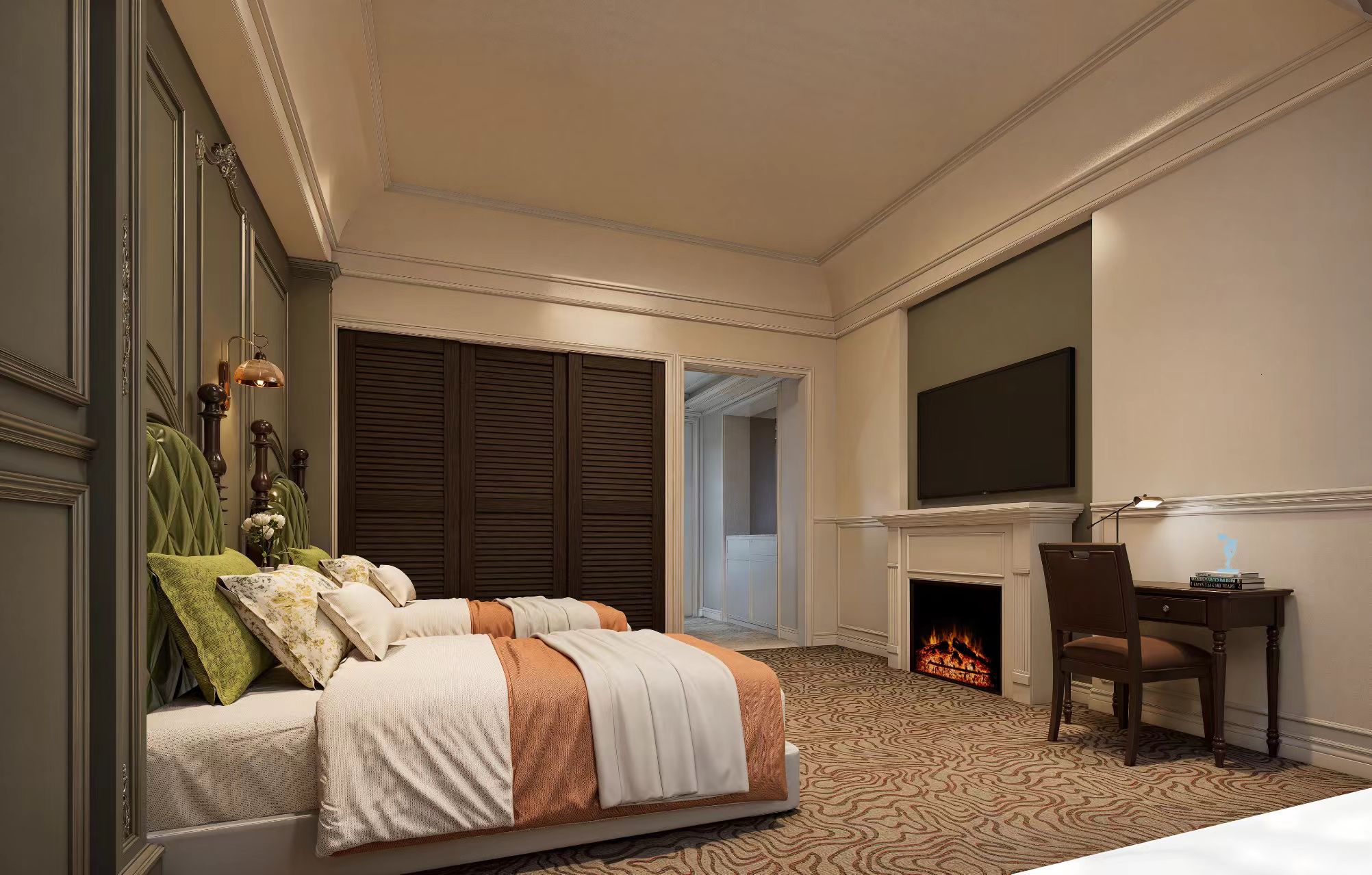 墨韵沉香双床房(仿真壁炉+花园景观+智能客控)