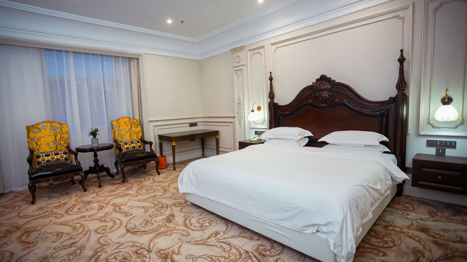 墨韵沉香大床房(实木软包床头+定制休闲椅)