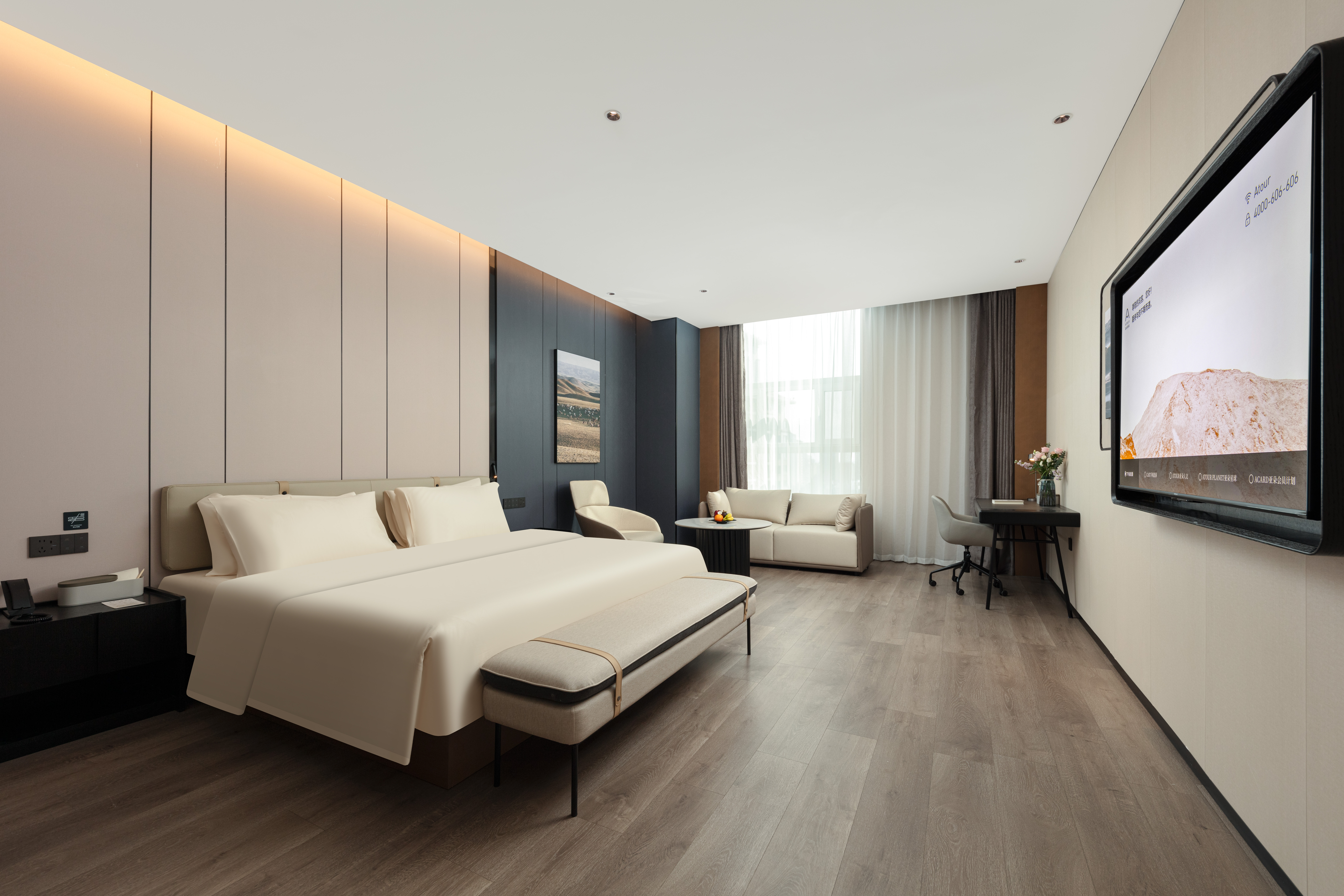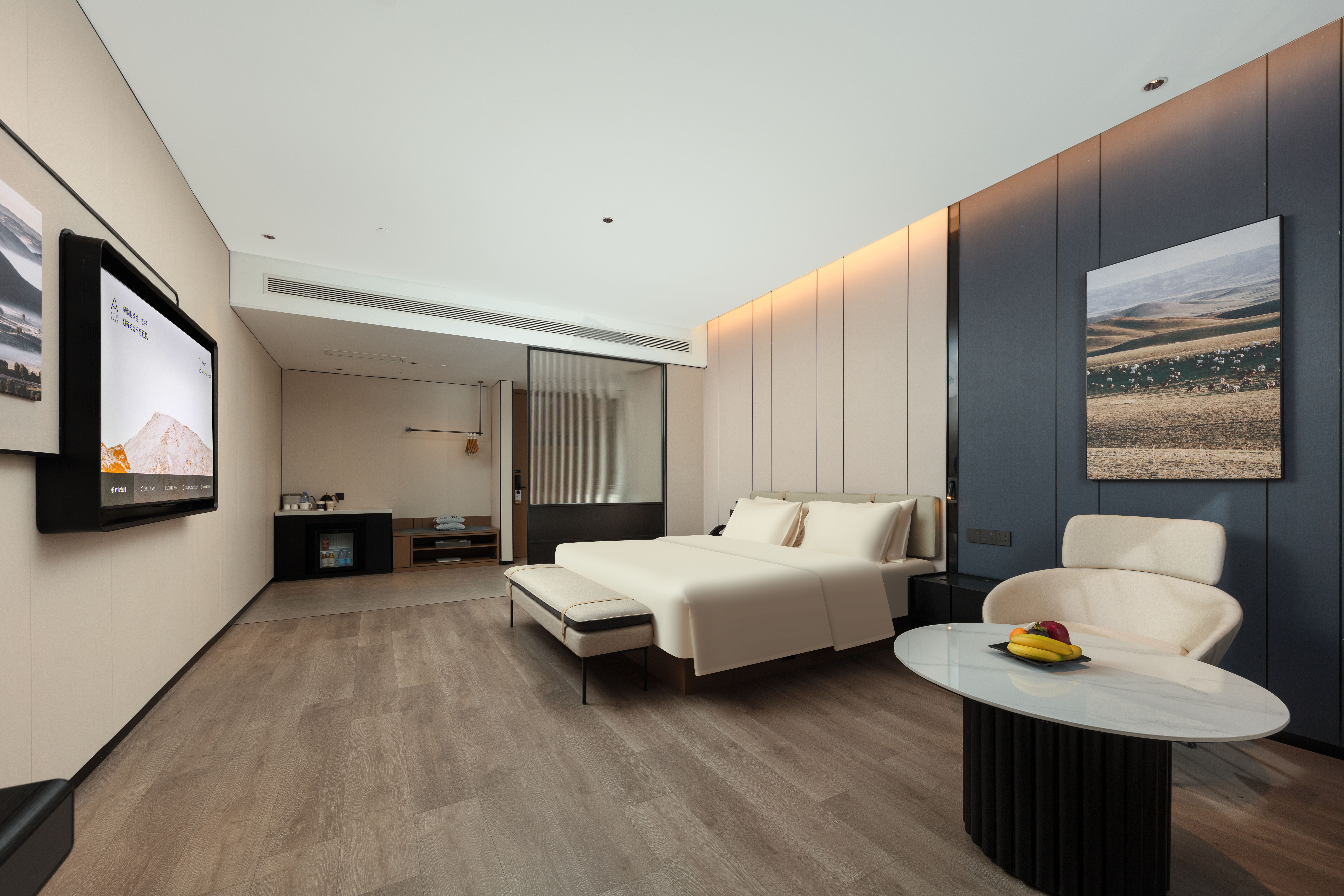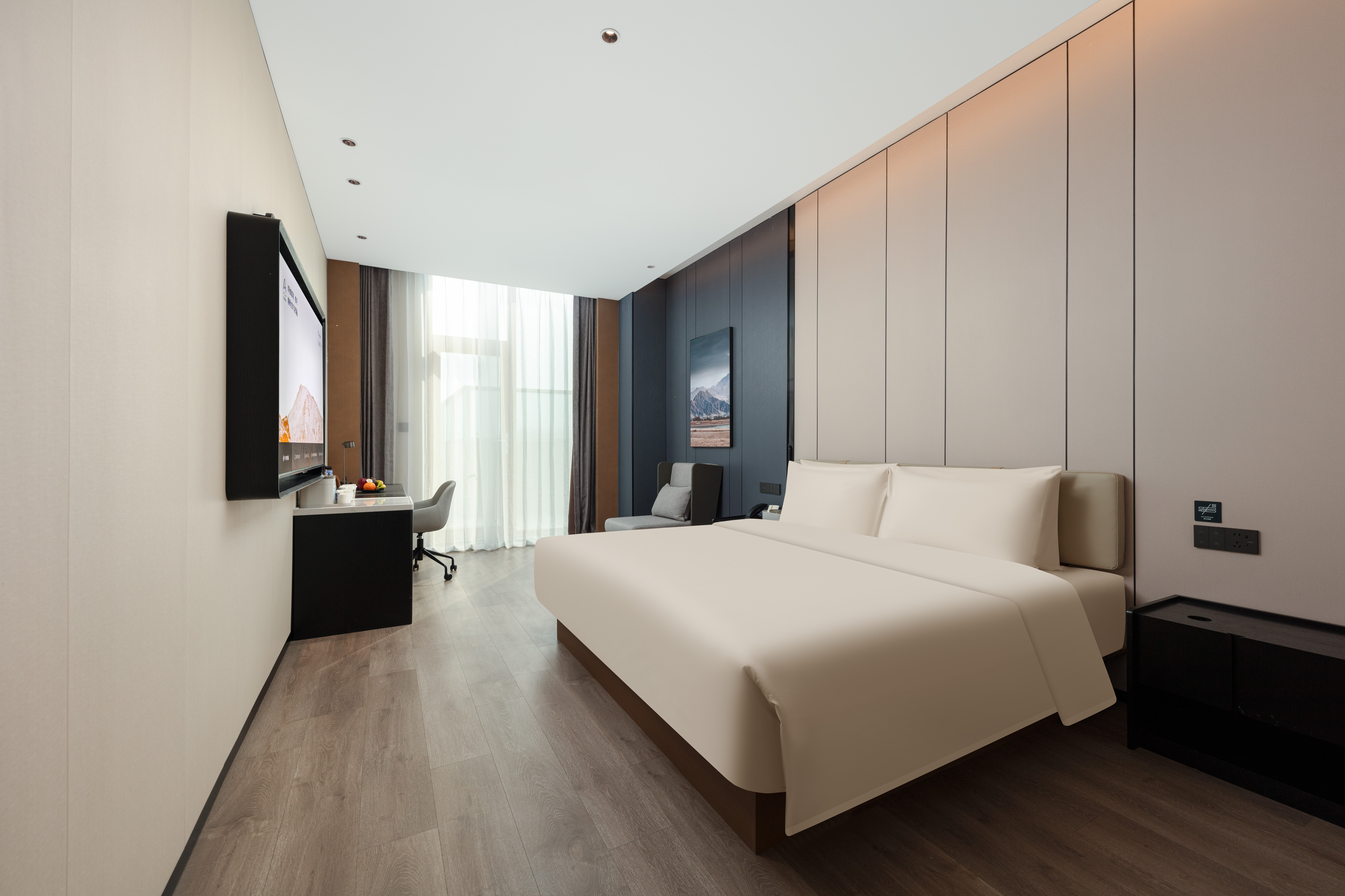 Jimu Family Twin Room With Smart Home, 65-Inch Screen Mirroring&Mini Fridge