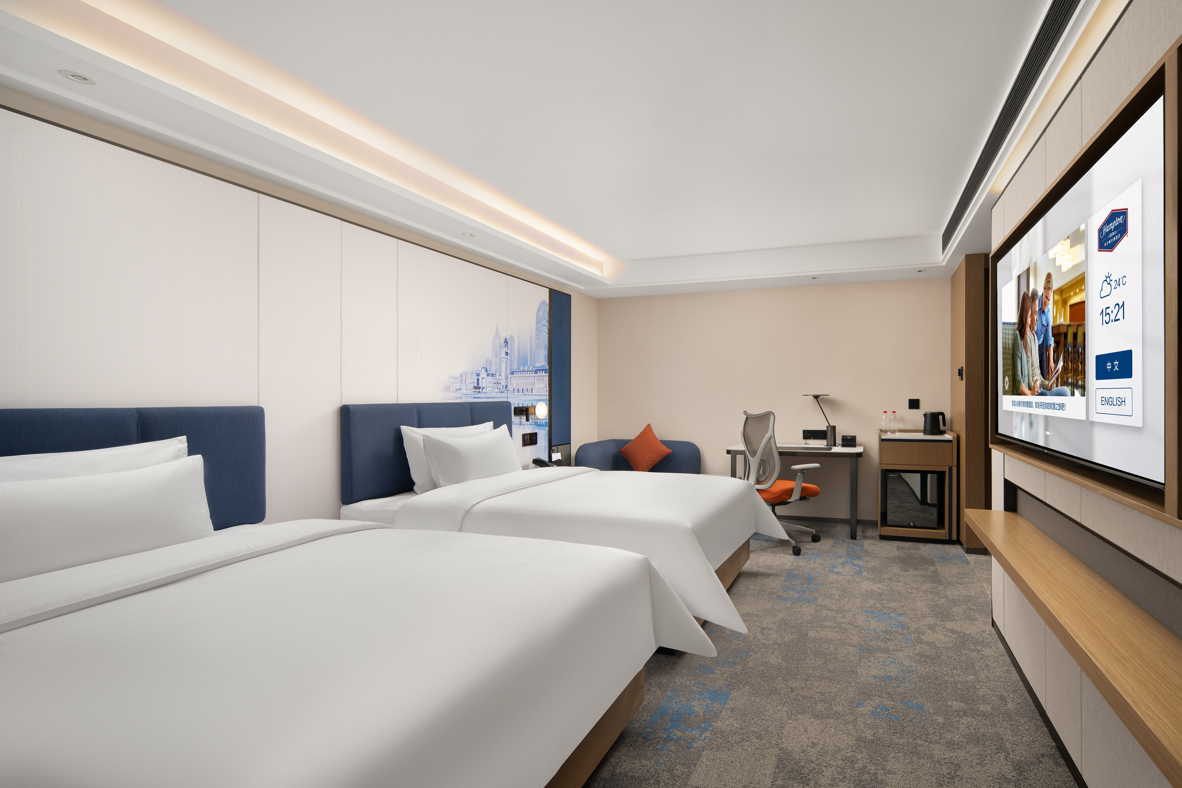 豪华双床房(65寸投屏电视+语音客控+舒达床垫)