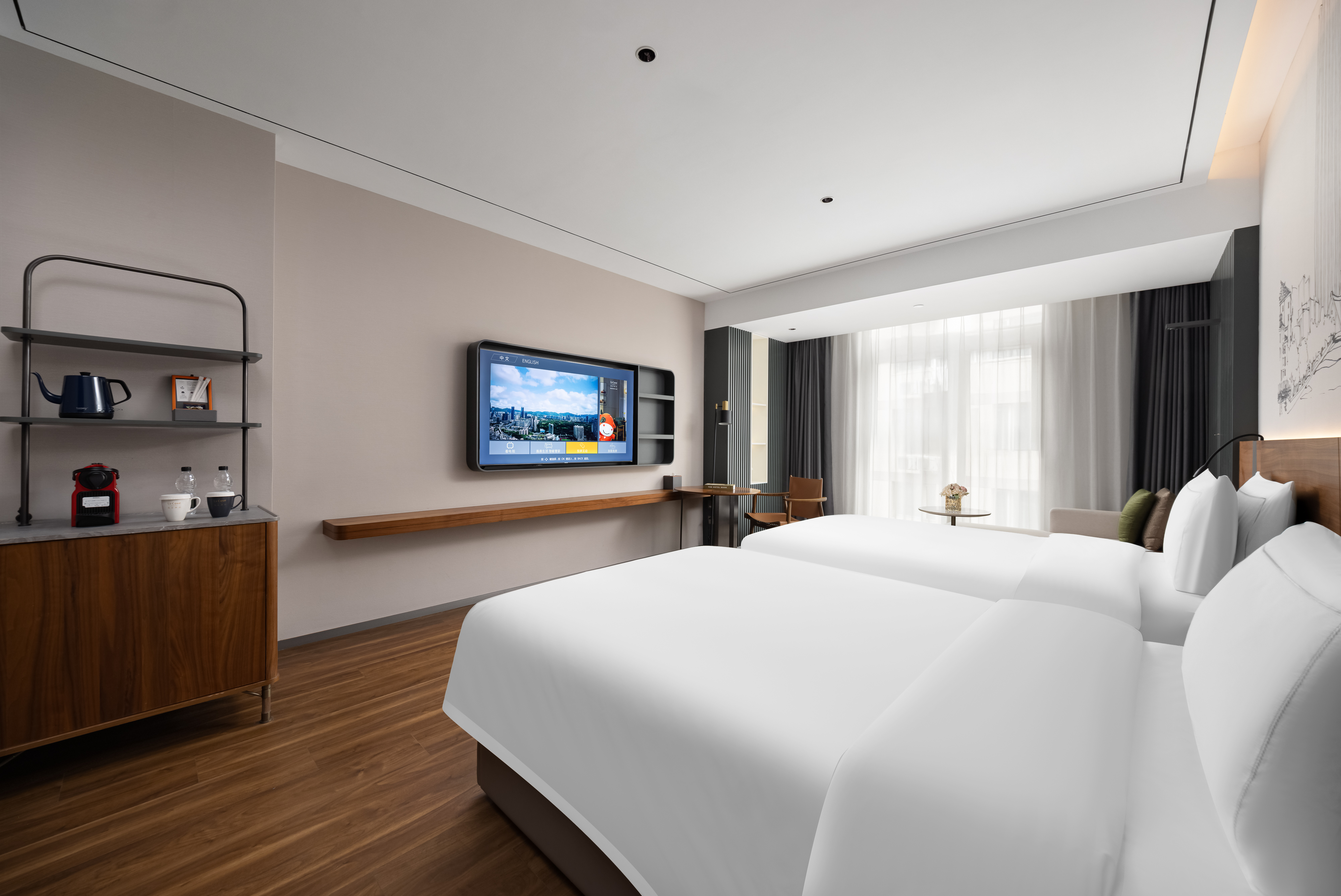 高级双床房(智能语音控制+胶囊coffee机+智能马桶+迷你冰箱+65寸电视投屏)
