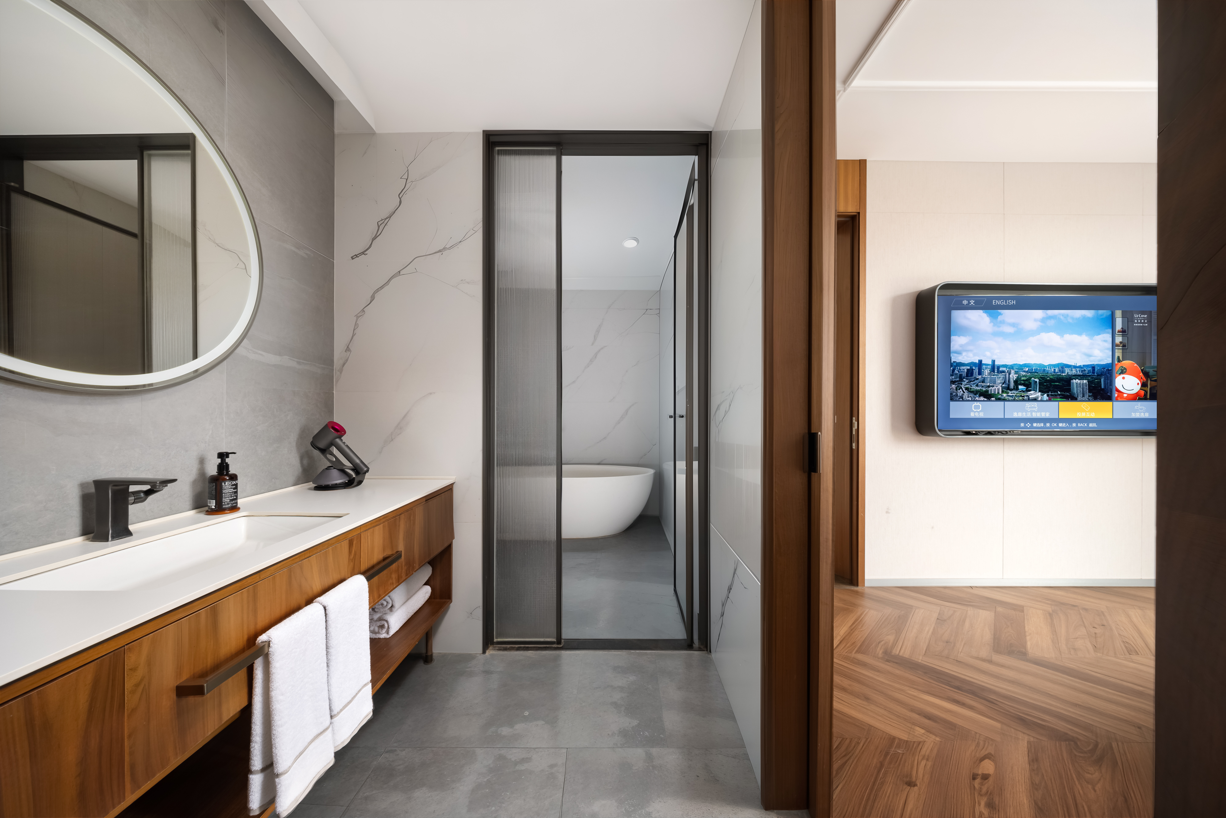 高级大床房(智能语音控制+胶囊coffee机+智能马桶+迷你冰箱+65寸电视投屏)