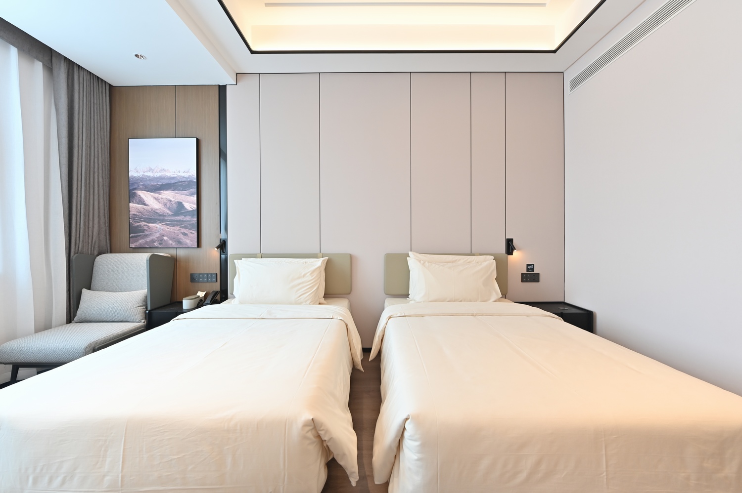 几木双床房(可投屏65寸智能电视+深睡枕pro+小冰箱+浴袍)