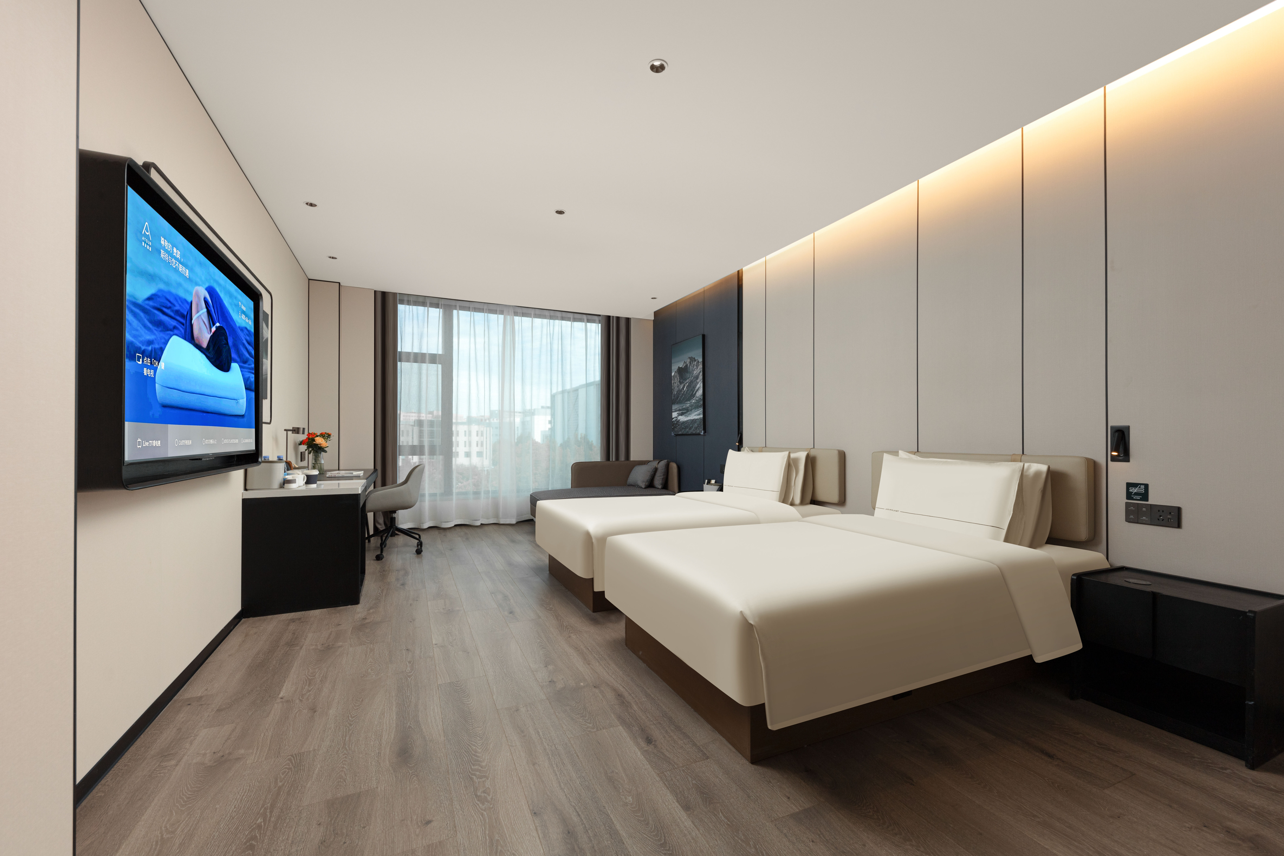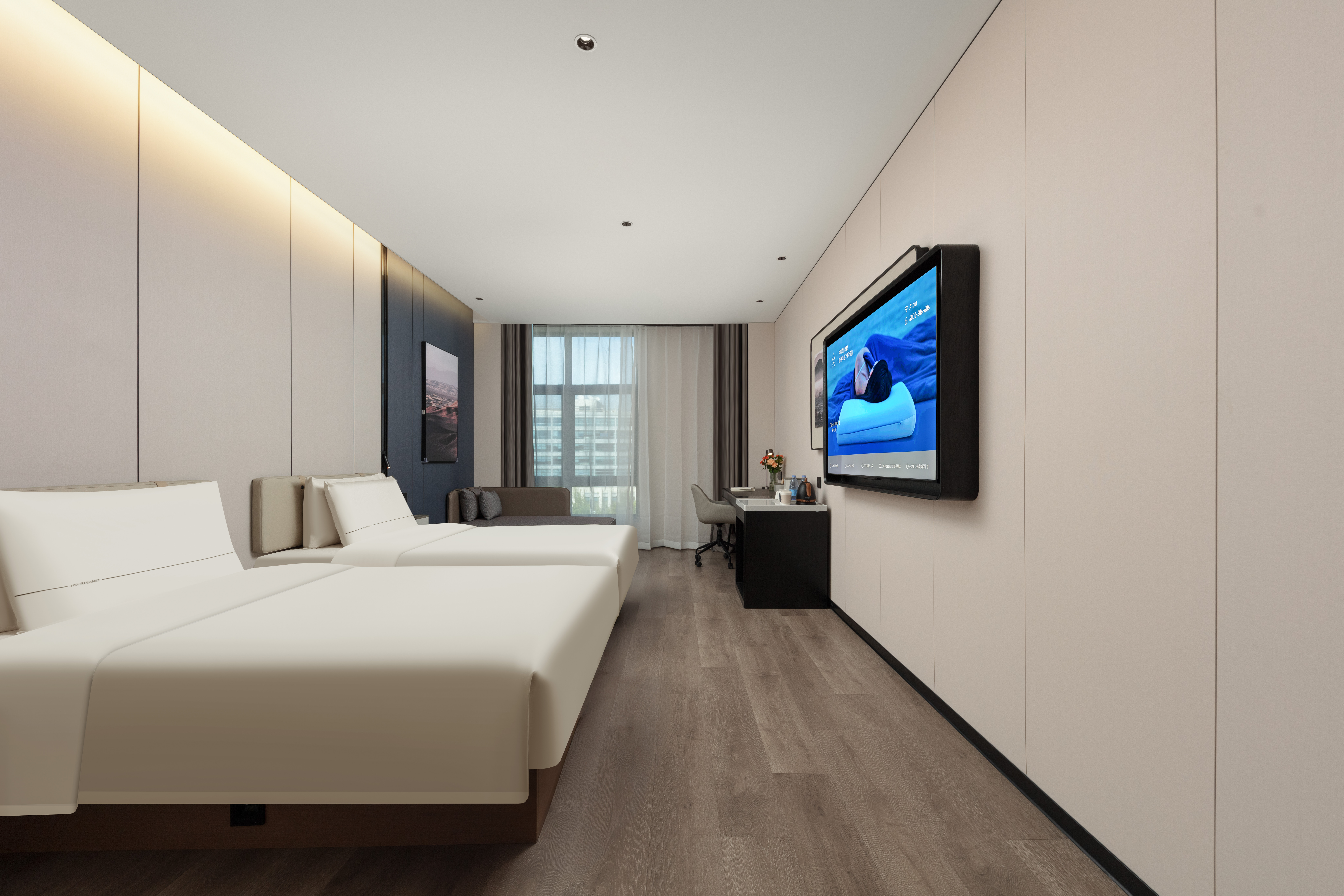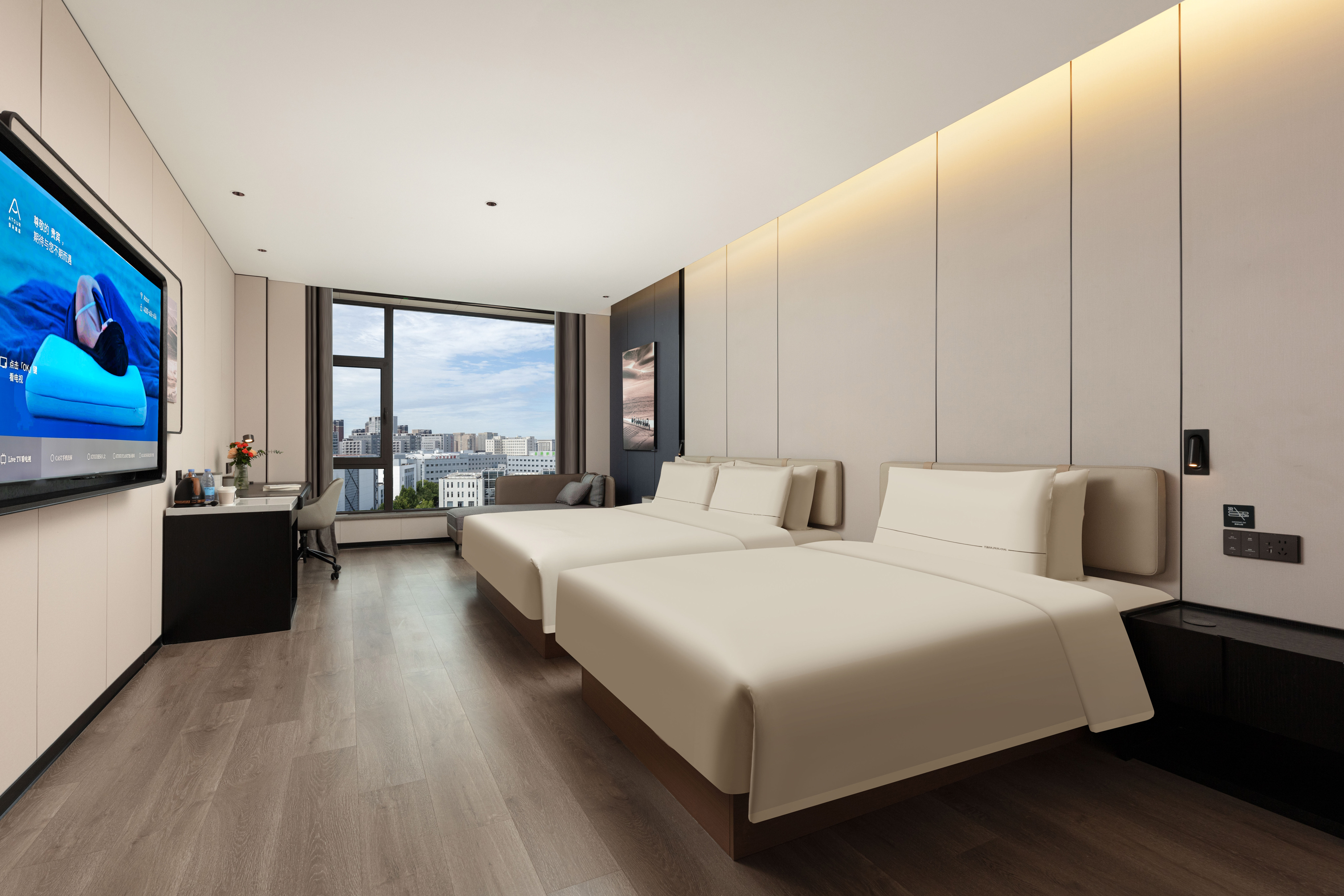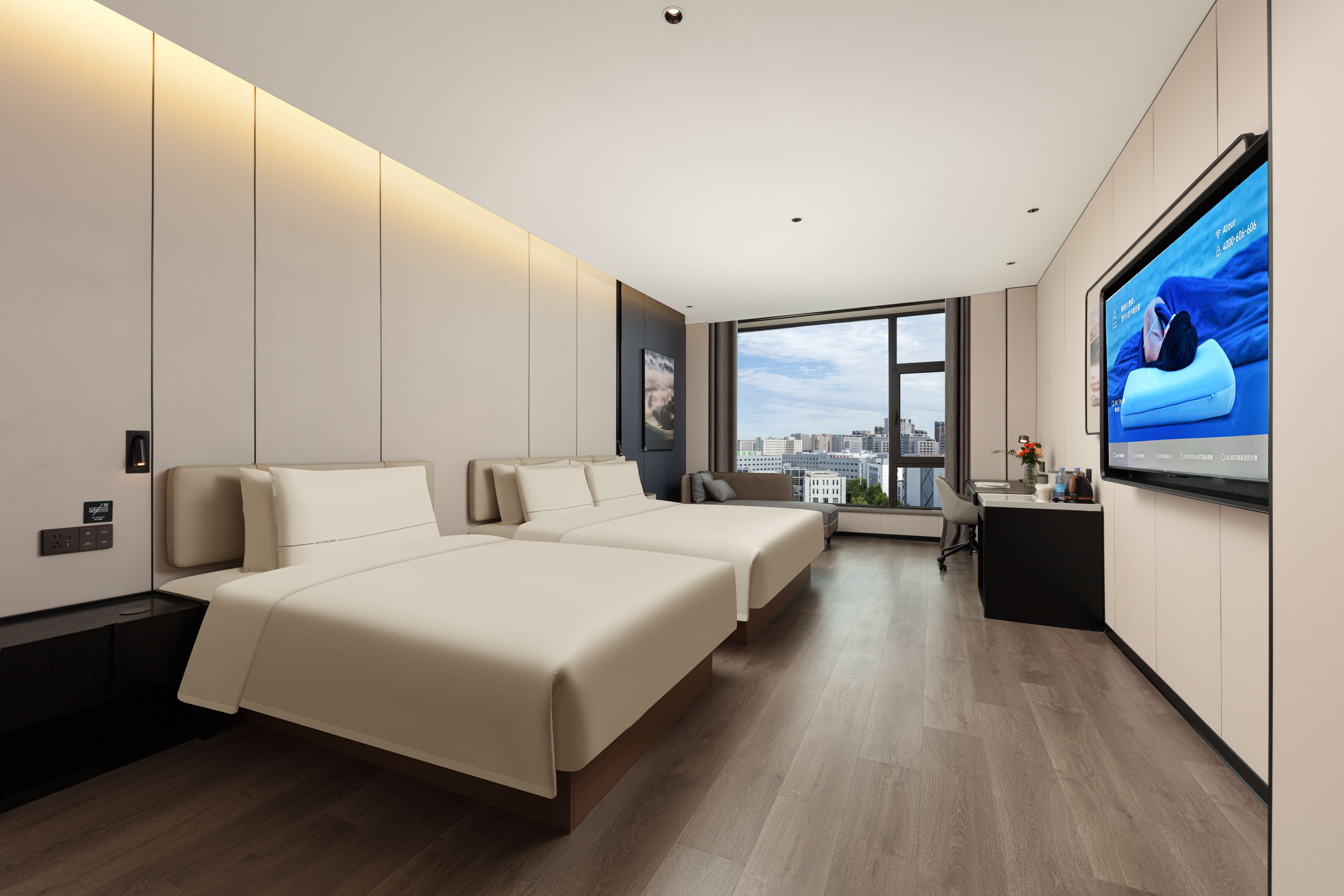高级双床房(可投屏65寸电视+深睡枕深睡床垫+小冰箱)