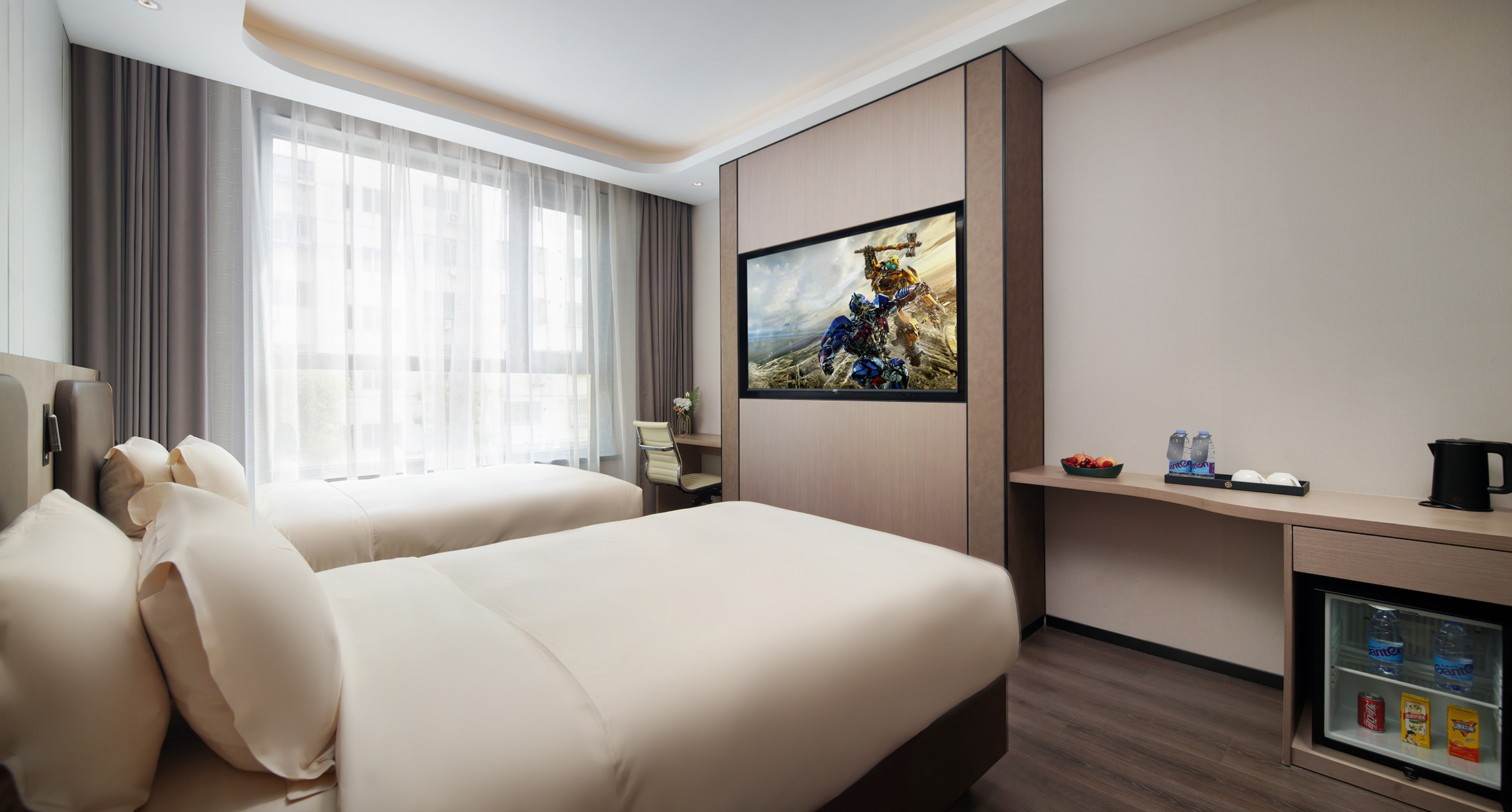丽兹高级双床房(0压床垫+电视投屏+小冰箱+中央空调)