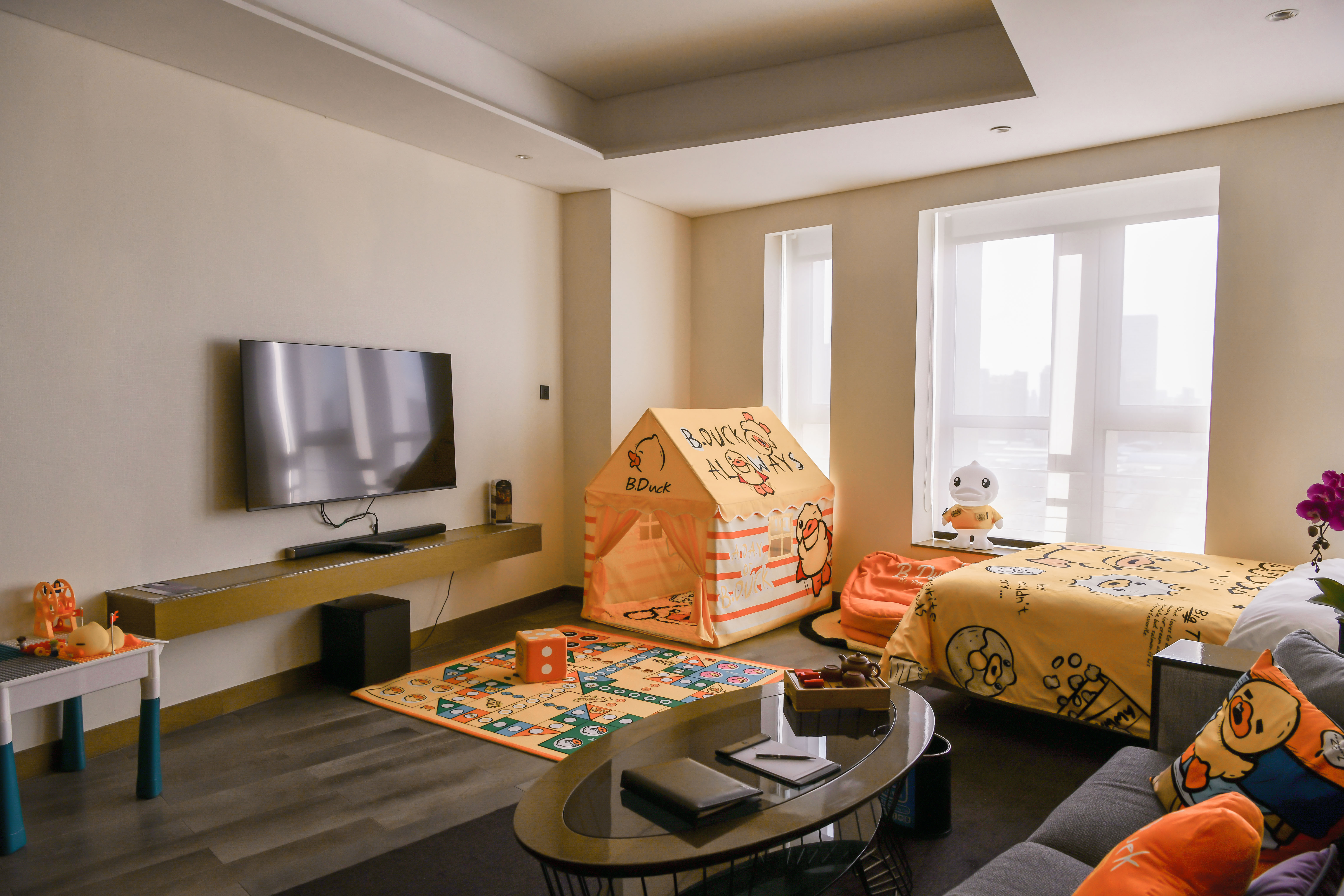 两卧家庭套房IBDUCK小黄鸭主题房|巨幕观影