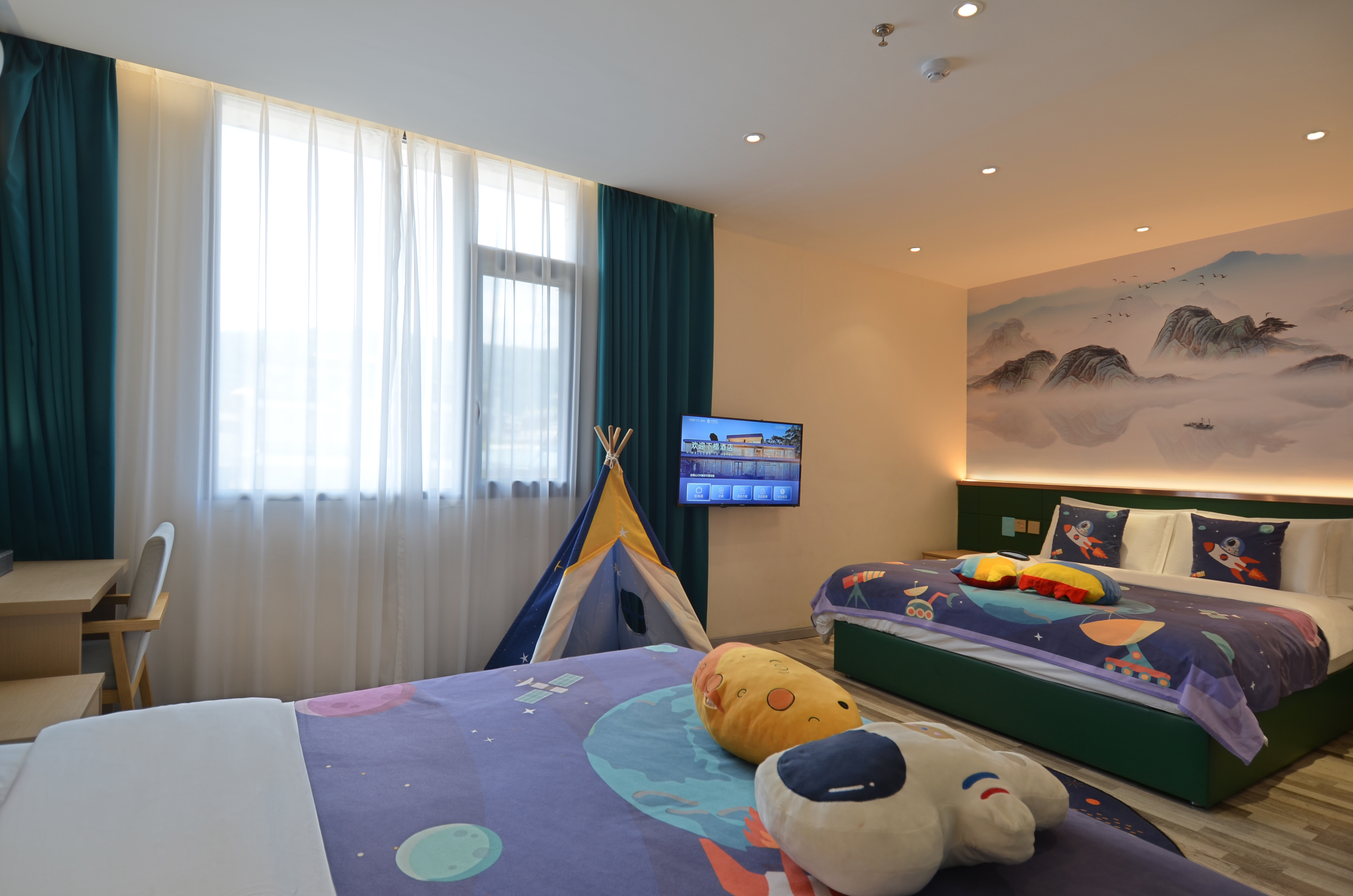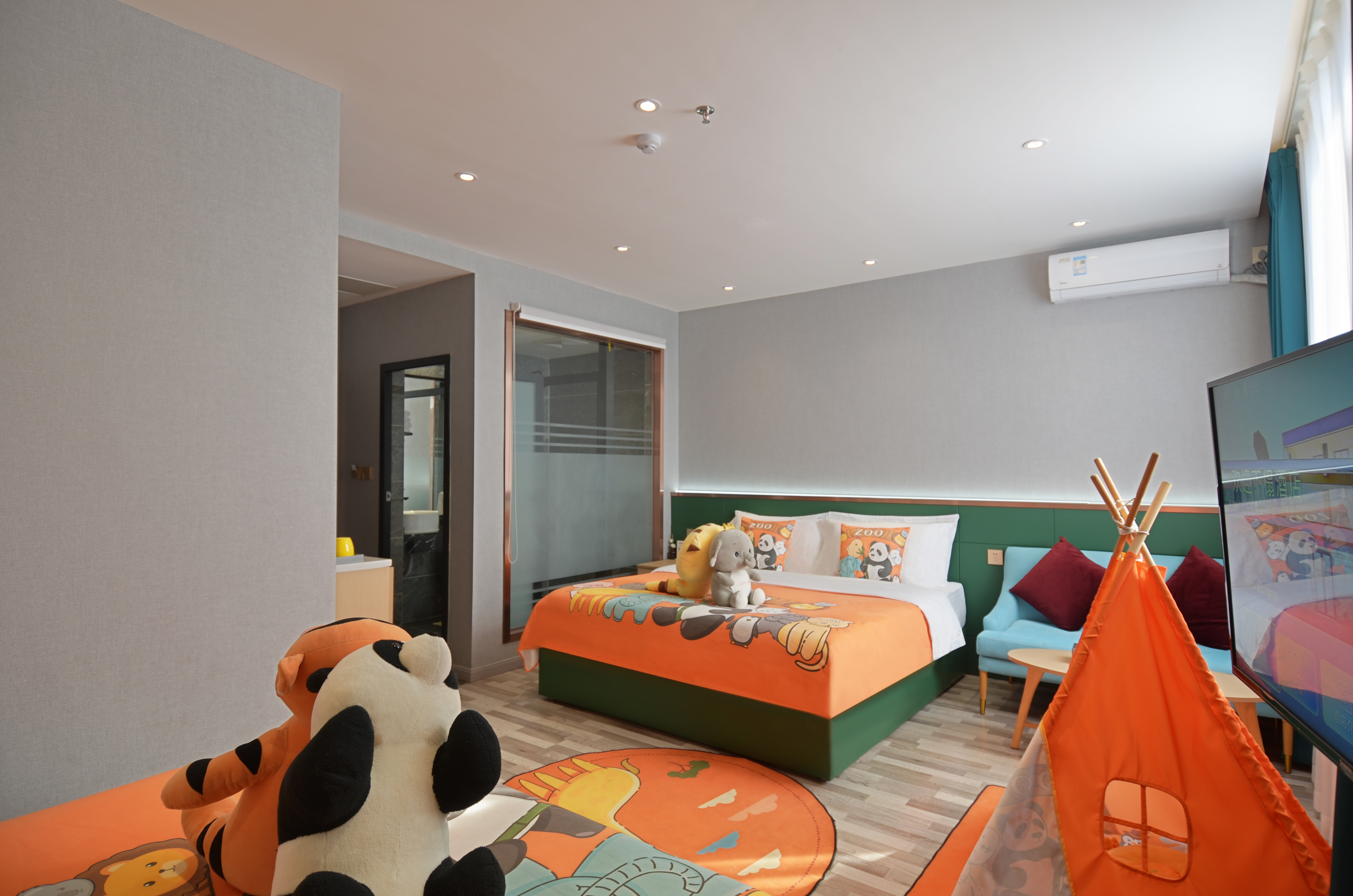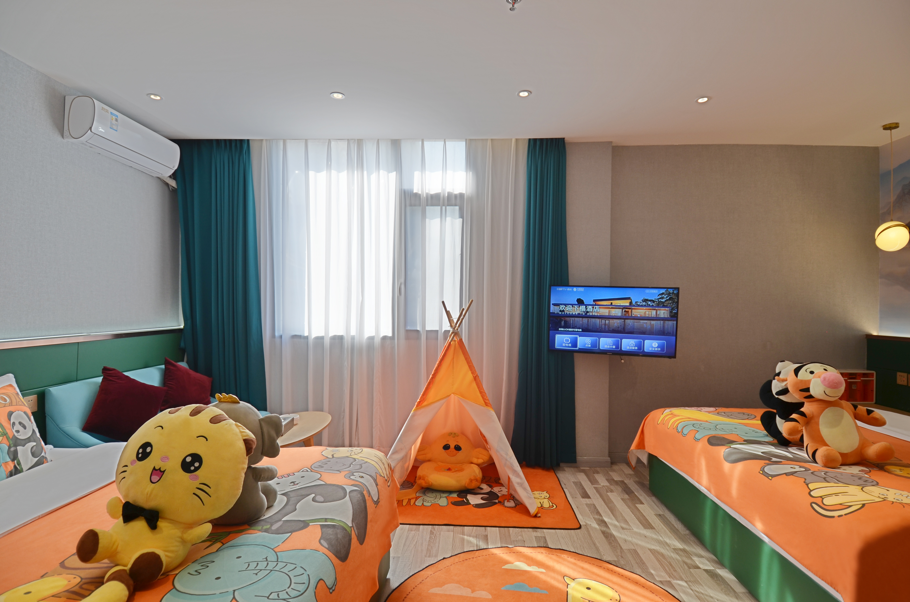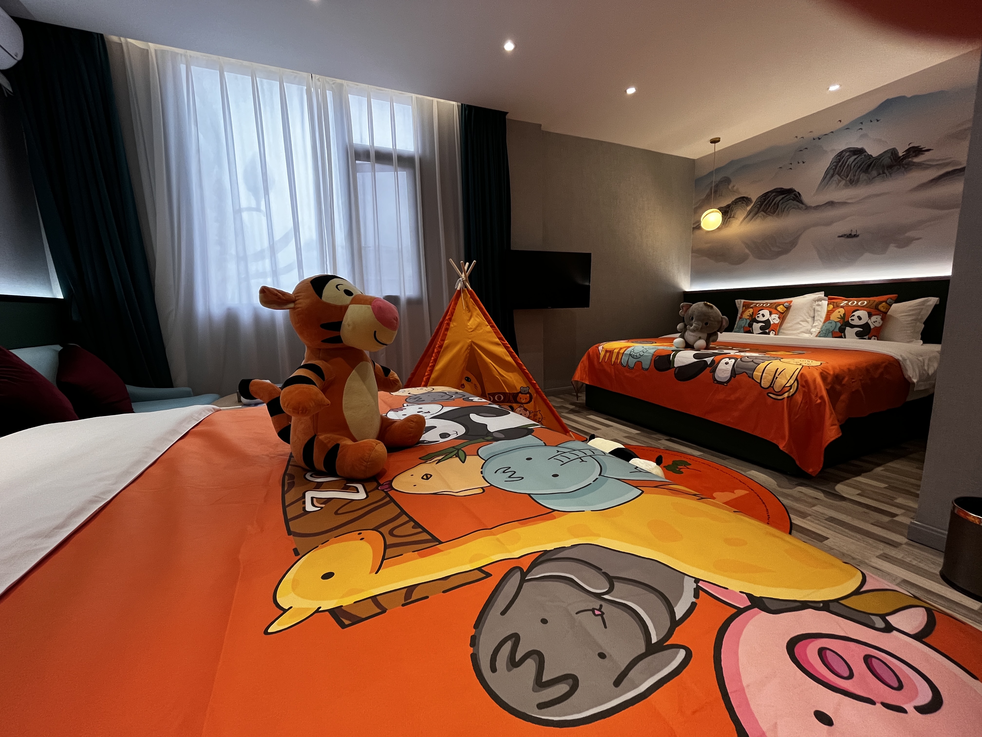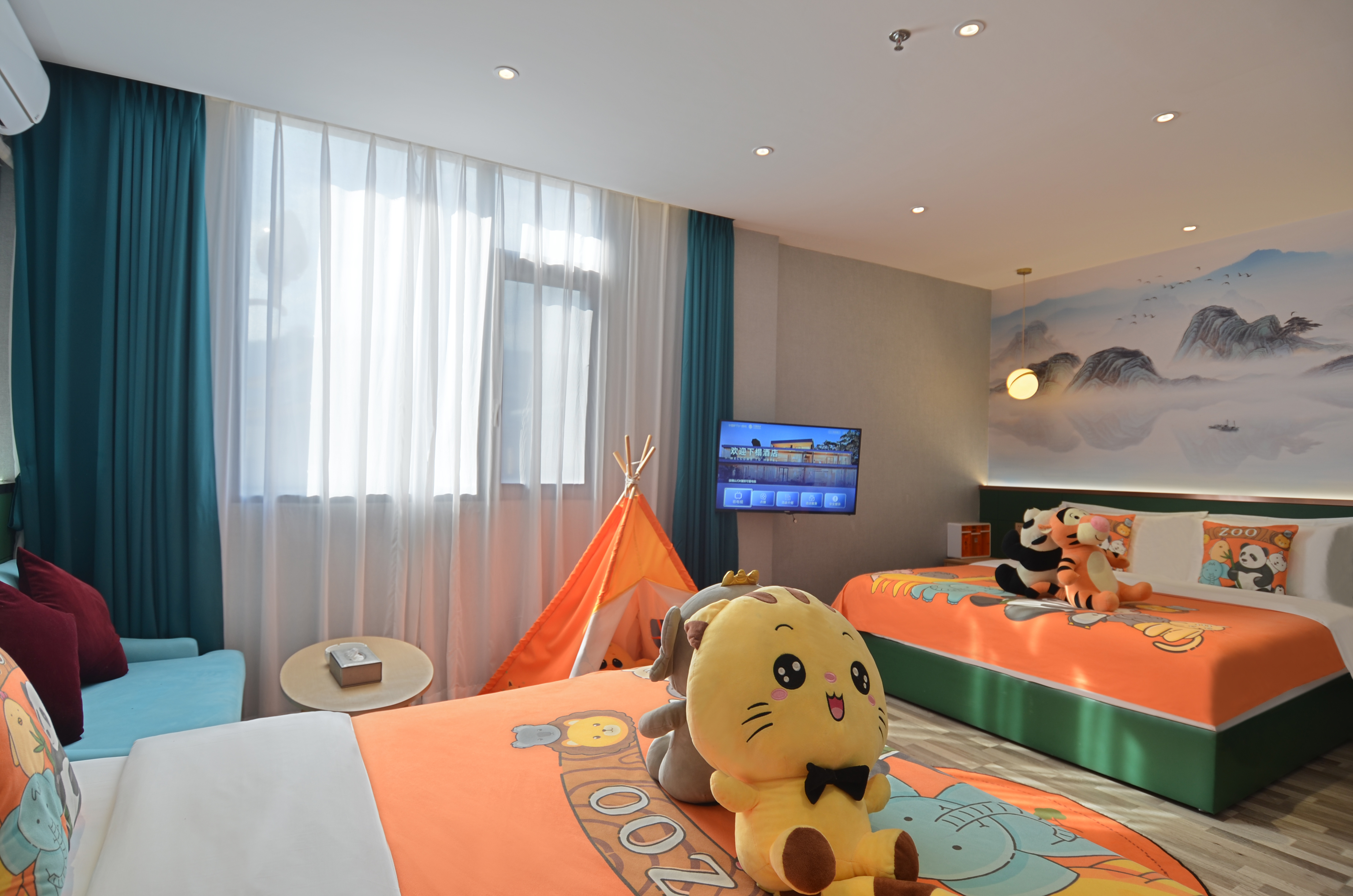 动物园主题亲子房(乳胶酣睡床垫+超柔亲肤布草)