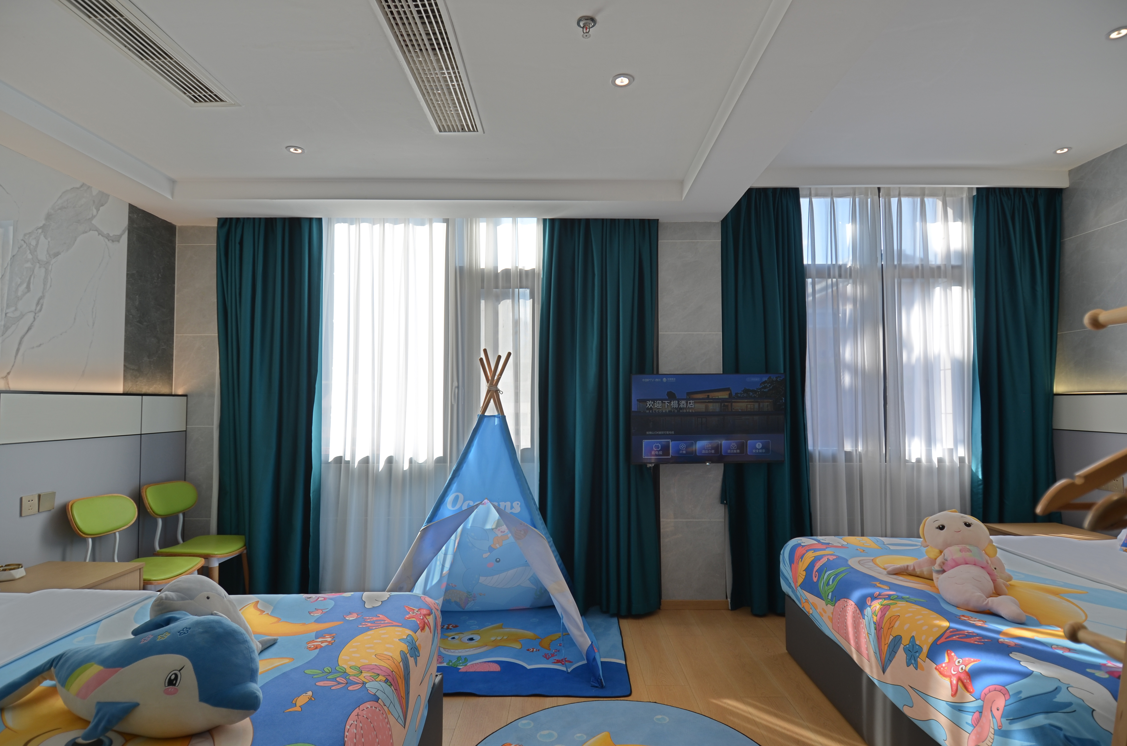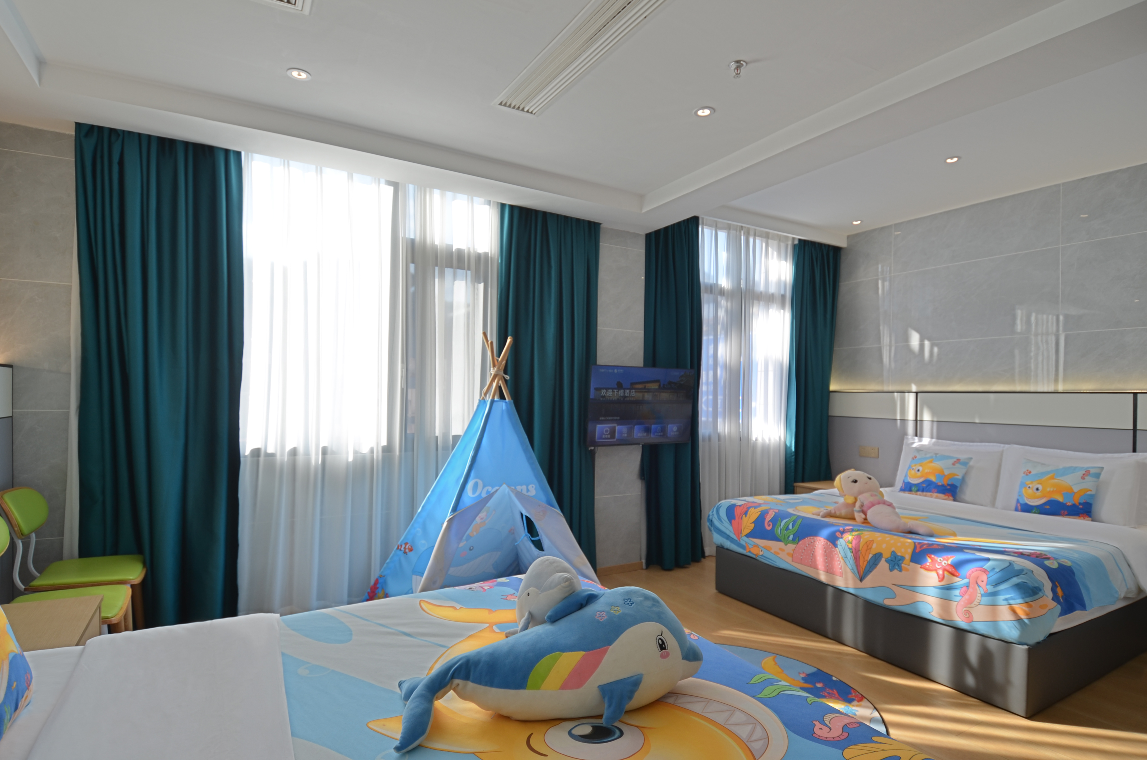 海洋主题亲子房(双层隔音玻璃+乳胶床垫助眠记忆枕)