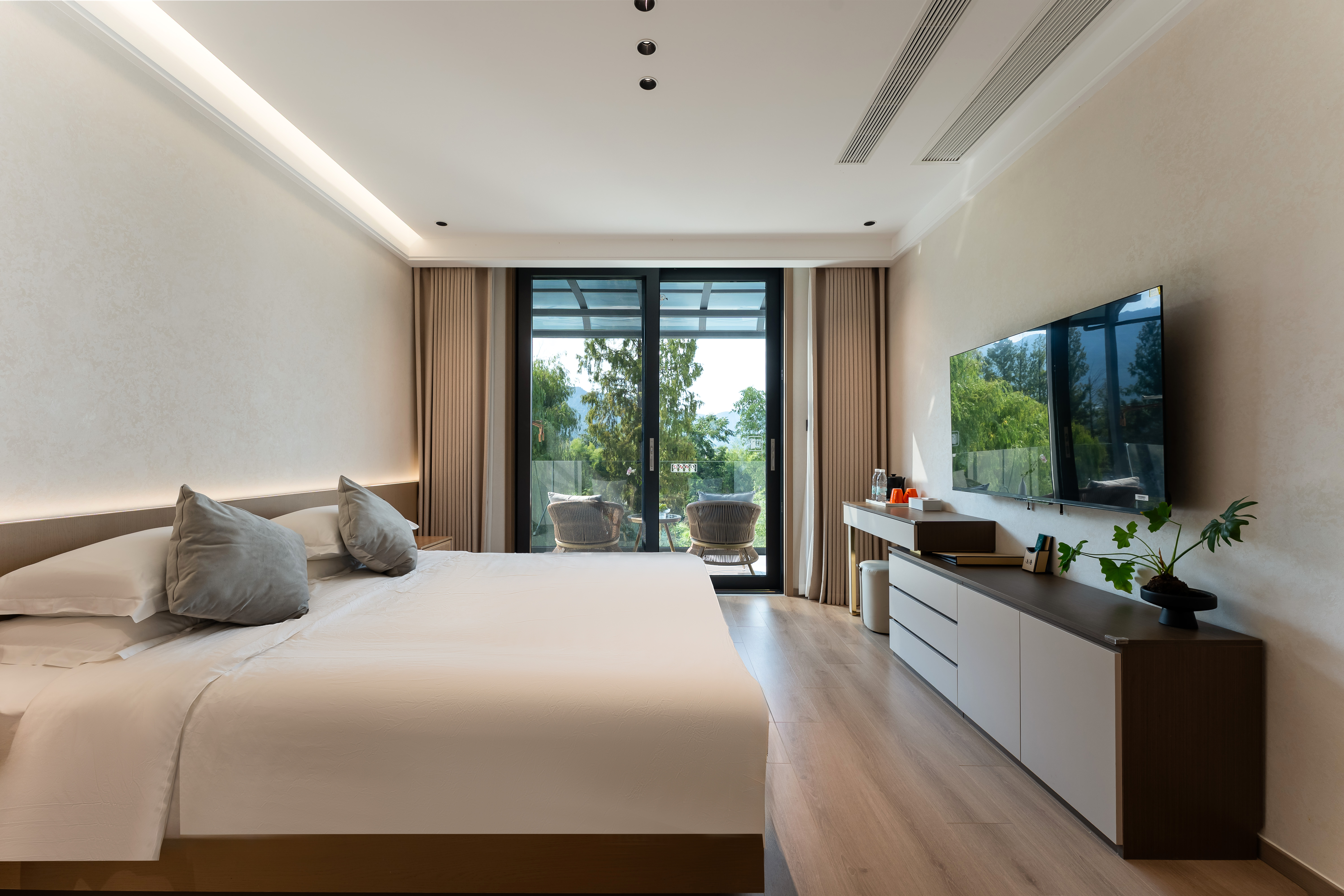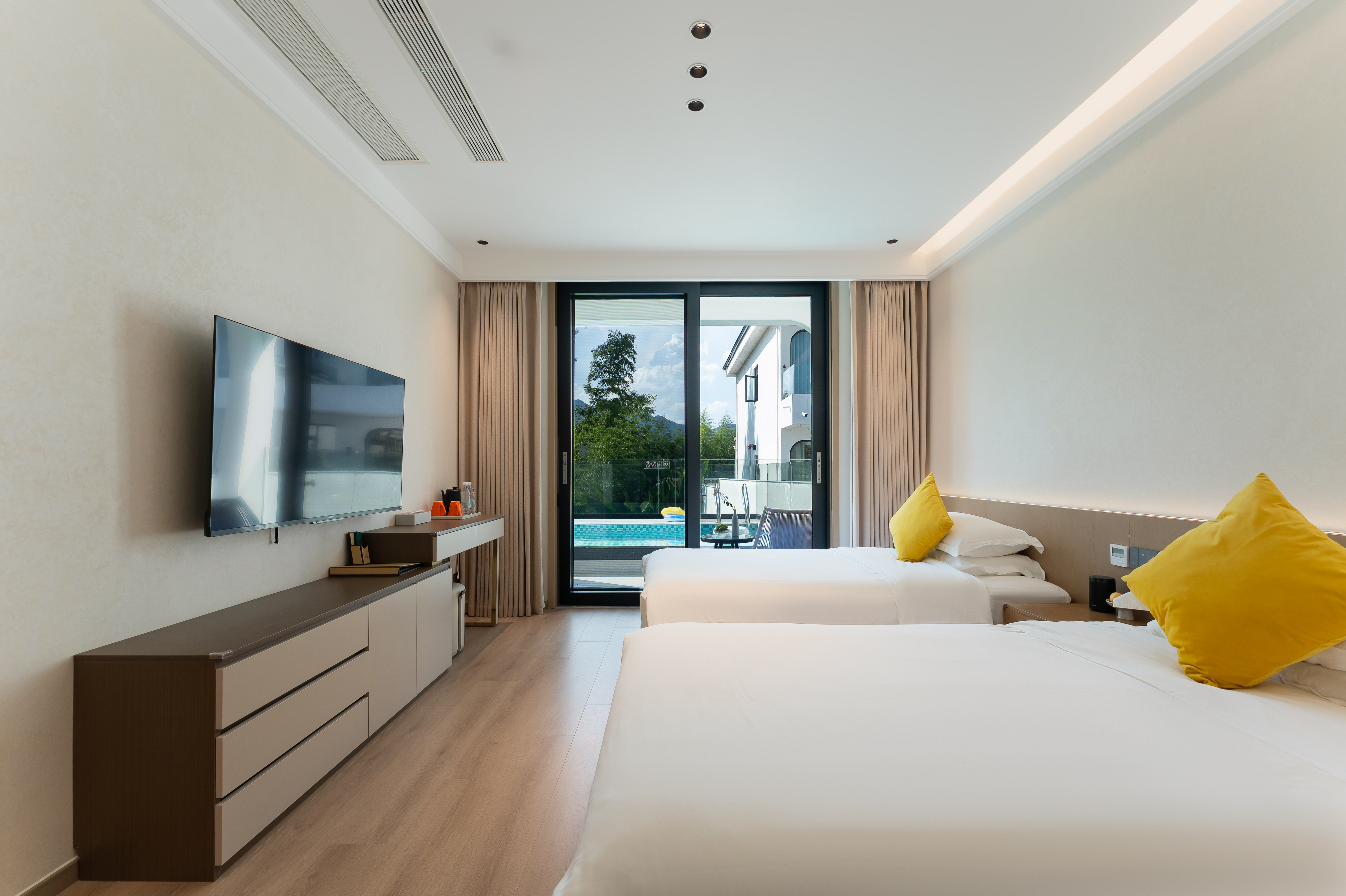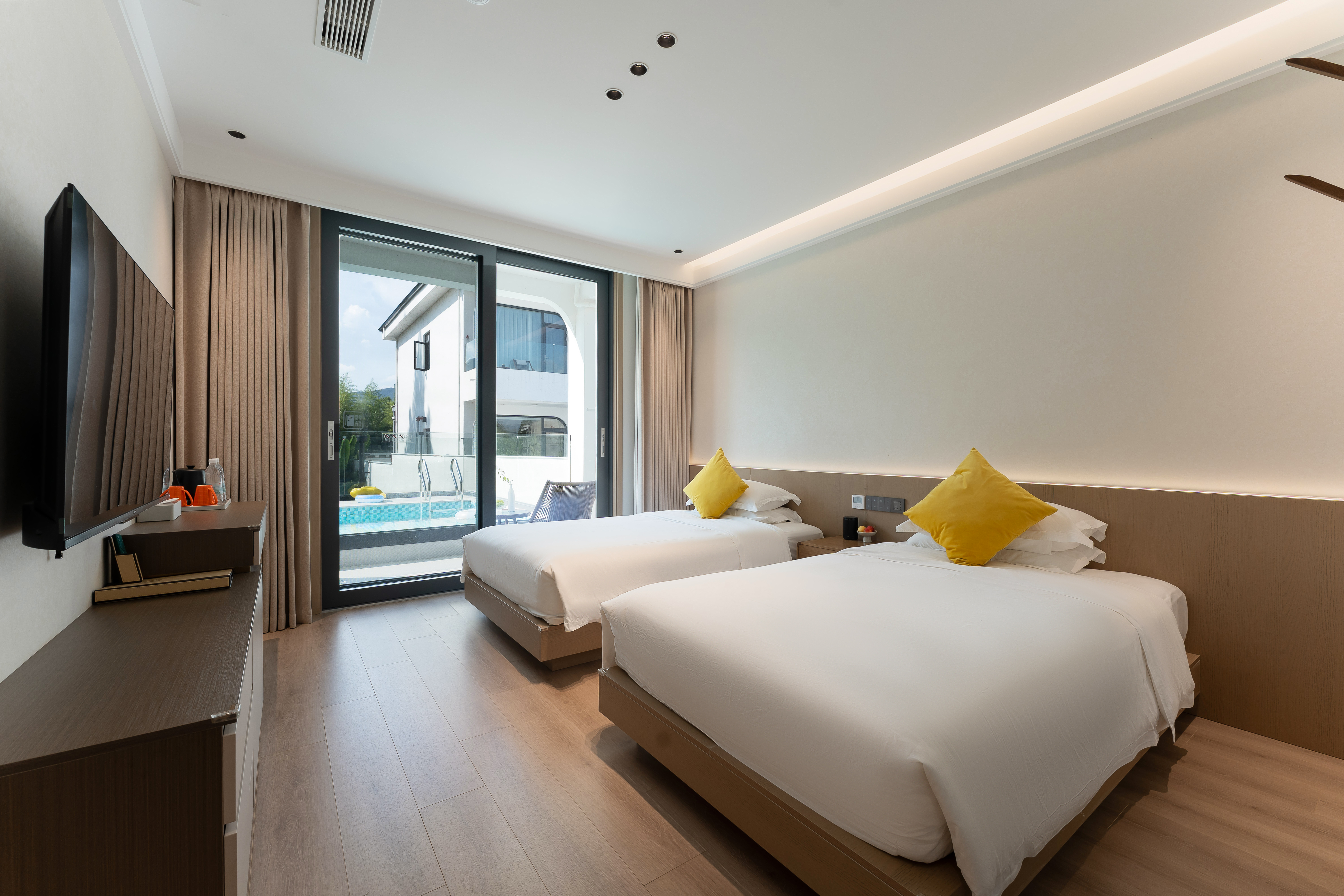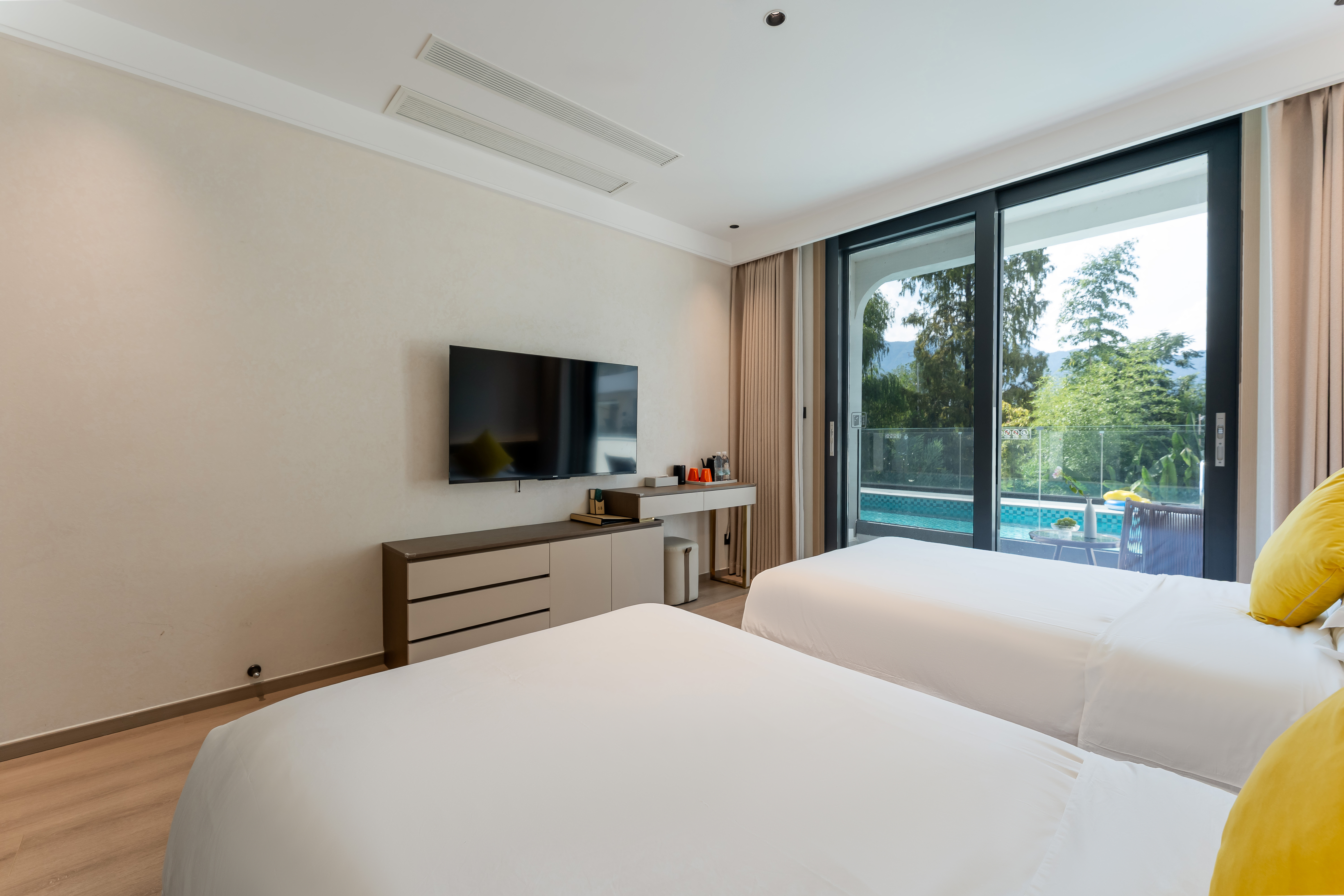 豪逸205·露台泳池豪华双床房+智能客控+安心好眠床品
